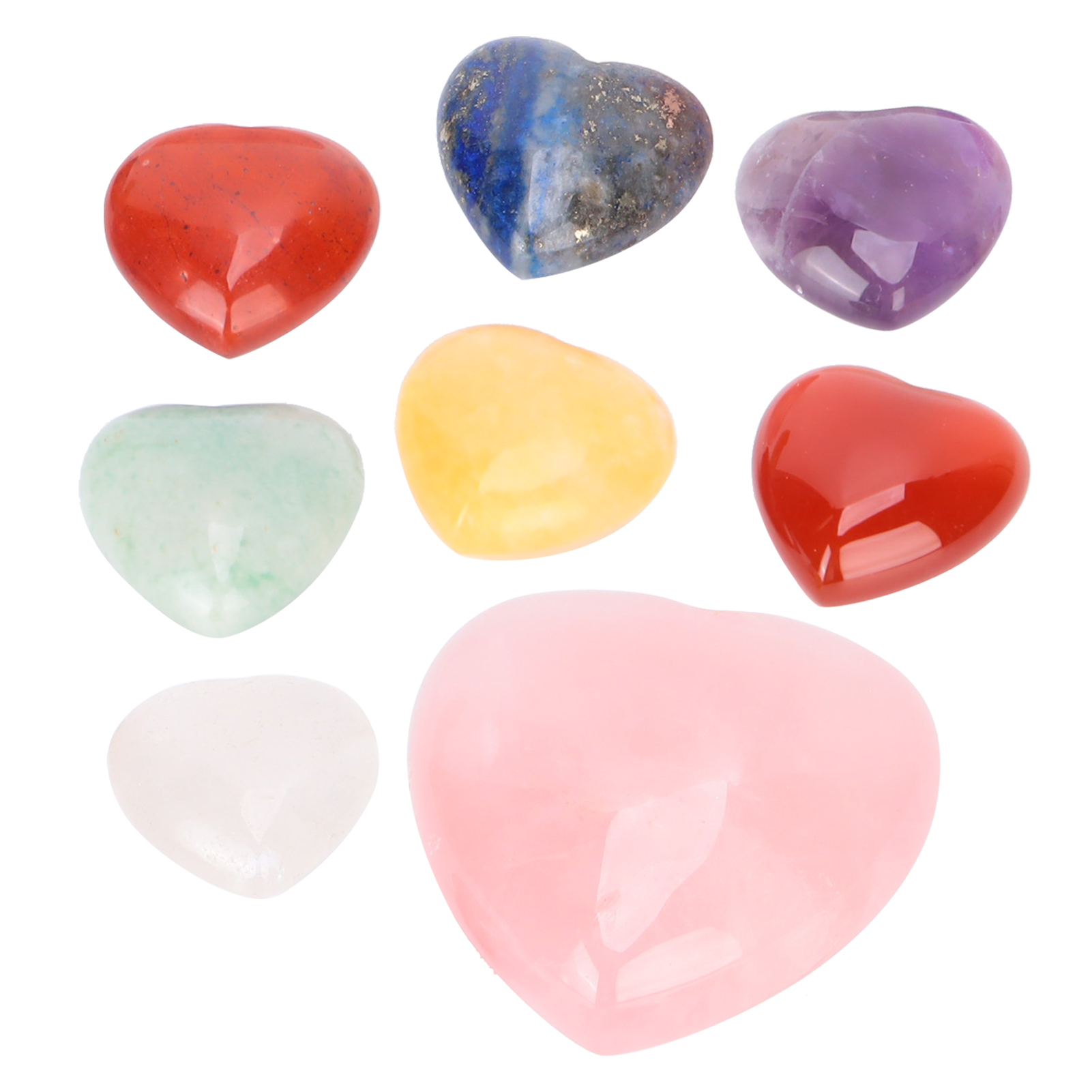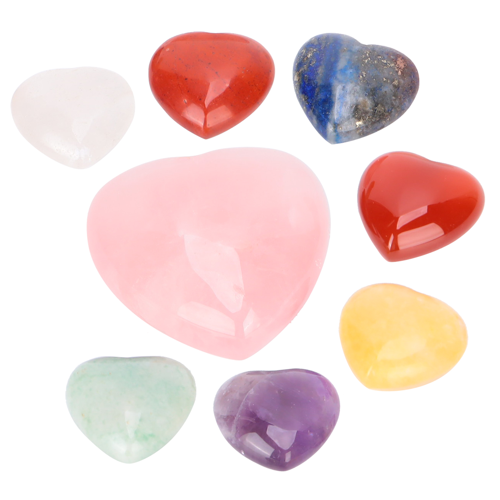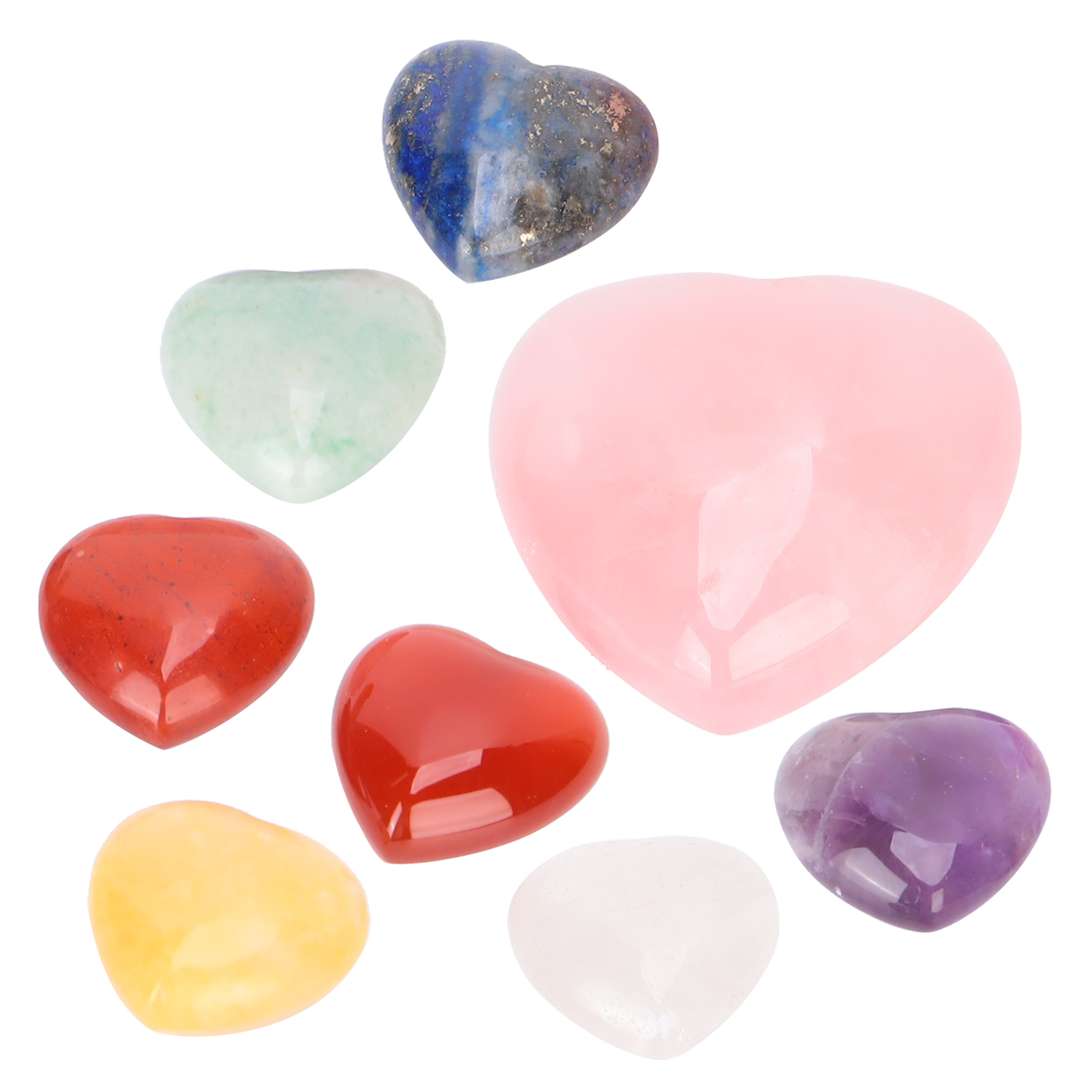 8Pcs Natural Crystal Stone Set HeartShaped for Meditation Divination Decoration