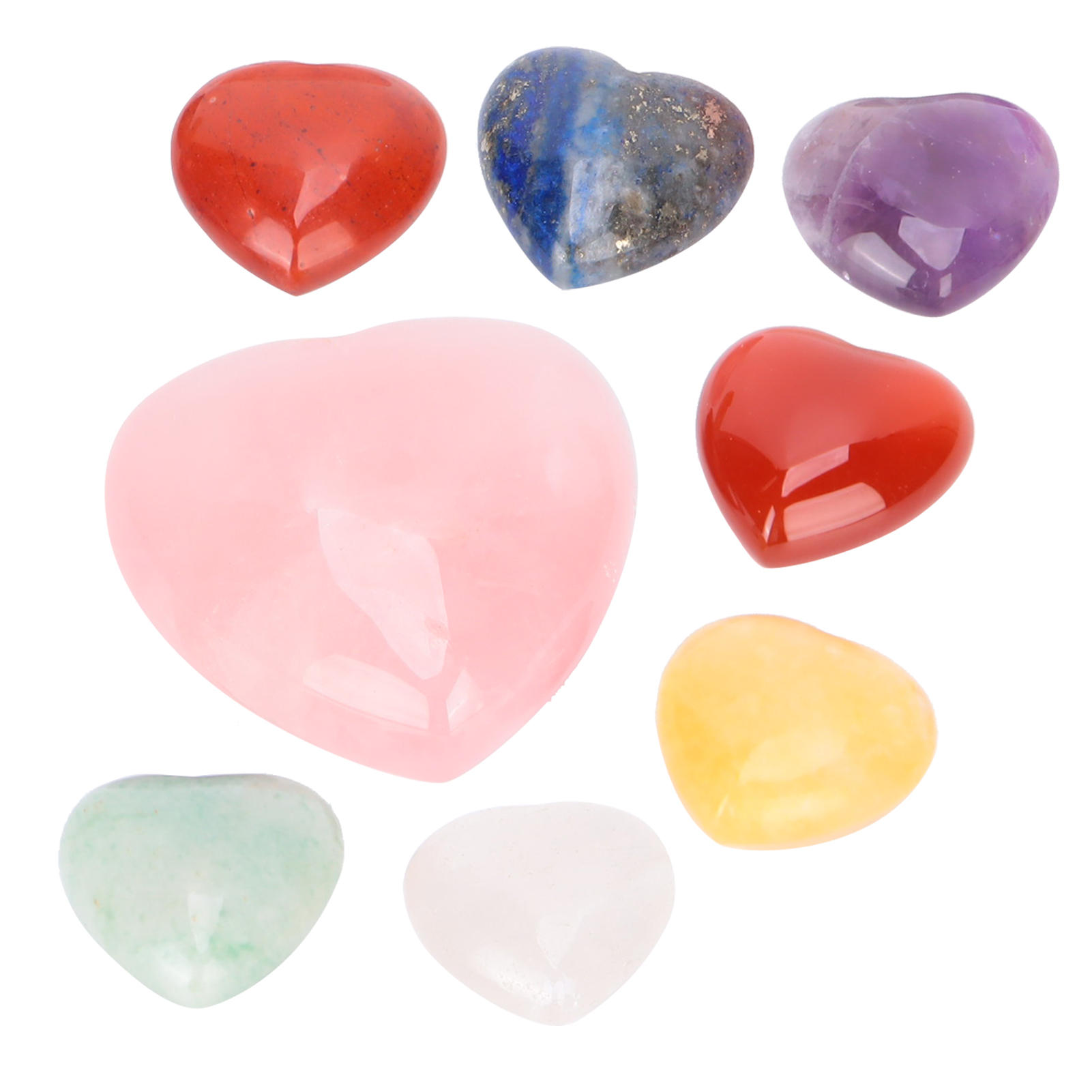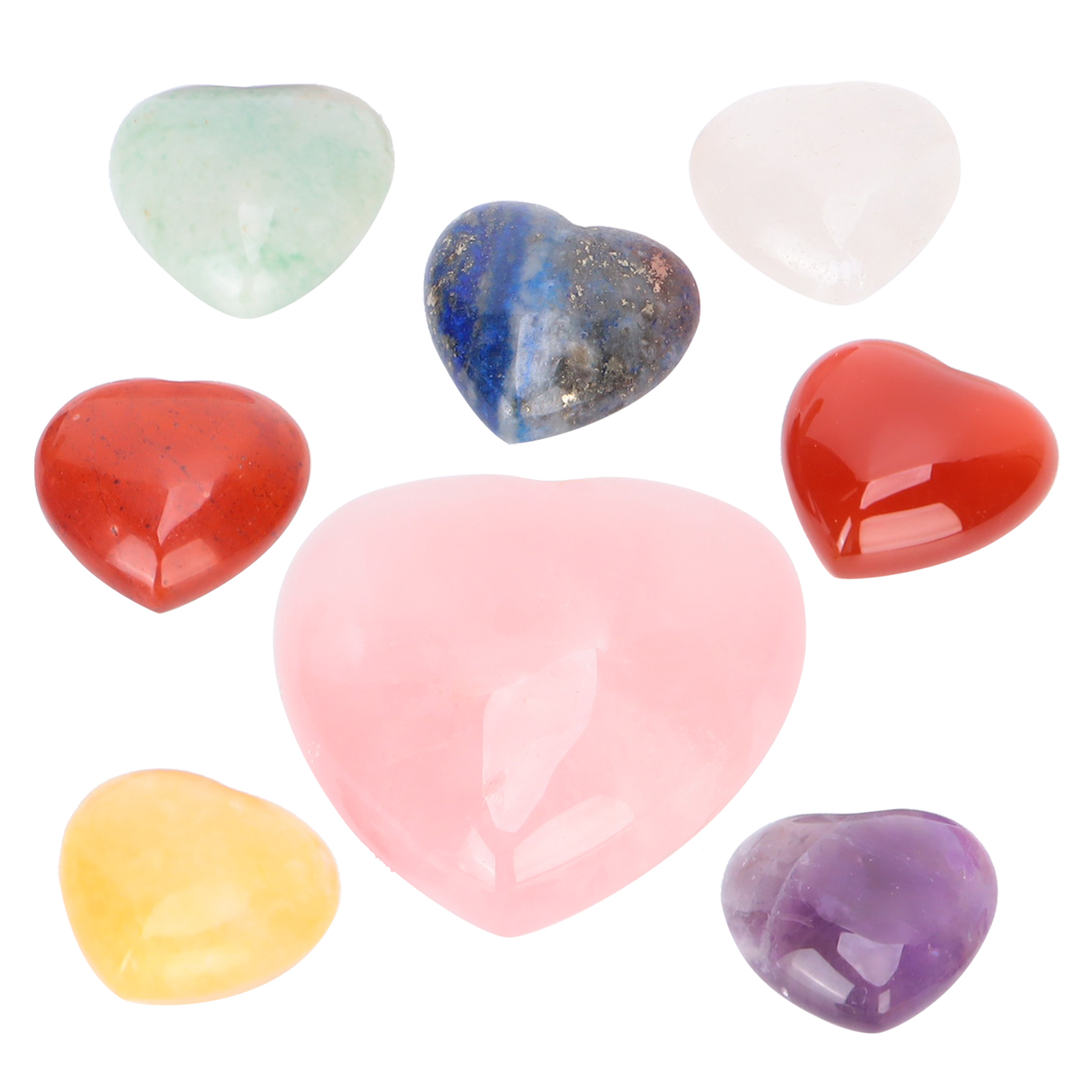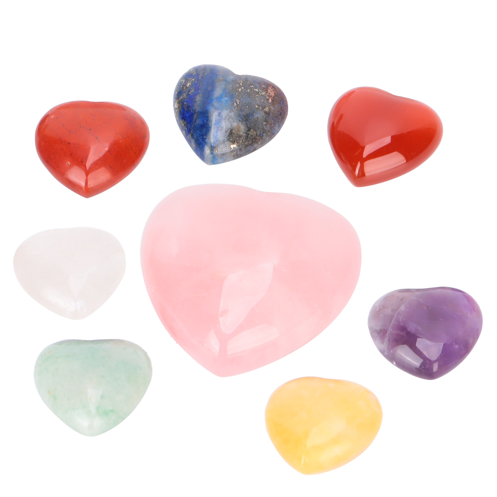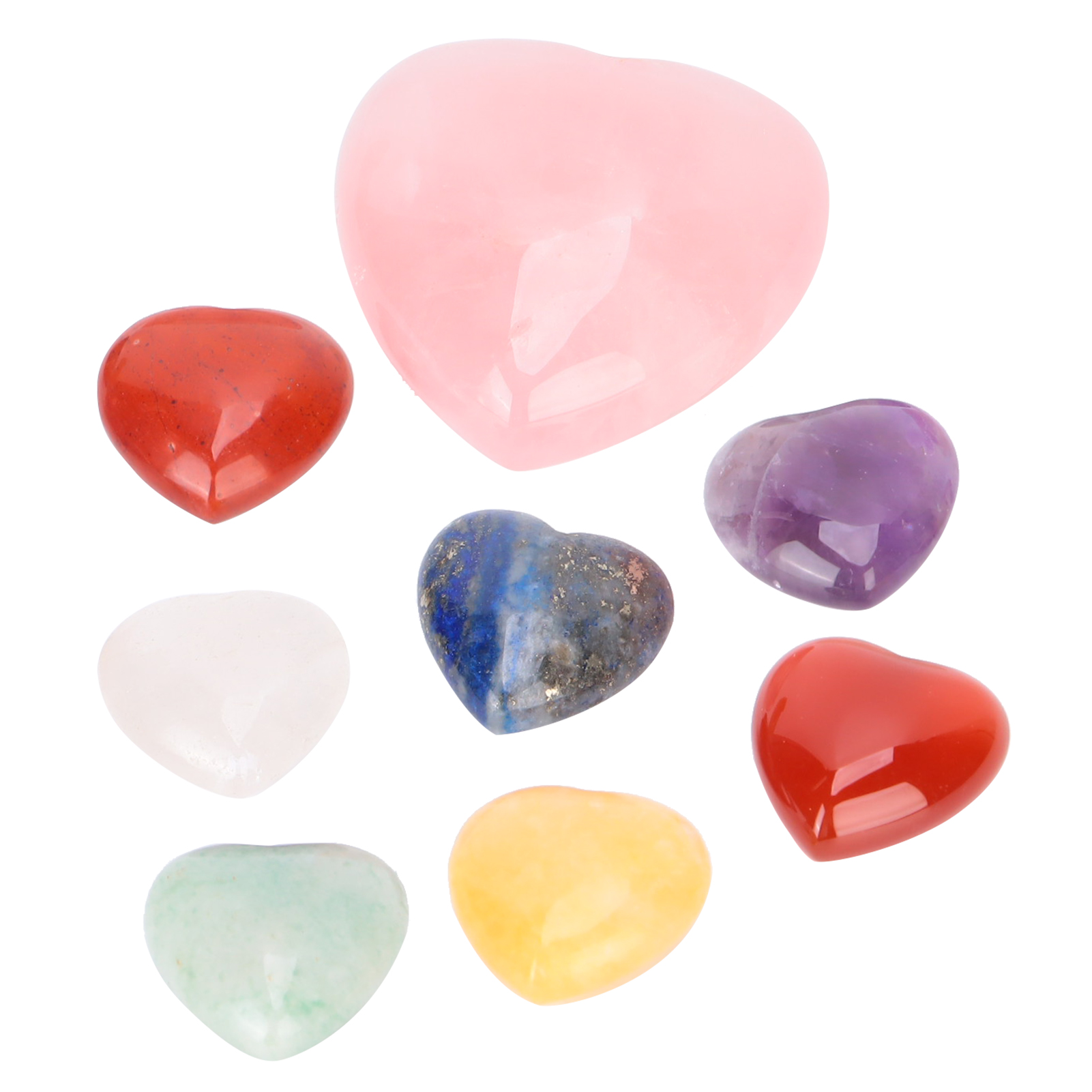 8Pcs Natural Crystal Stone Set HeartShaped for Meditation Divination Decoration