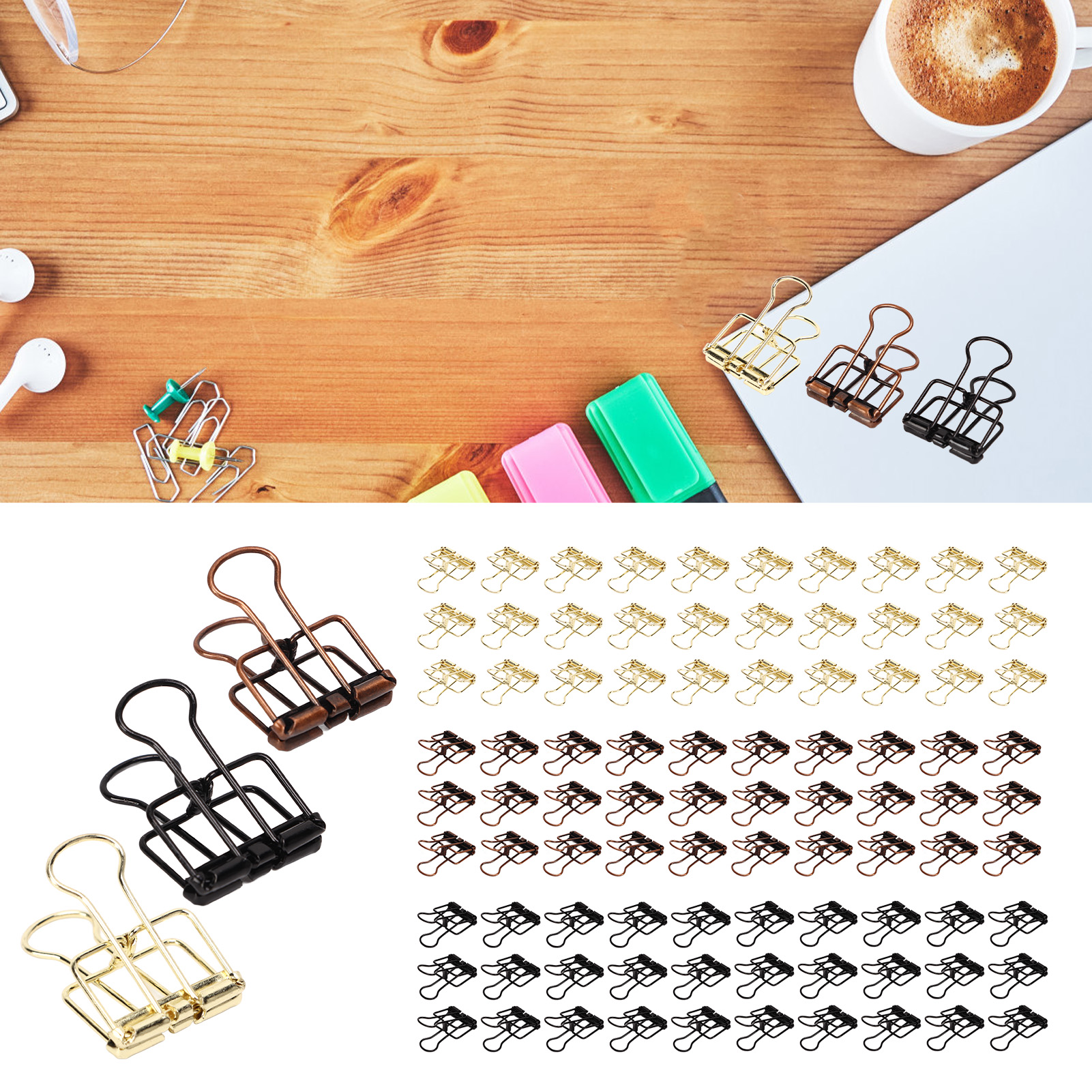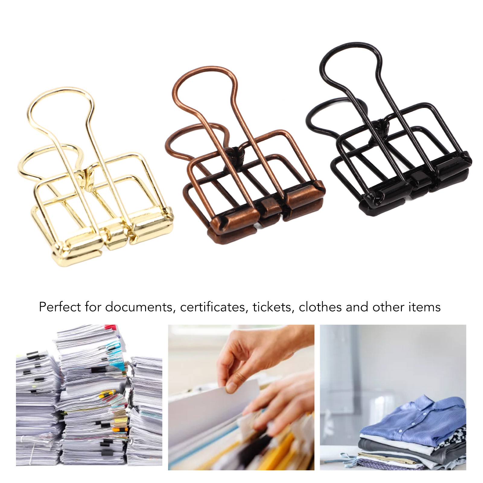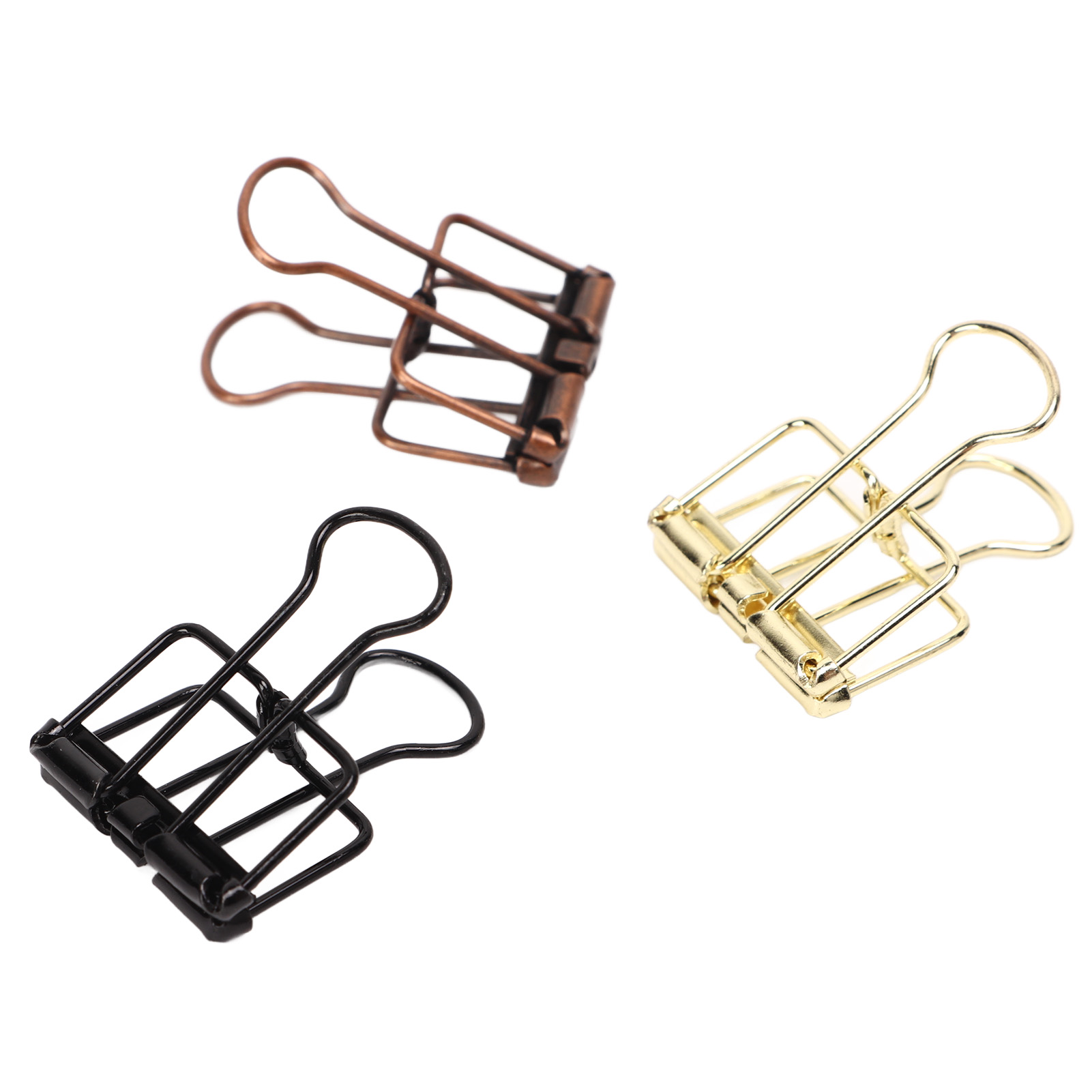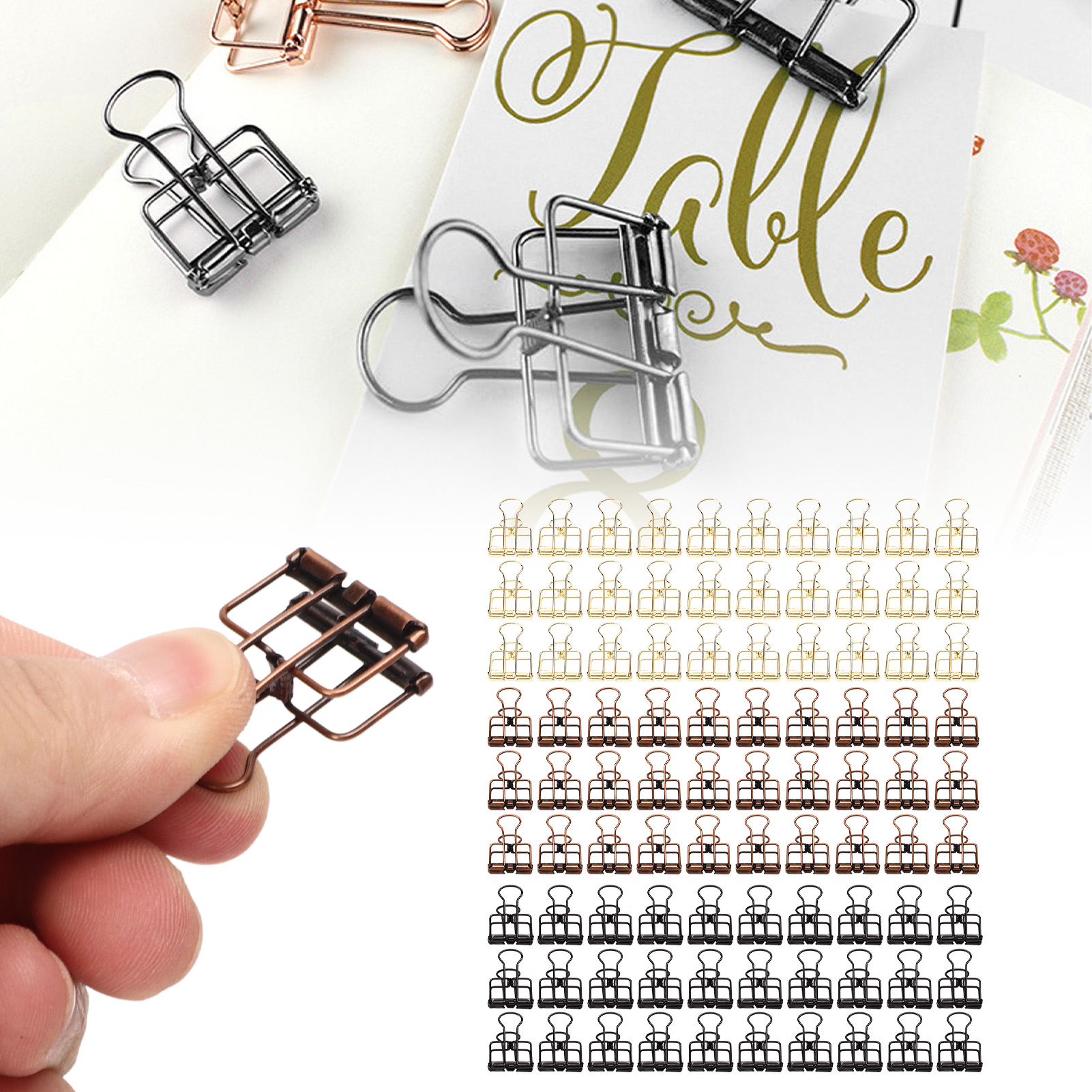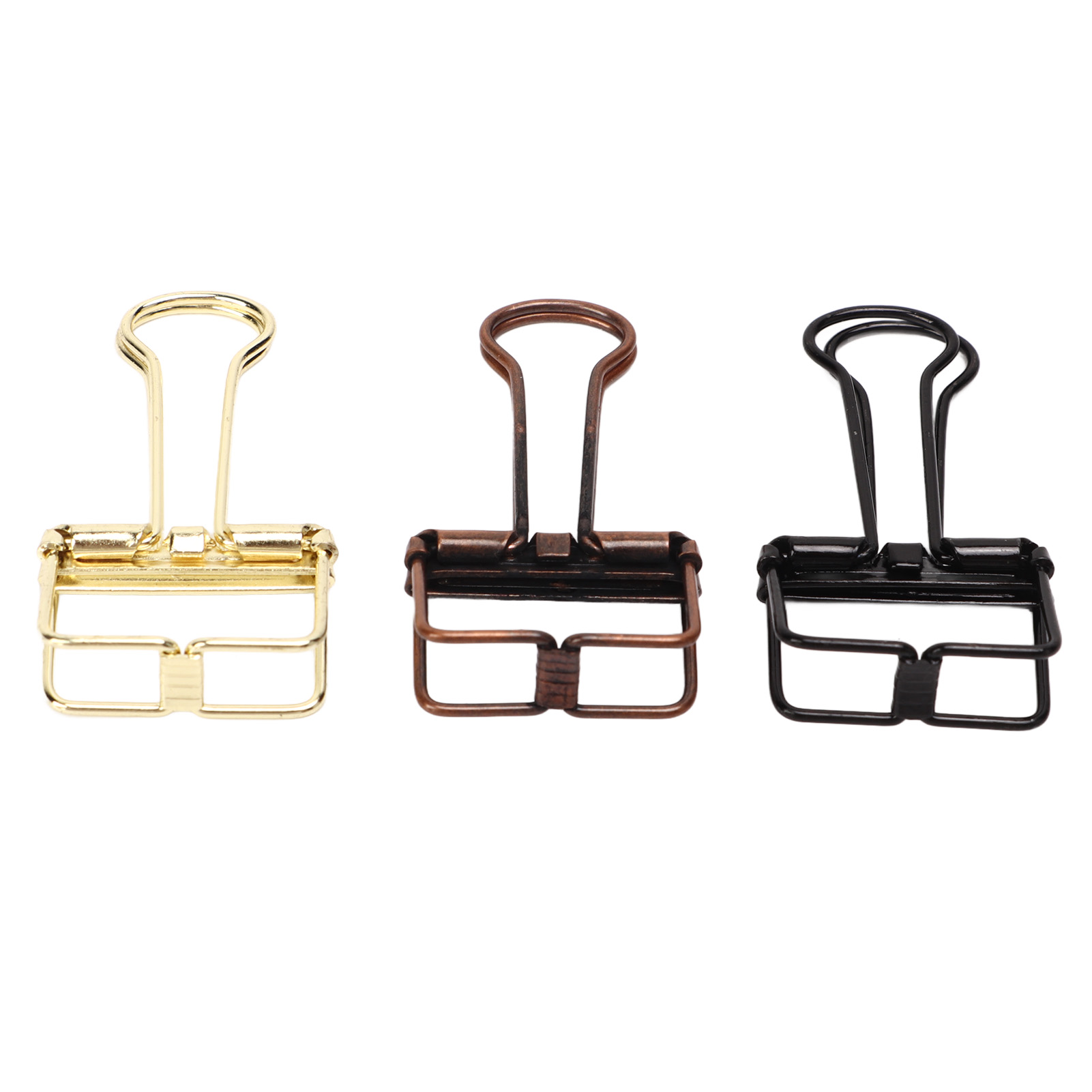 1、Unique Hollow Design: The metal binder clip has unique hollow design, which is very convenient to use. 2、Strong Clamping Force: These small binder clips have a strong clamping force to hold the paper firmly. 3、Premium Materials: Made of metal, it is strong, durable, not easy to damage, and has a long service life. 4、Wide Applications: Wide range of applications, suitable for documents, certificates, tickets, clothes and other items. 5、Ideal Gift: Includes 90 binder clips with fine workmanship, ideal as a gift for kids, friends and family.