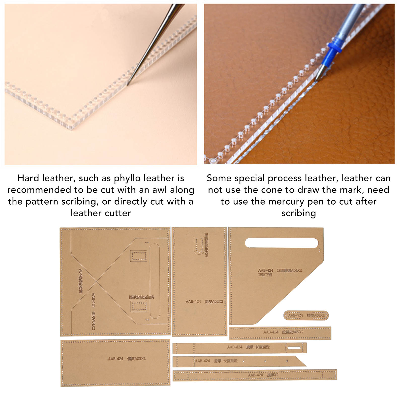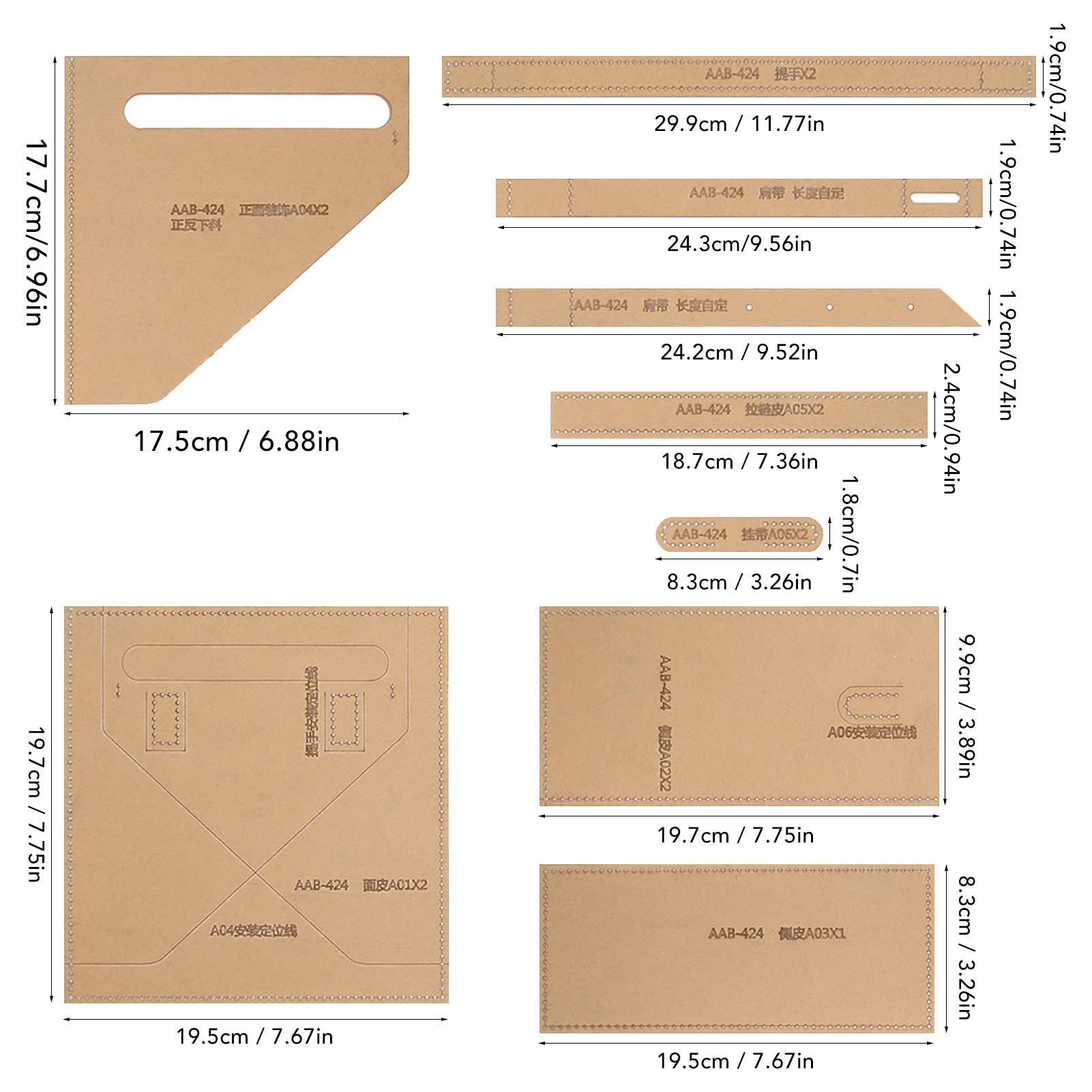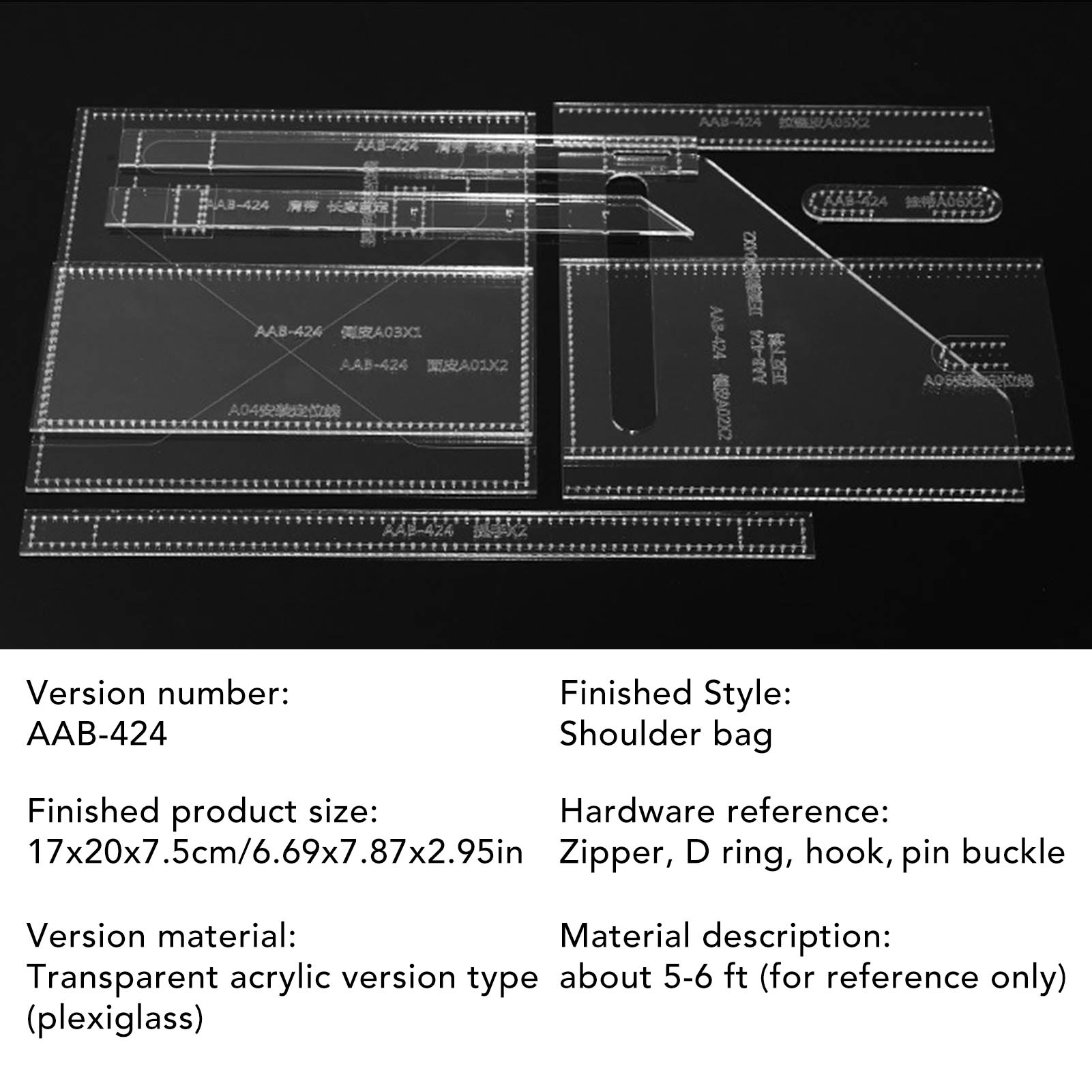 1、Precision Cutting: The templates pattern are transparent and clear, the cutting distance is accurate, according to the template, you can make a perfect shoulder bag. 2、Accurate Holes: The edges of the templates have precise holes for marking the stitching points with fixed spacing, and you can also stitch with your own spacing according to your preference. 3、Durable Material: The templates are made of premium acrylic material, lightweight, and can be used for a long time, it is easy to store, and do not worry about being damaged. 4、Application: This acrylic template is very suitable for people who like to do crafts or want to make a shoulder bag or handbag. 5、Easy to Use: The leather acrylic templates is suitable for DIY leather crafting, and is very easy to use for both professional crafters and beginners.
