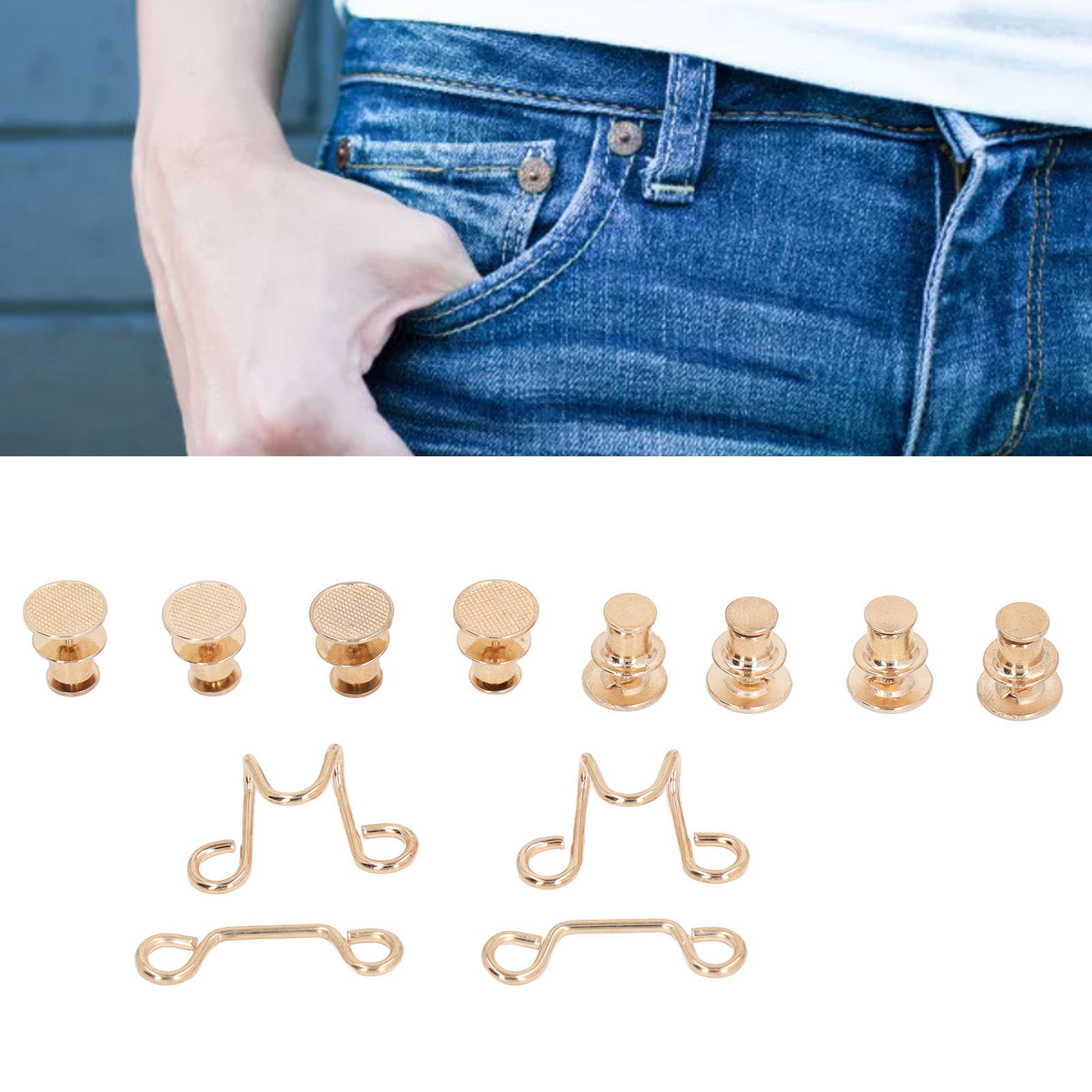 Adjustable Waist Buckle Detachable Adjustable Waist Button Pins Extender Set For Jean Skirts Pants Collars Gold