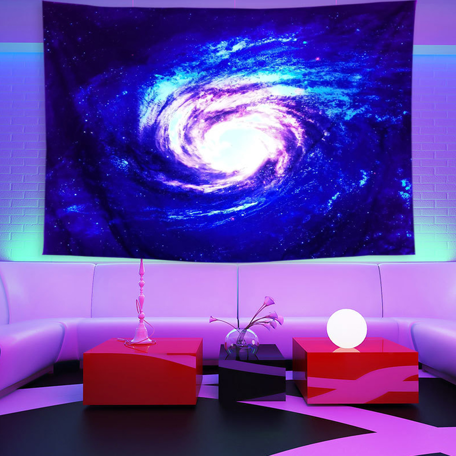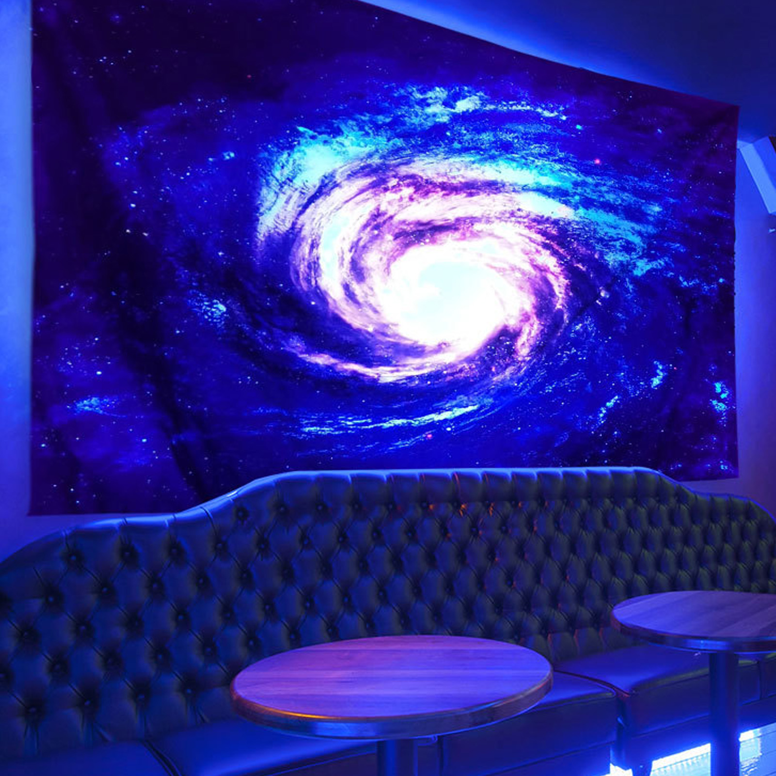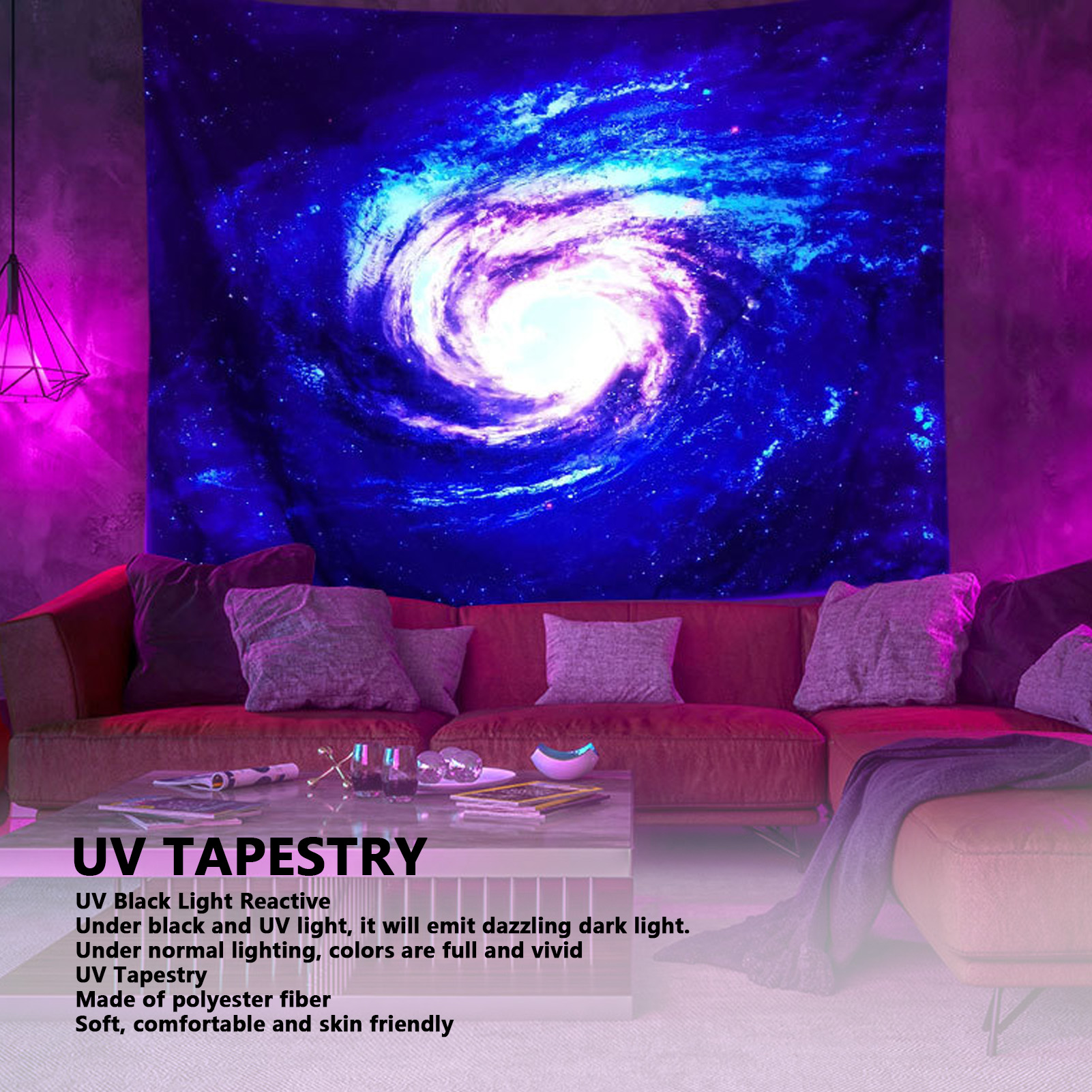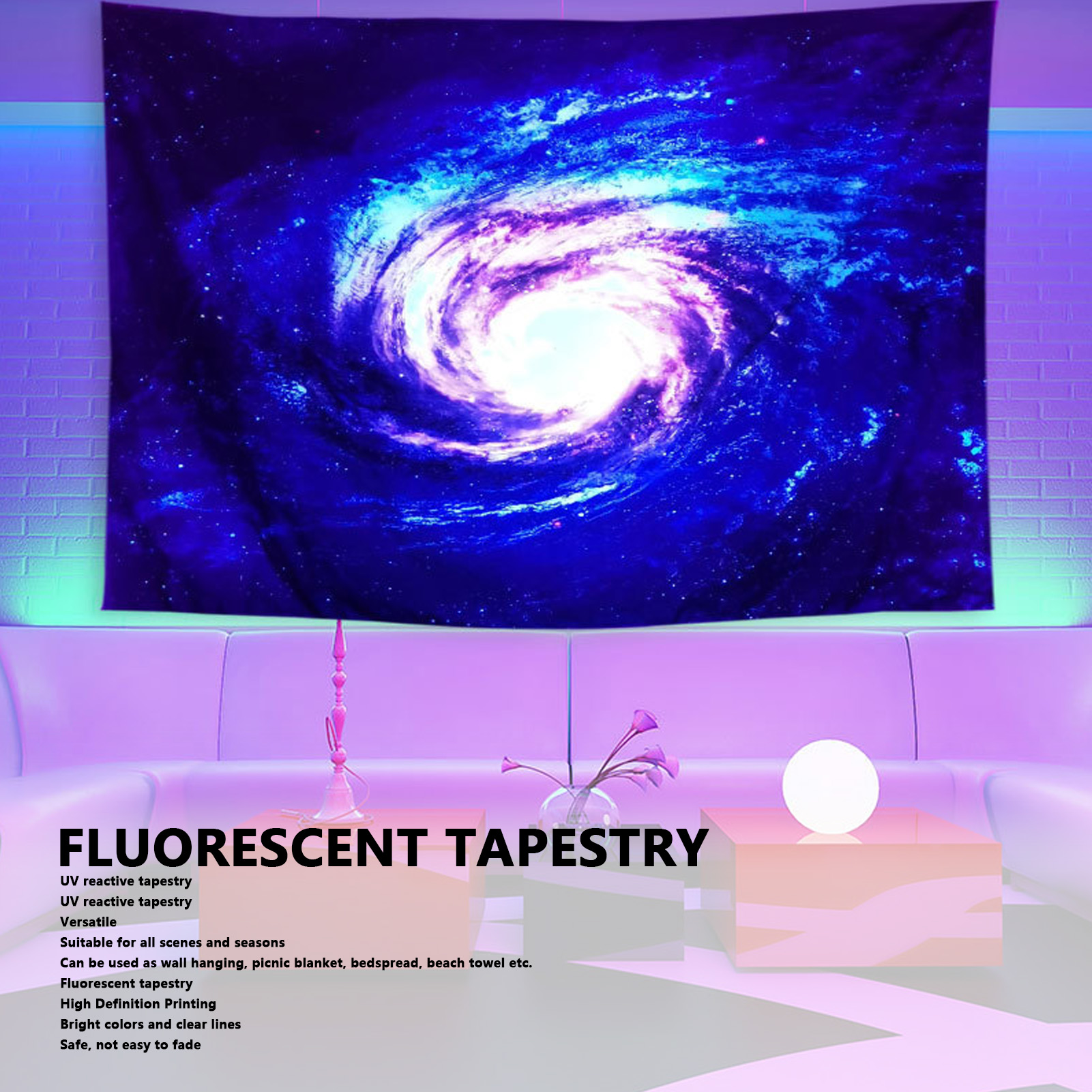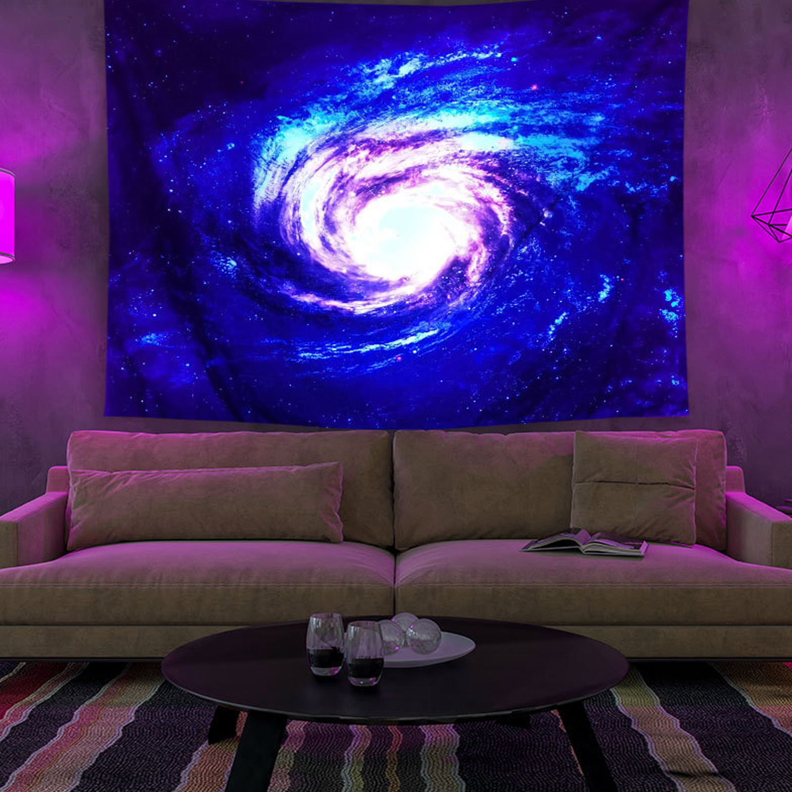1、UV BLACK LIGHT REACTIVE: Under black and ultraviolet light, it emits a dazzling dark glowing, and under normal lighting, the colors are full and vivid. 2、AMAZING: Tapestry consists of multiple elements that showcase a amazing tapestry that fills your room with mysterious and psychedelic colors. 3、HD PRINTING: UV reactive tapestry is printed in HD, bright colors, clear lines, safe and not easy to fade. 4、VERSATILE USE: UV tapestry is suitable for any scene and season, can be used as wall hanging, picnic blanket, bedspread, beach towel and so on. 5、POLYESTER FIBER: Fluorescent tapestry is made of polyester fiber, soft, comfortable, skin friendly, durable and easy to hanging.