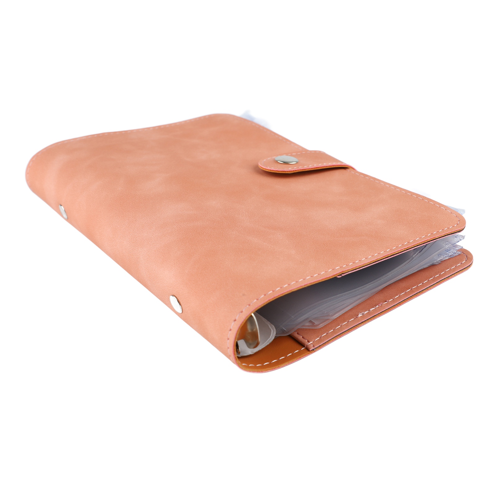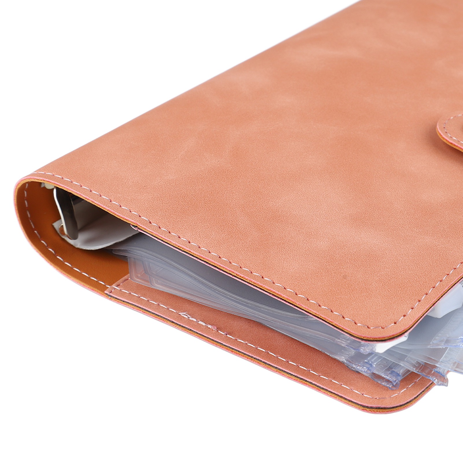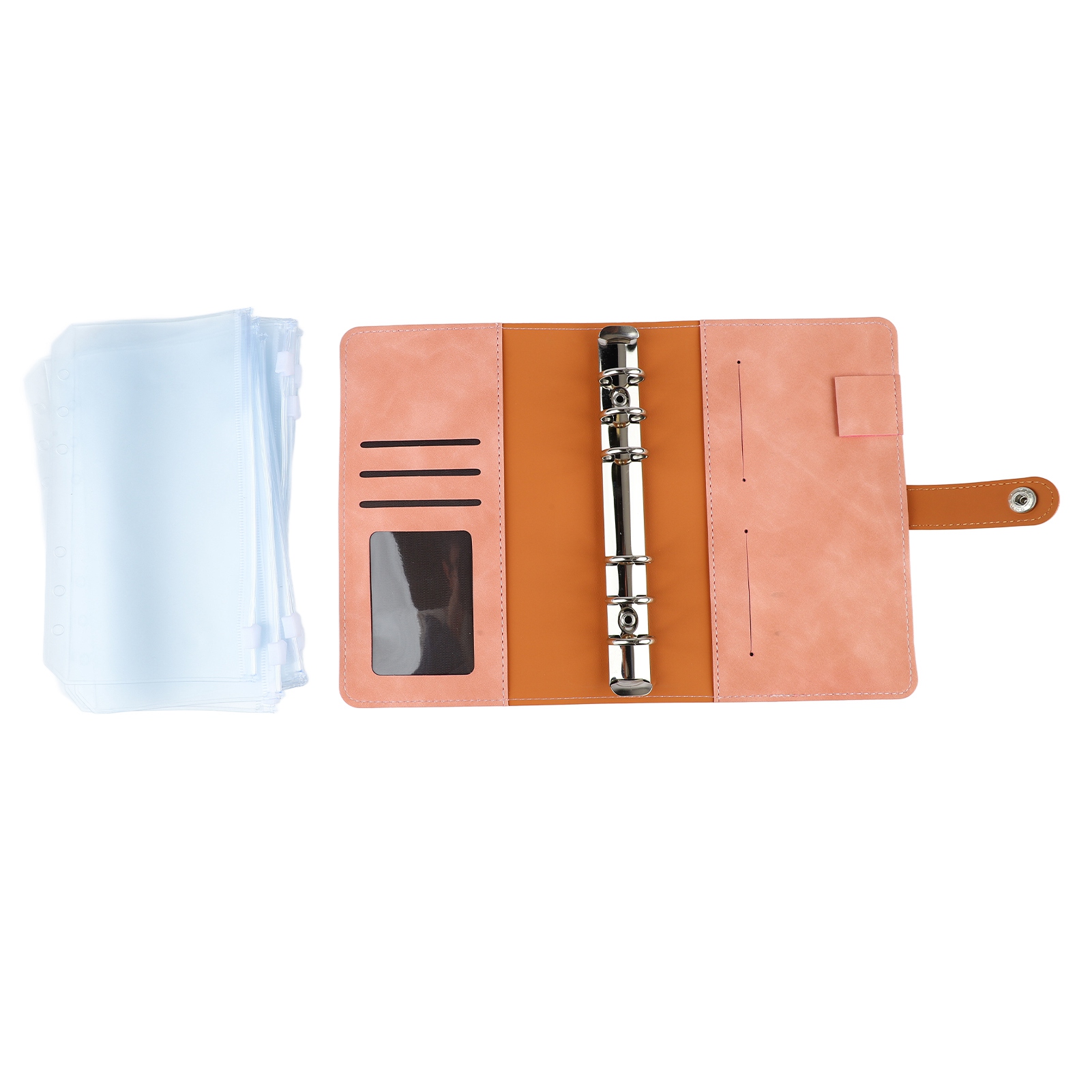 Budget Binder A6 Multiple Pockets Stainless Steel Rings PU Leather Cover Portfolio Binder for Office School Business Pink
