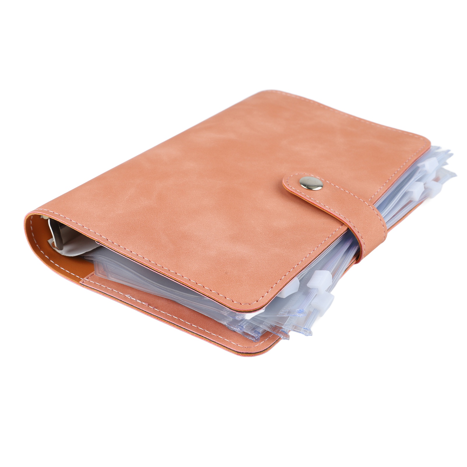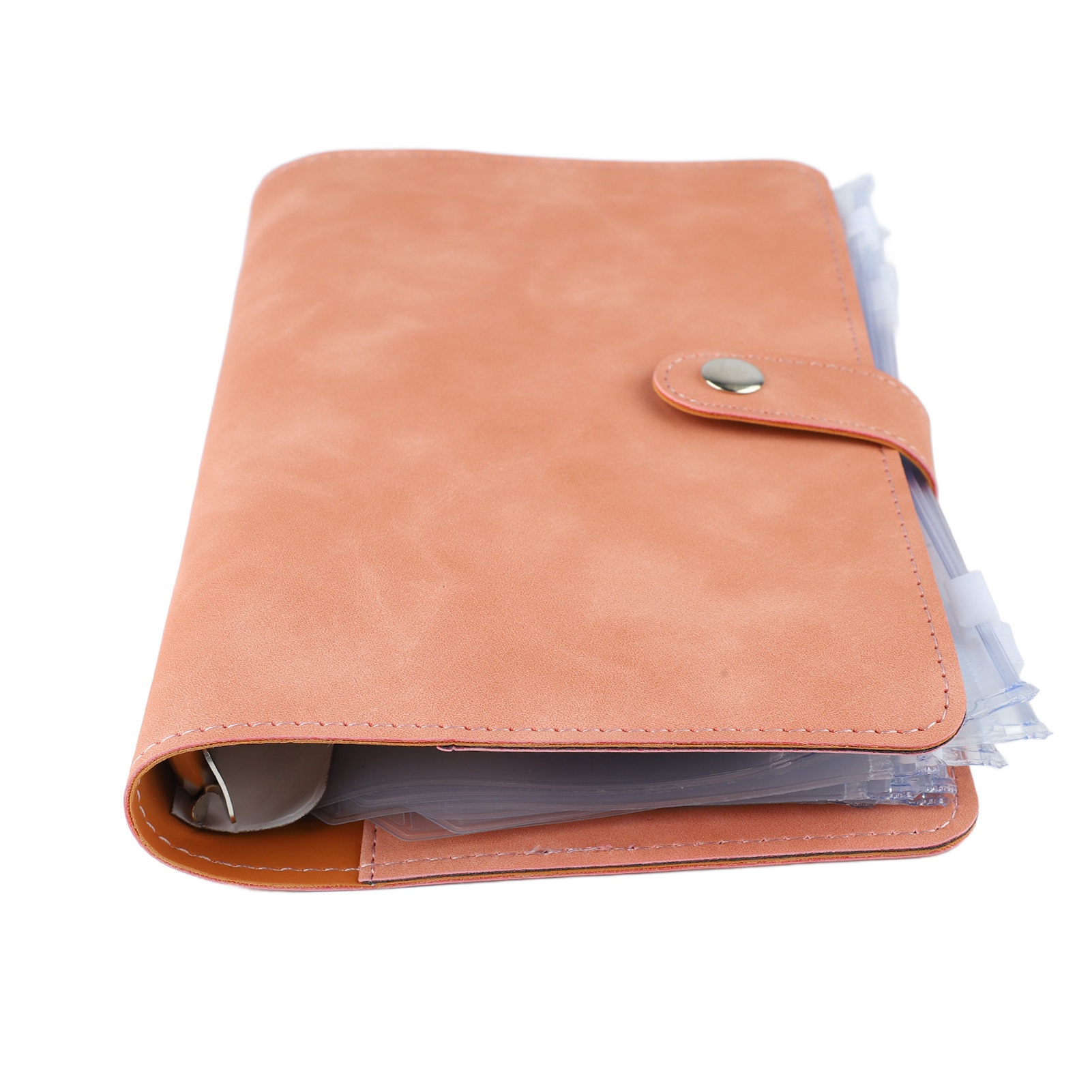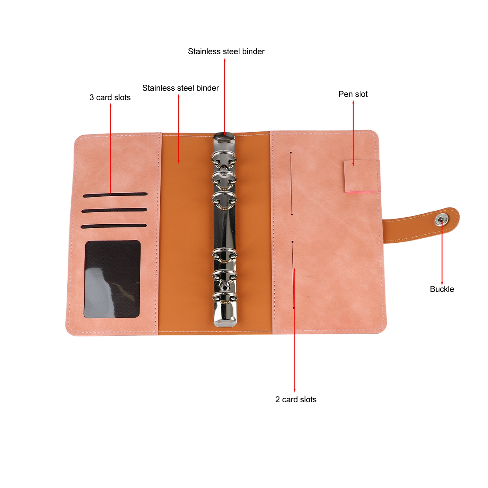Budget Binder A6 Multiple Pockets Stainless Steel Rings PU Leather Cover Portfolio Binder for Office School Business Pink