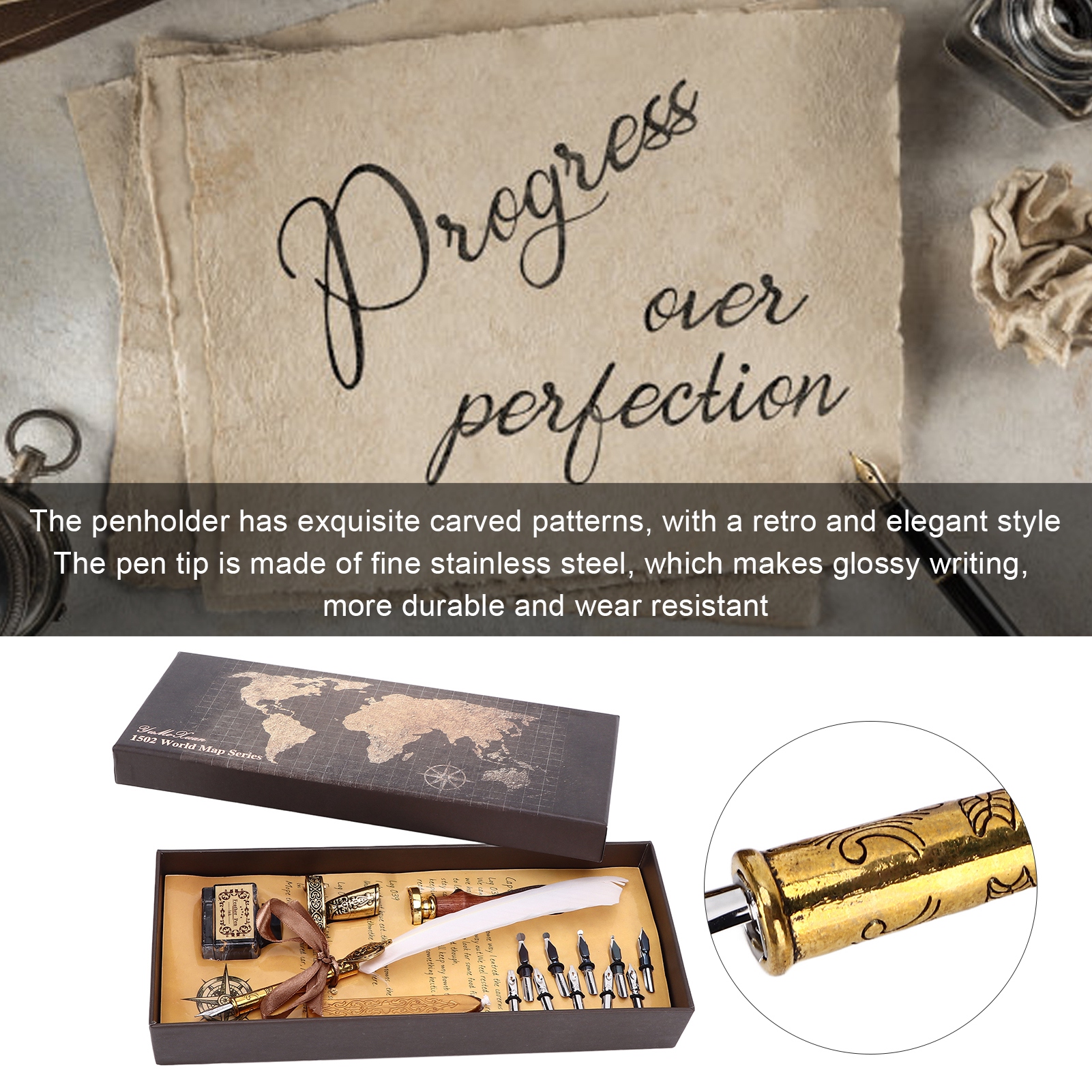 1、RETRO and ELEGANT: The penholder has exquisite carved patterns, with a retro and elegant style, which can meet your needs 2、EASY to MAINTAIN: Feathers have clear lines, which is soft and easy to split, just pinch the feather upwards and straighten the feather out with your fingers 3、DURABLE and WEARABLE: The calligraphy pen is made of fine stainless steel, with flexible nib, glossy writing, more durable and wear resistant 4、NIB ACCESSORIES: The caligraphy pen kits are equipped with replaceable nibs, which can write lines of different thicknesses 5、SCOPE of APPLICATION: 1‑5mm/0.04‑0.20in flat nib is suitable for Gothic and Italian calligraphy practice and creation