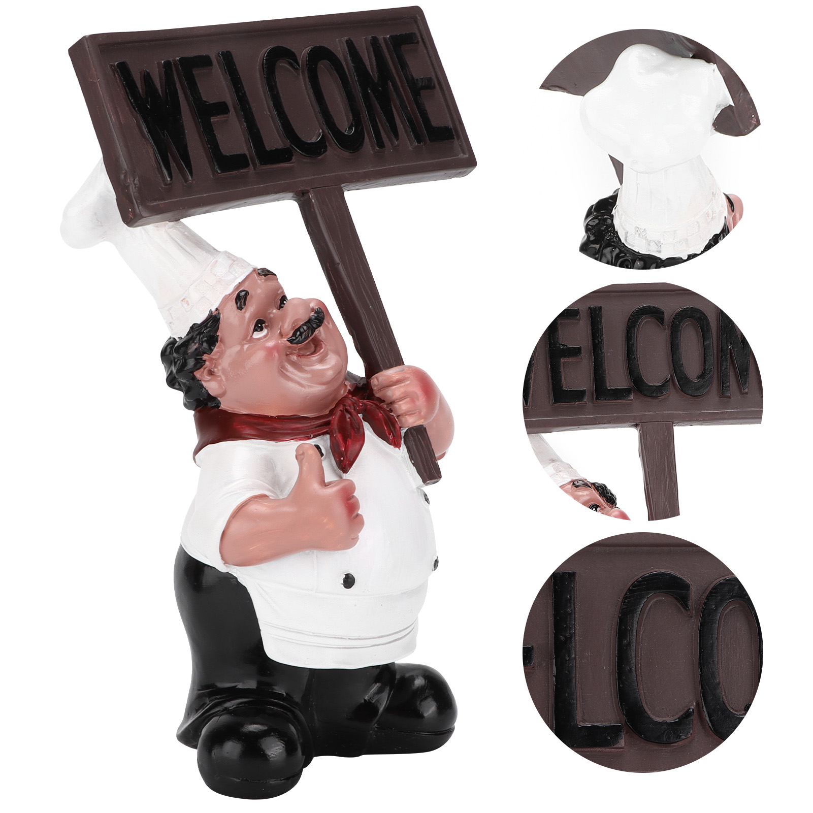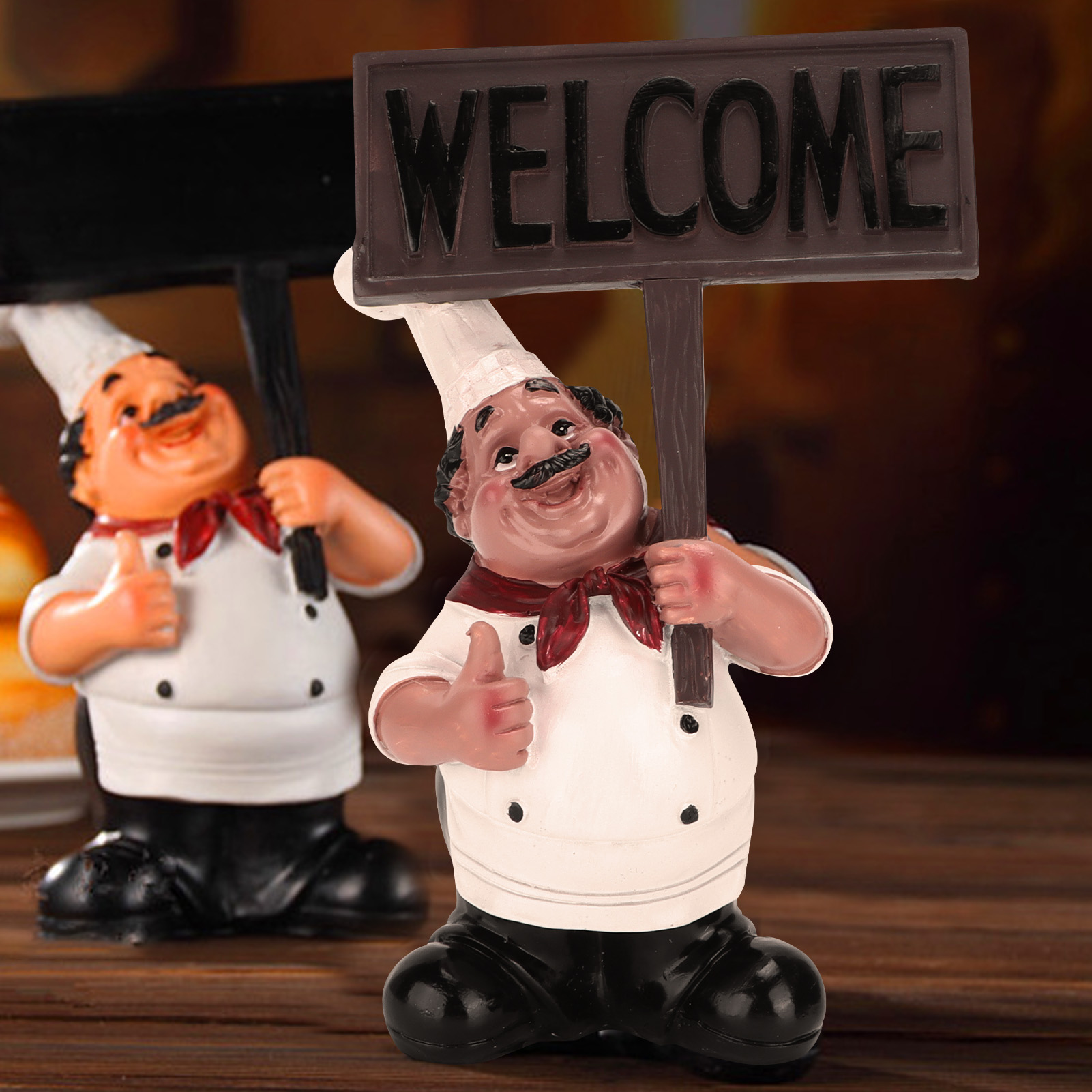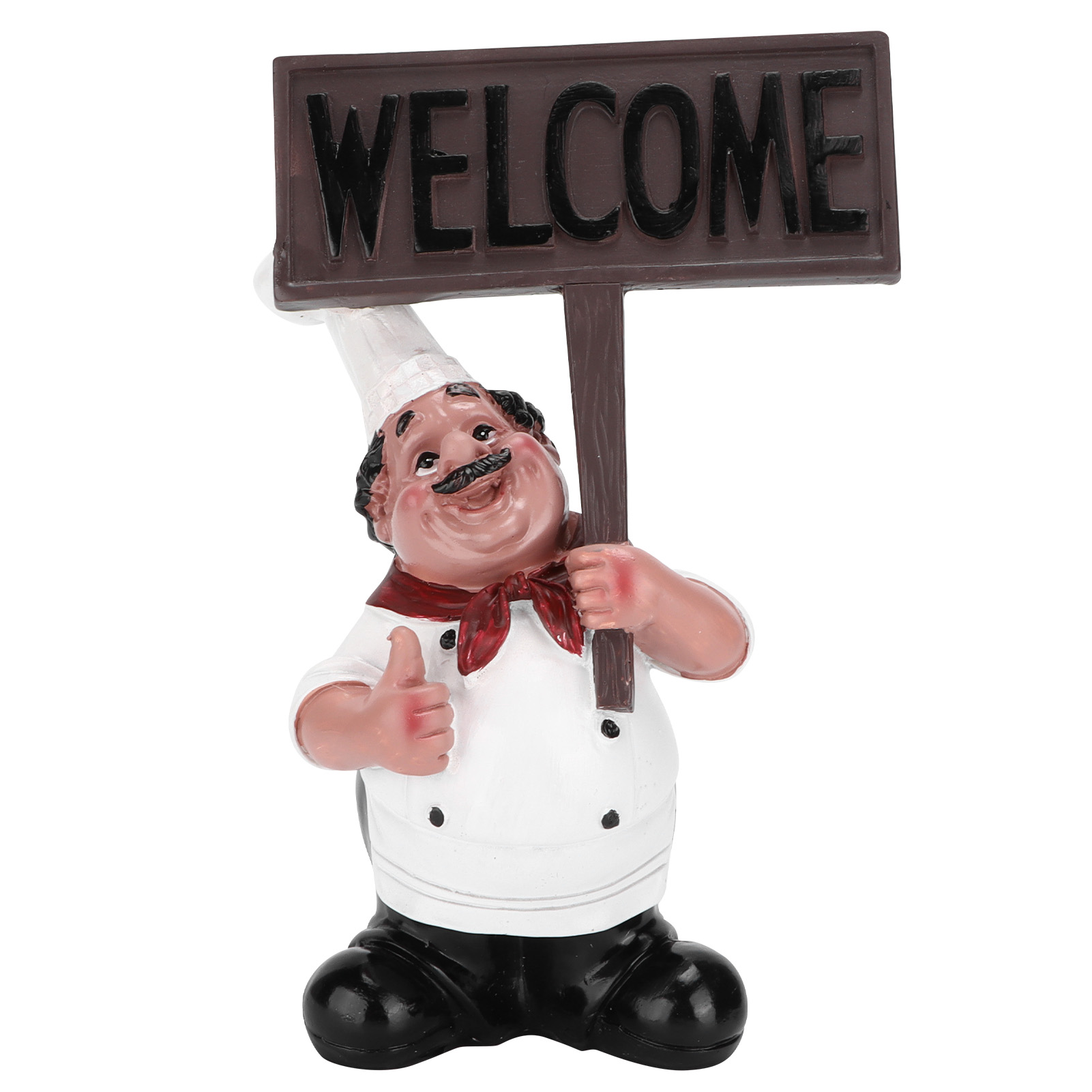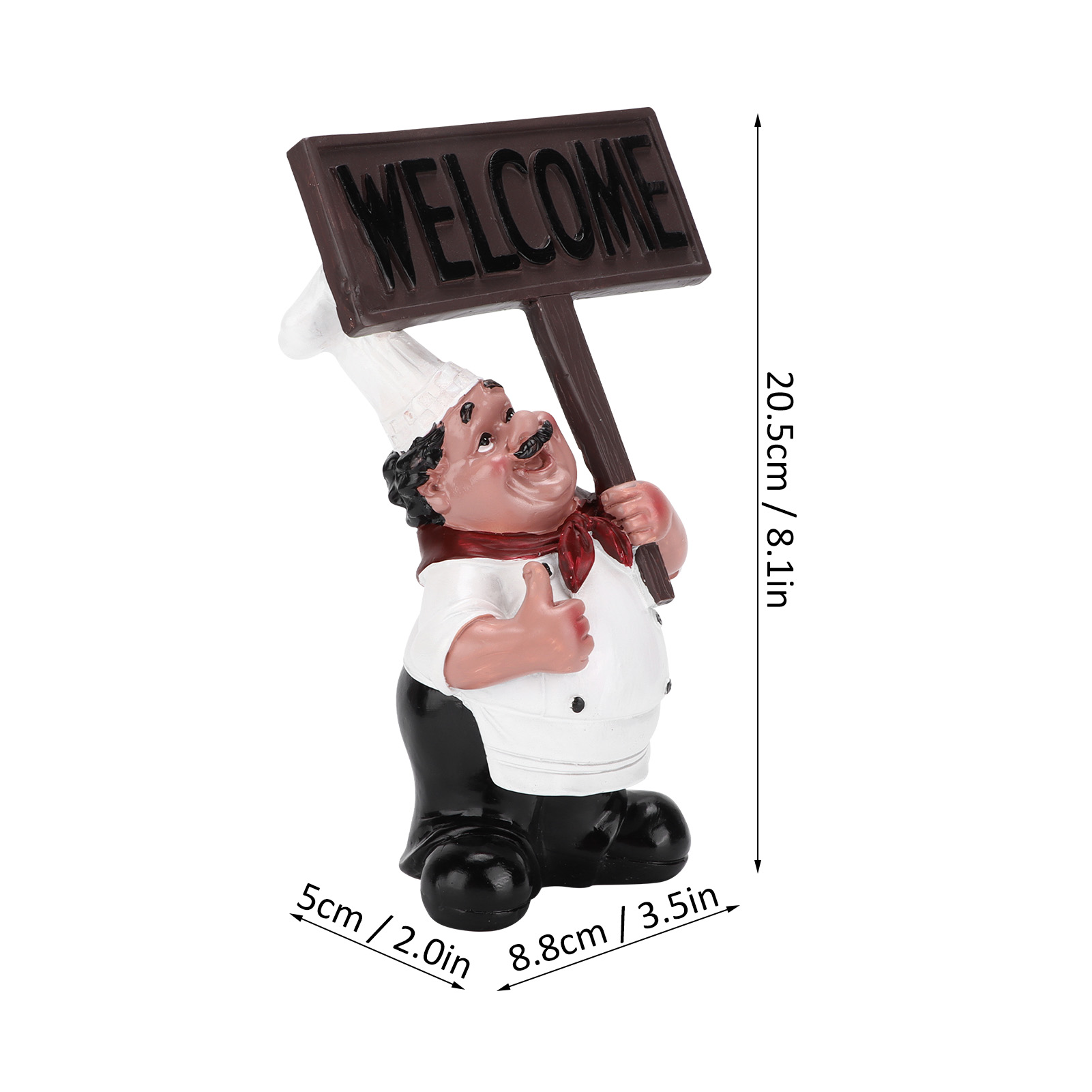 1、This is an adorable cute chef statue, white chef hat, red scarf, holding welcome sign board, and smiling at you all the time. 2、Put it on your countertop to welcome your guest, Chef with charming and kindly smiling face to warm welcome your guest. 3、Made of synthetic resin, this statue is environmentally friendly and non‑toxic, durable, waterproof, not easy to fade. 4、Great partner for home kitchen, restaurant; this is also can be unique gift for mother's day, wedding gift, christmas, and housewarming etc. 5、Perfect for kitchen decorations and housewarming gifts, this small sculpture is a very good choice for both purpose.