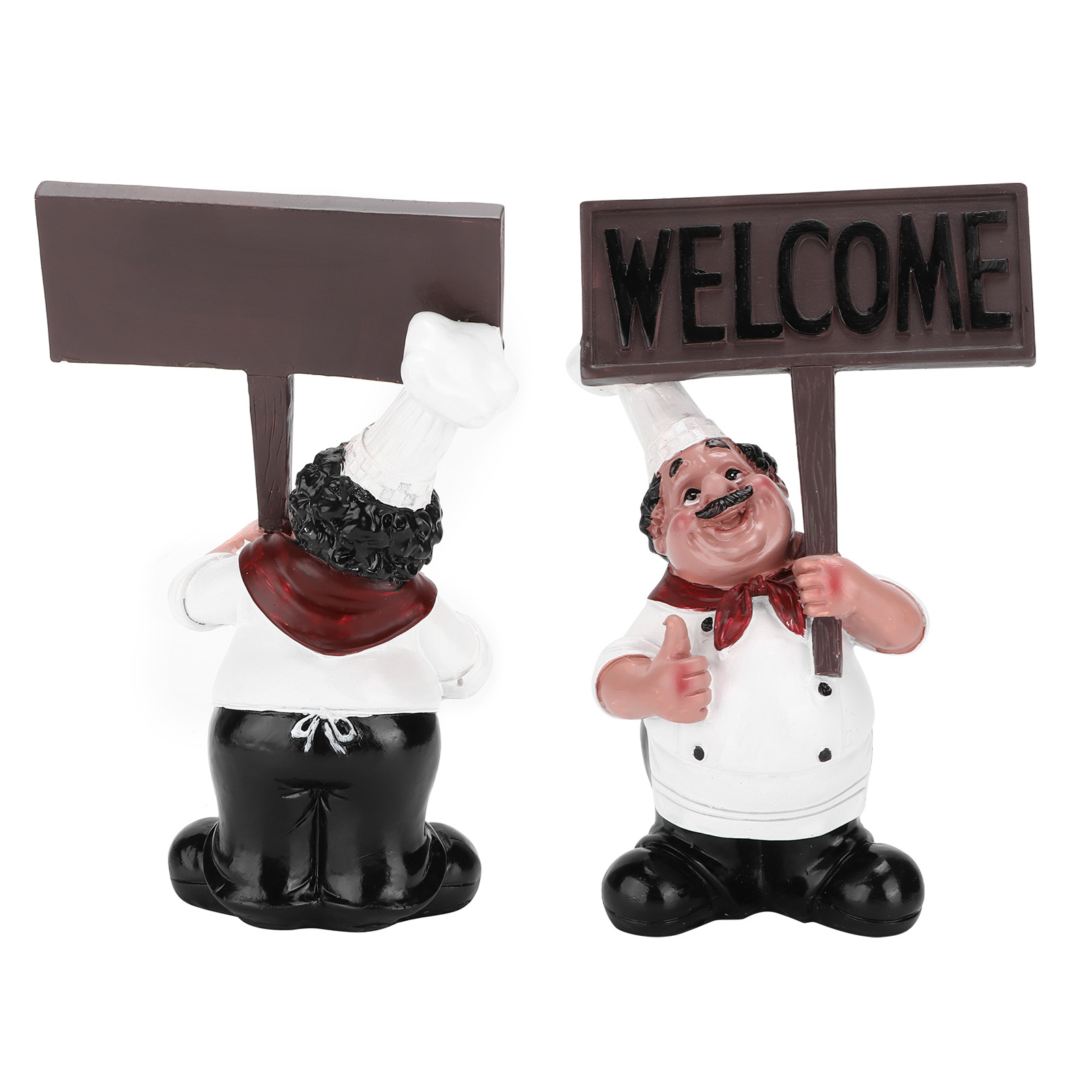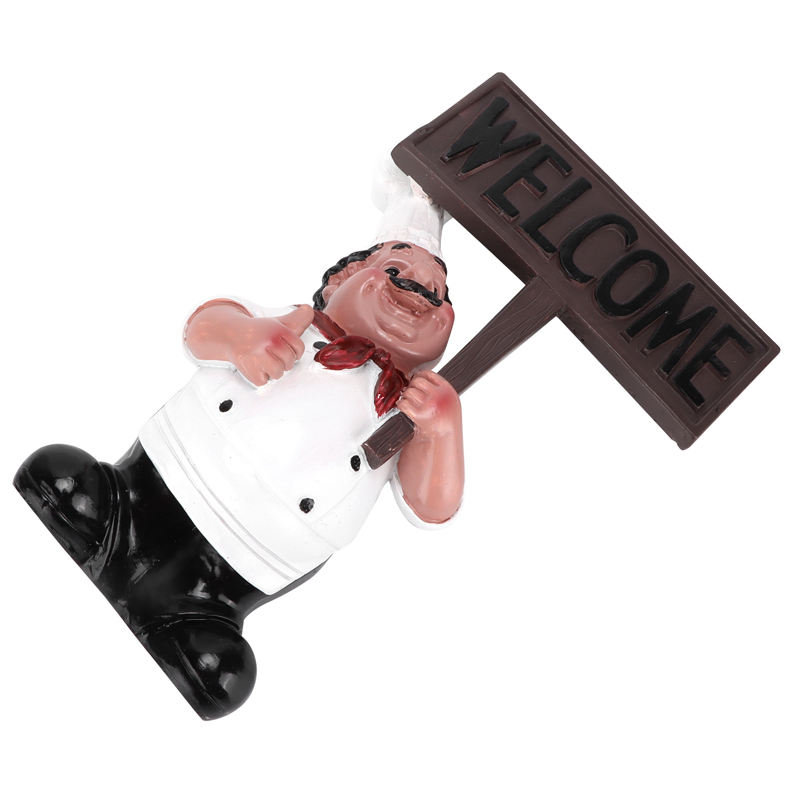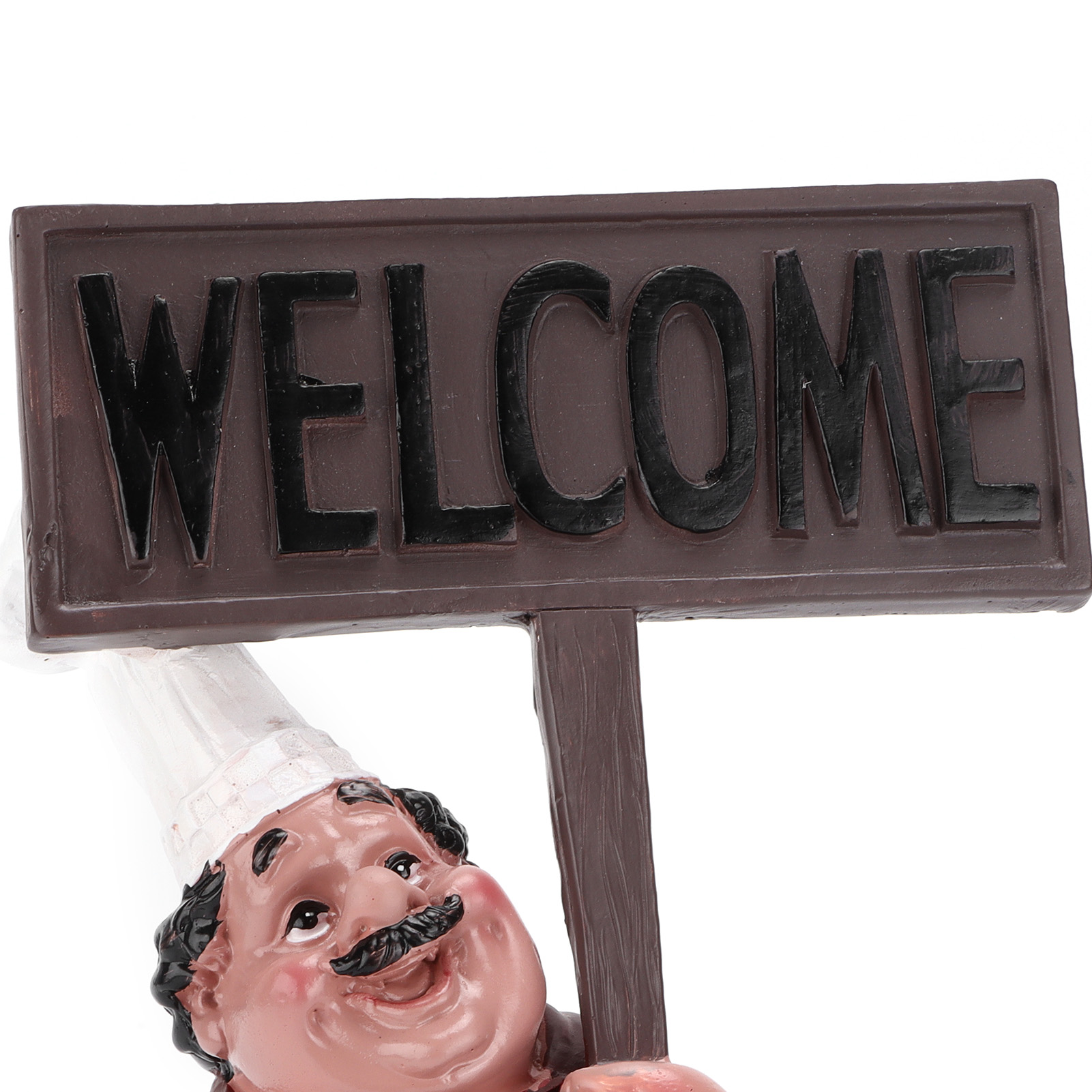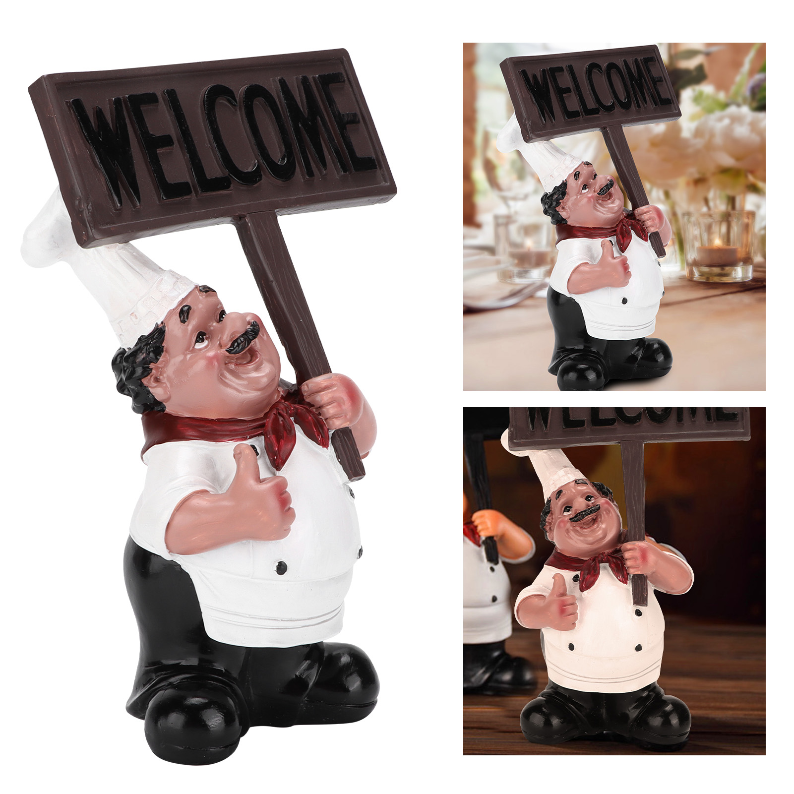 1、This is an adorable cute chef statue, white chef hat, red scarf, holding welcome sign board, and smiling at you all the time. 2、Put it on your countertop to welcome your guest, Chef with charming and kindly smiling face to warm welcome your guest. 3、Made of synthetic resin, this statue is environmentally friendly and non‑toxic, durable, waterproof, not easy to fade. 4、Great partner for home kitchen, restaurant; this is also can be unique gift for mother's day, wedding gift, christmas, and housewarming etc. 5、Perfect for kitchen decorations and housewarming gifts, this small sculpture is a very good choice for both purpose.