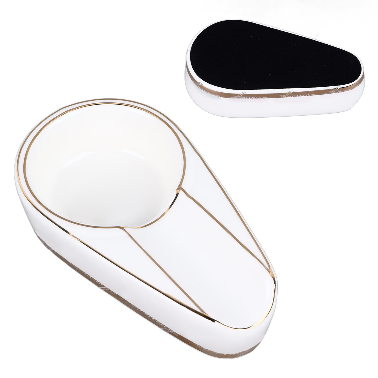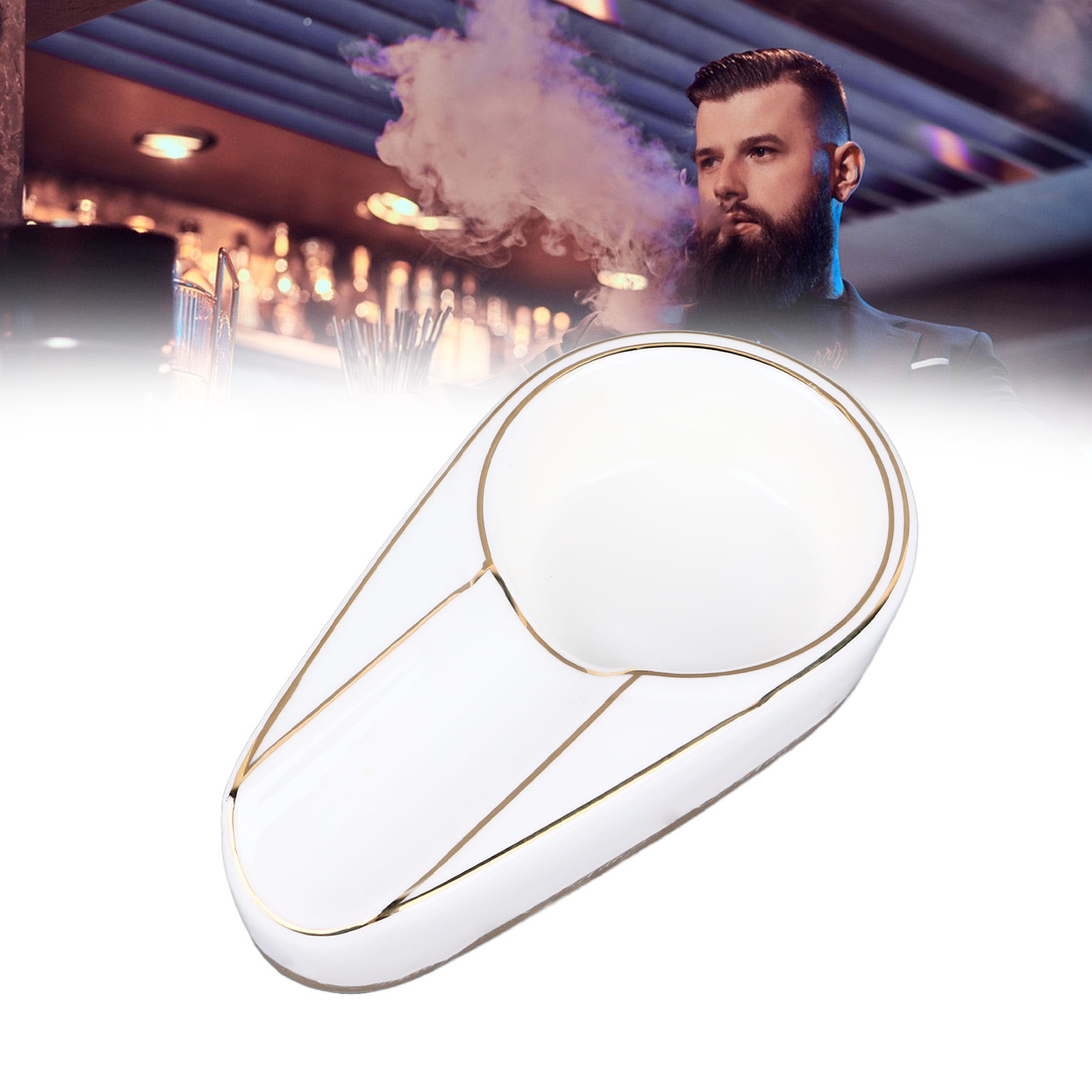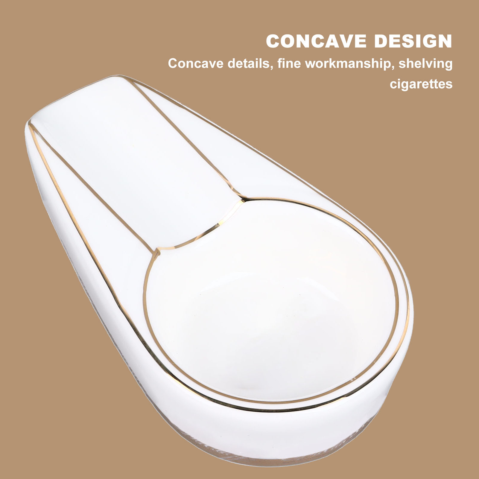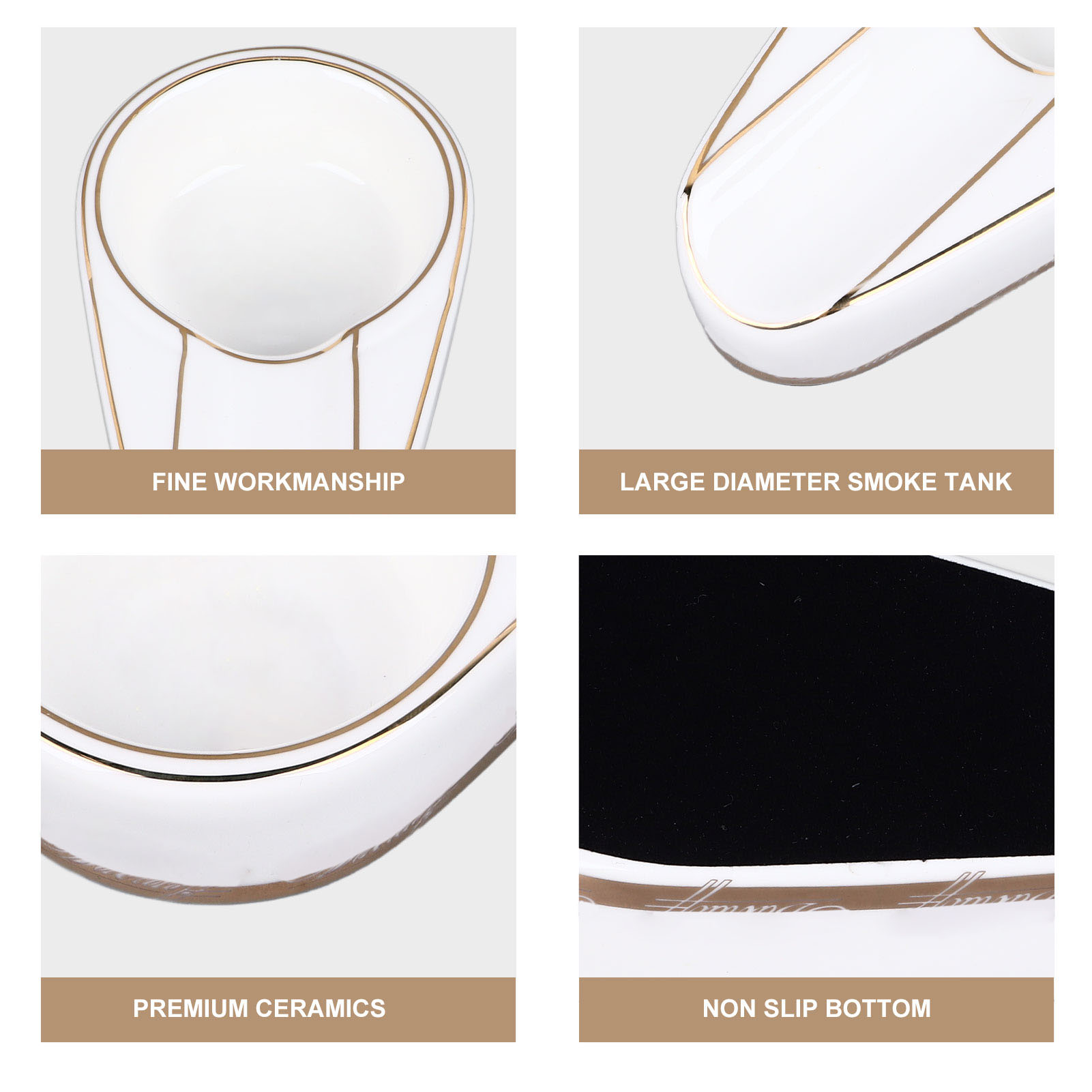 1、CERAMIC MATERIAL: The cigar ashtray is made of premium porcelain clay, fired at high temperature, with a delicate and clean glaze, safe and hygienic to use. 2、ANTI SLIP DESIGN: The anti slip design underneath the bottom of the cigar ashtray provides high stability and can't be moved. Avoid countertop scuffs and scratches, effectively improve the life of the ashtray. 3、CONCAVE DESIGN: Ceramic cigar ashtray has unique concave details, well made, rest your cigarettes on hand. 4、EASY TO CLEAN: The ceramic cigar ashtray has a simple shape with rounded edges that do not hide dirt and are easy to clean. 5、COMPACT SIZE: The cigar ashtray has a compact size that is perfect for a desktop or small table and can also fit in a desk drawer.