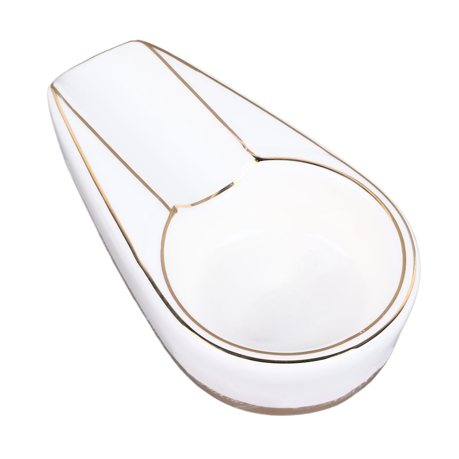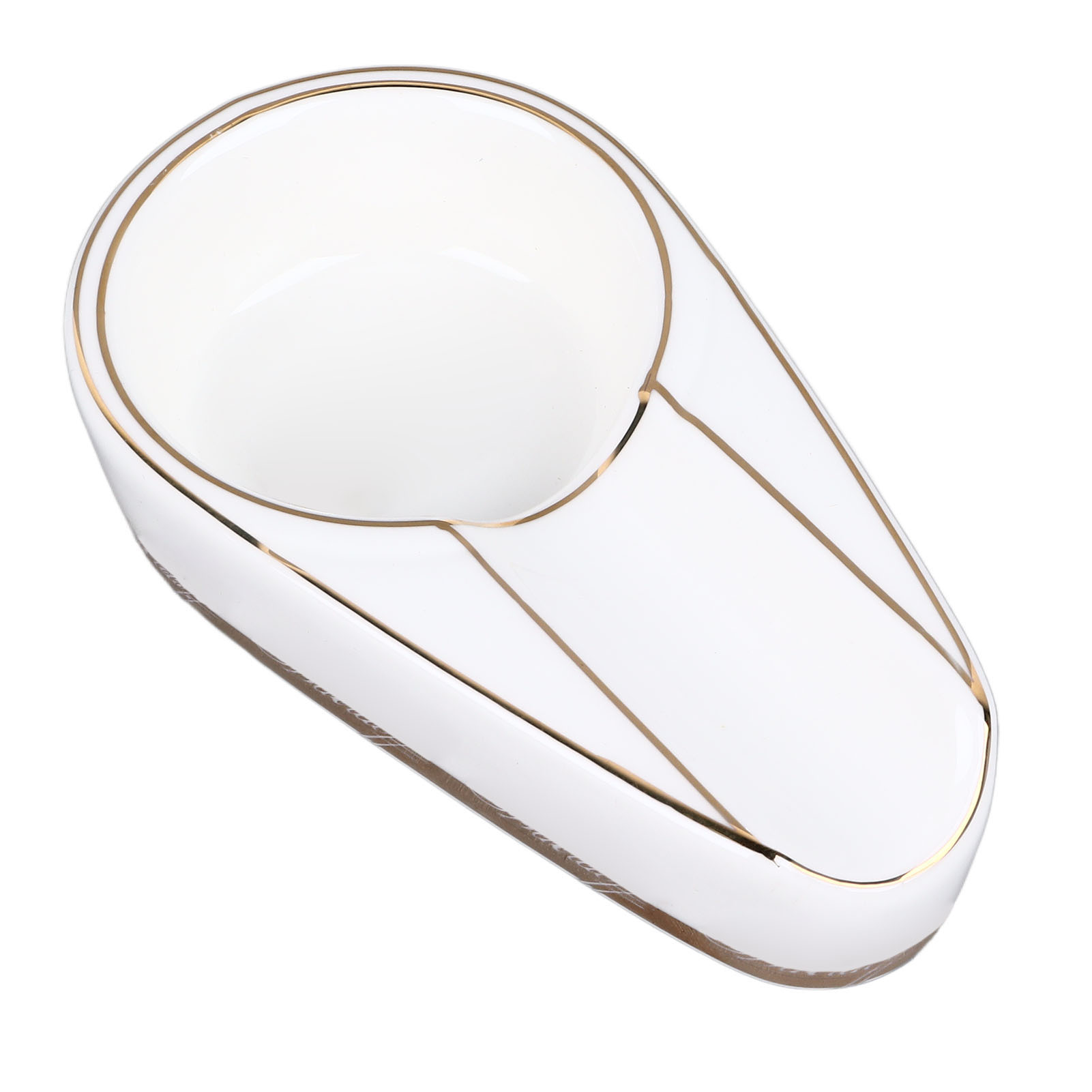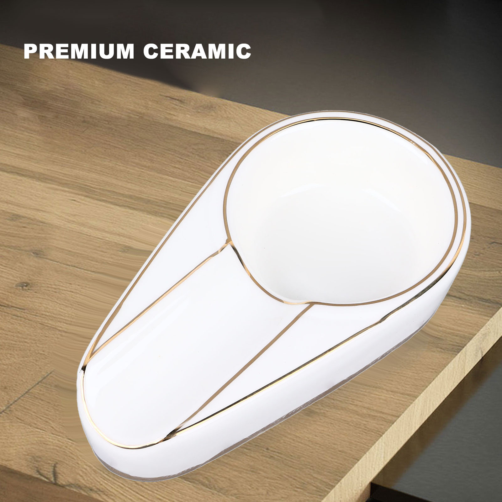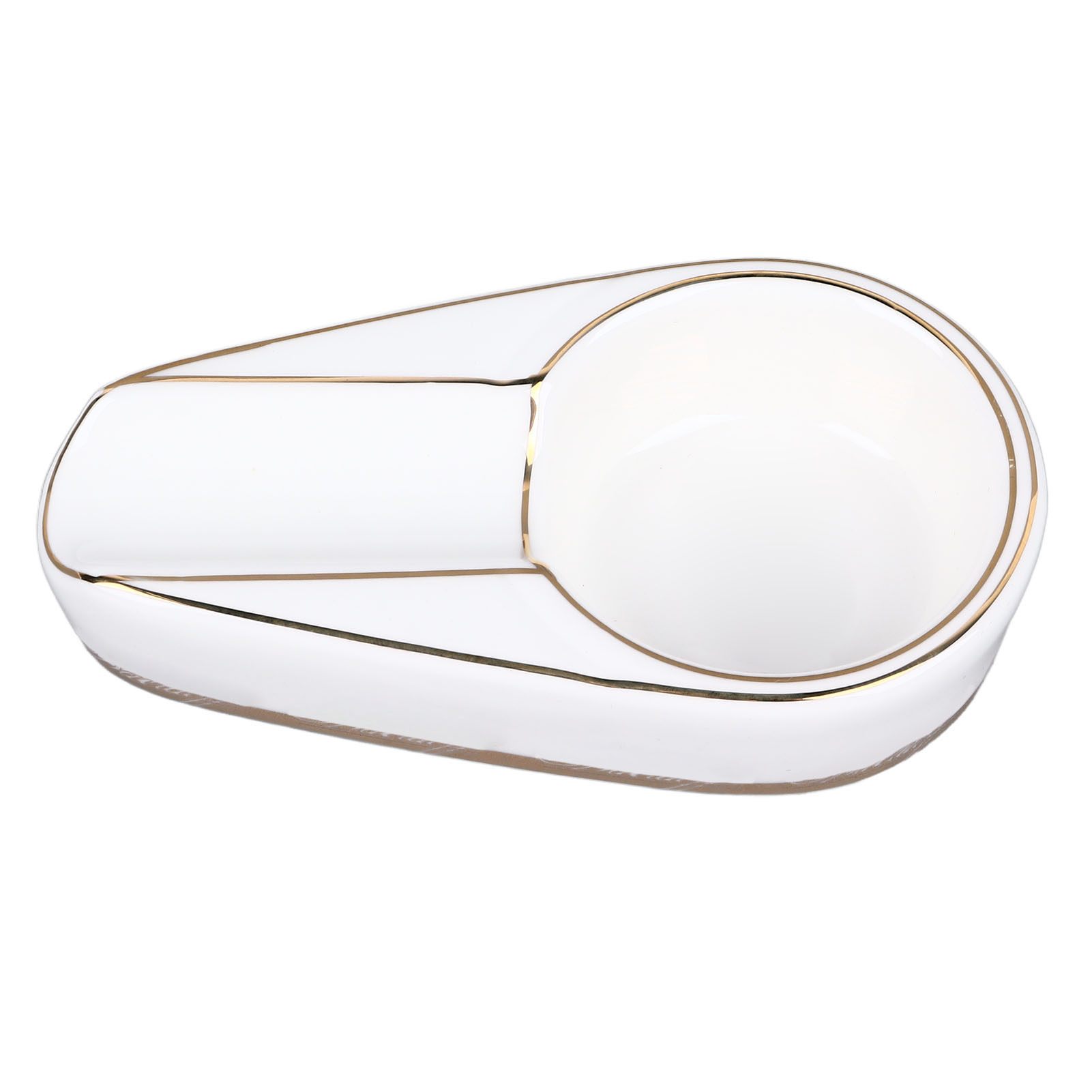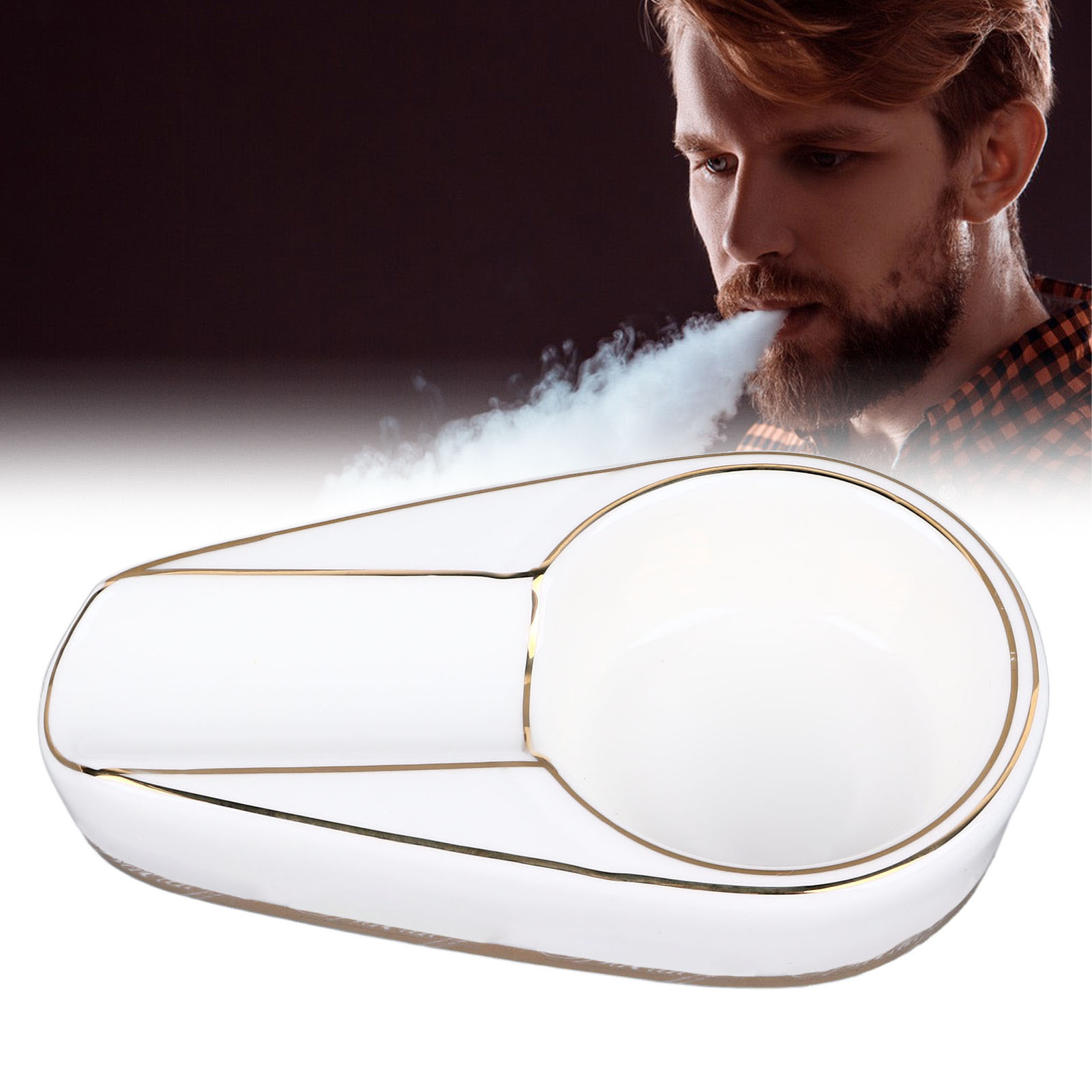 1、CERAMIC MATERIAL: The cigar ashtray is made of premium porcelain clay, fired at high temperature, with a delicate and clean glaze, safe and hygienic to use. 2、ANTI SLIP DESIGN: The anti slip design underneath the bottom of the cigar ashtray provides high stability and can't be moved. Avoid countertop scuffs and scratches, effectively improve the life of the ashtray. 3、CONCAVE DESIGN: Ceramic cigar ashtray has unique concave details, well made, rest your cigarettes on hand. 4、EASY TO CLEAN: The ceramic cigar ashtray has a simple shape with rounded edges that do not hide dirt and are easy to clean. 5、COMPACT SIZE: The cigar ashtray has a compact size that is perfect for a desktop or small table and can also fit in a desk drawer.