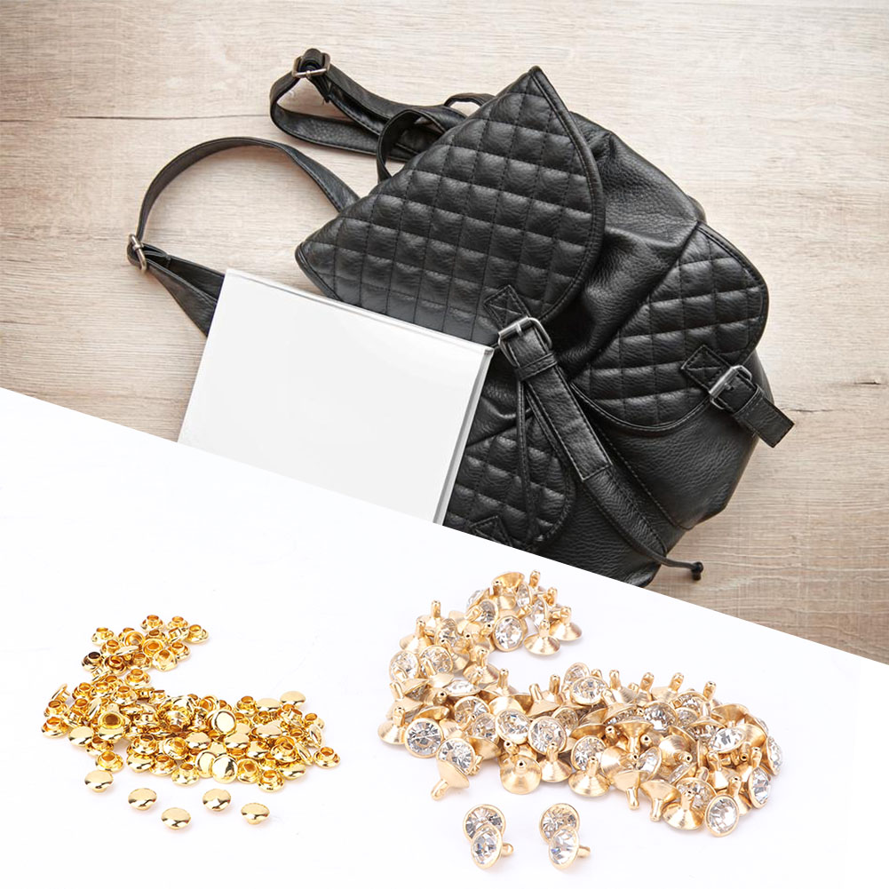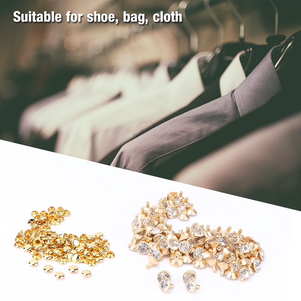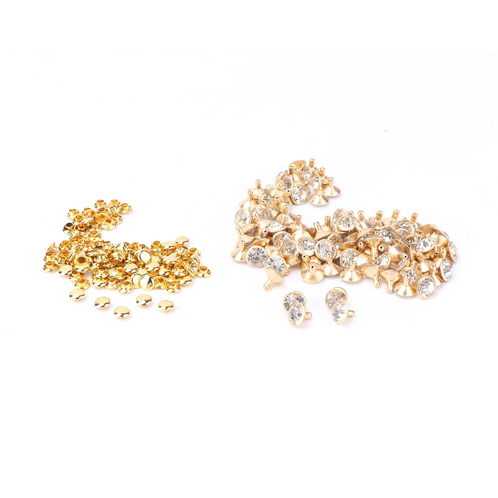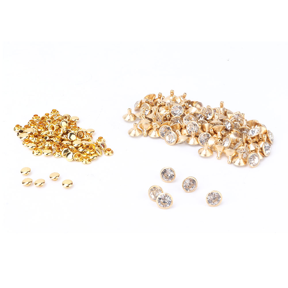 1、Products are made of high-quality metal, wear-resistant, long service life. 2、The surface of the product is treated by electroplating, which is not easy to rust, beautiful and durable. 3、The products are inlaid with crystal, which are very well decorated and shiny. 4、Very small decorations, can be installed on clothes as decoration, you can use DIY various shapes. 5、The product is suitable for decorations such as boxes, bags, shoes, clothes, etc.