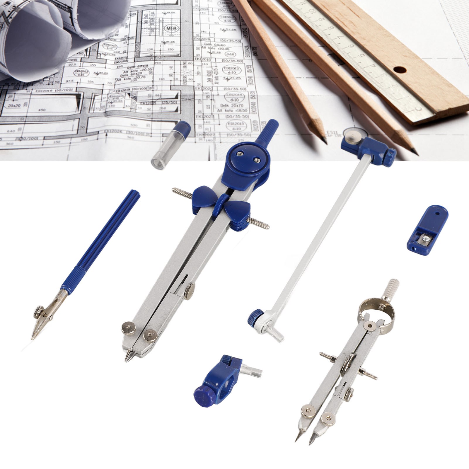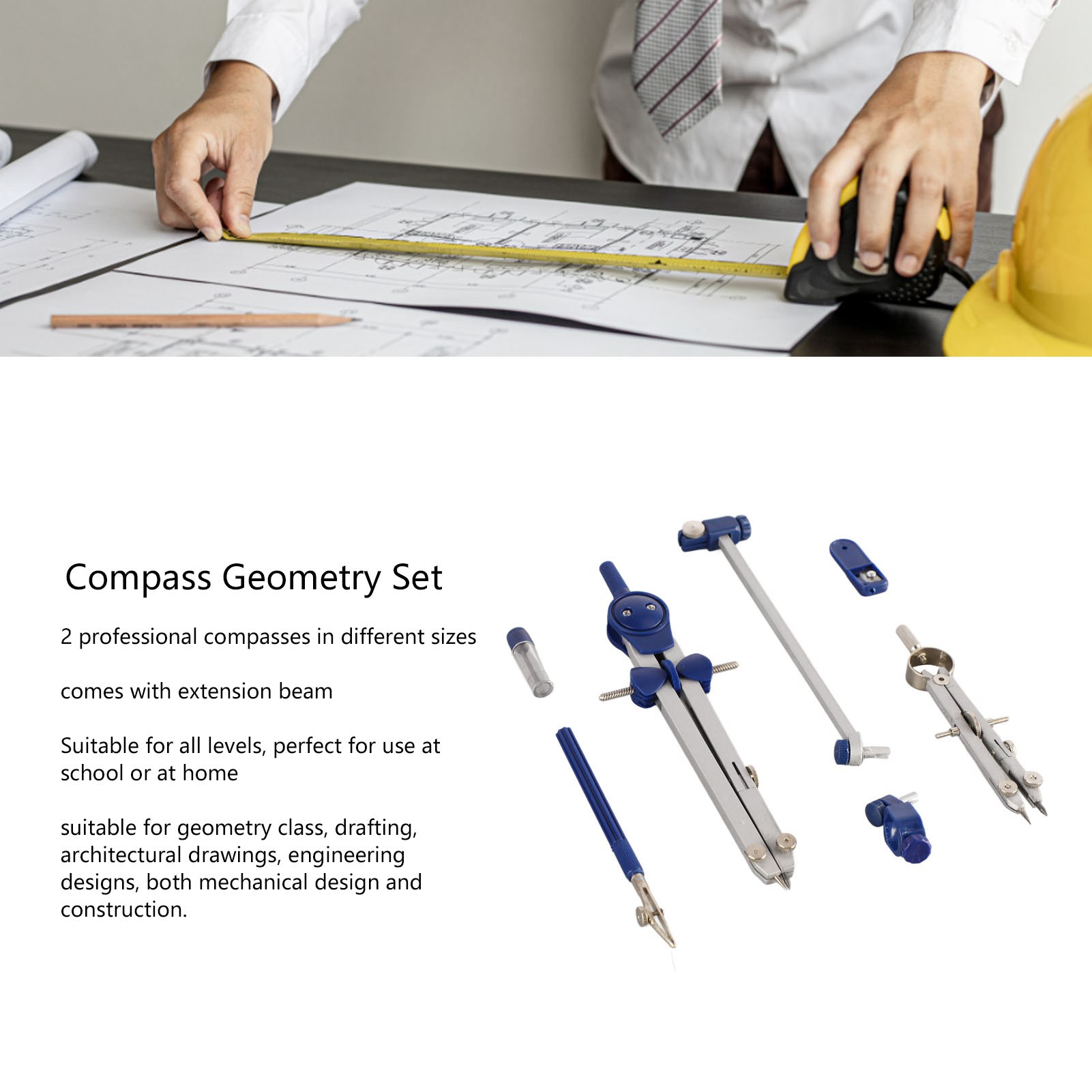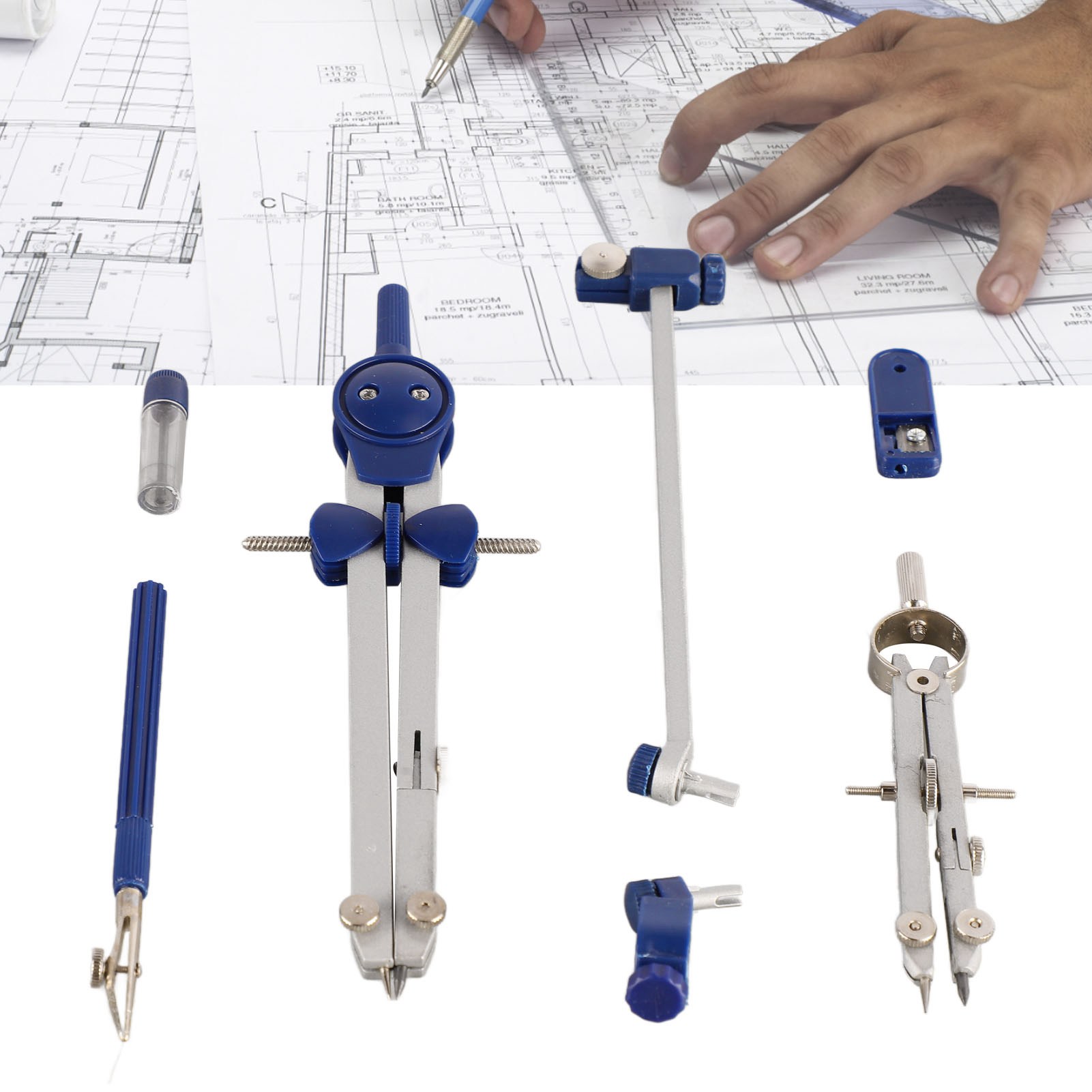 Compass Geometry Set Extensible Zinc Alloy Shatterproof Box Packed Durable Math Compass Set for Office School Drawing