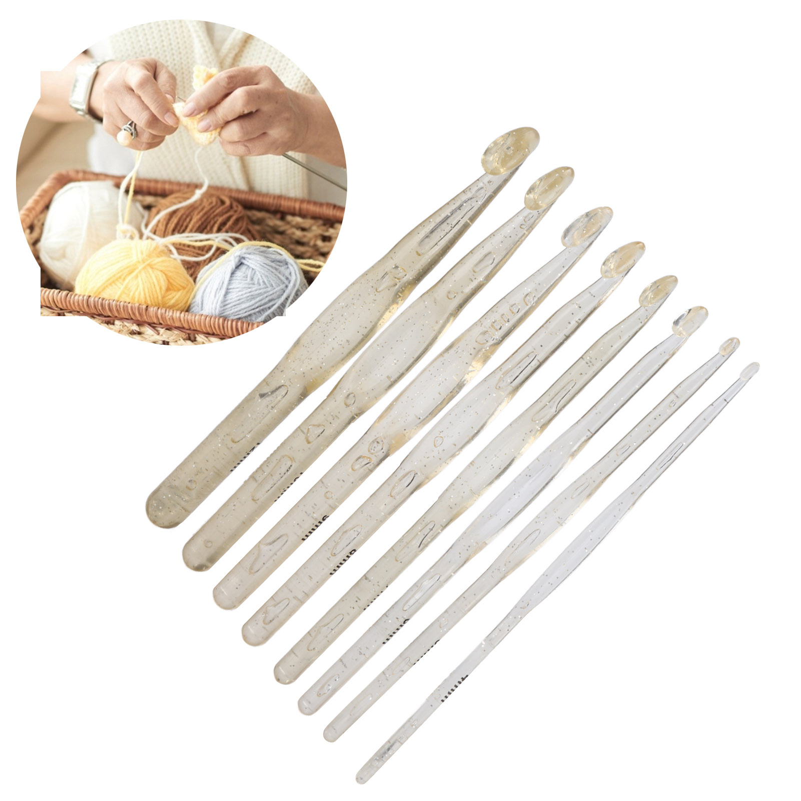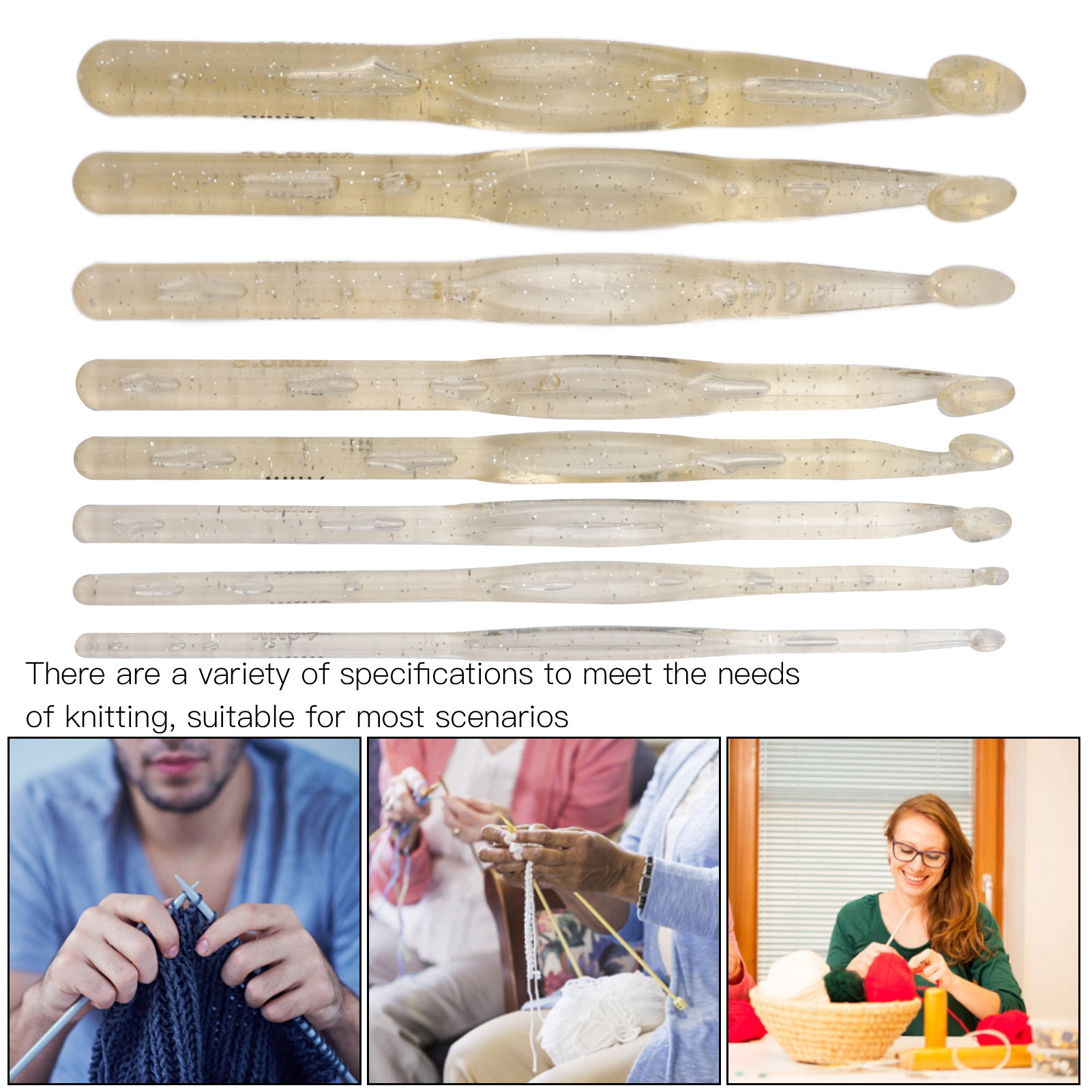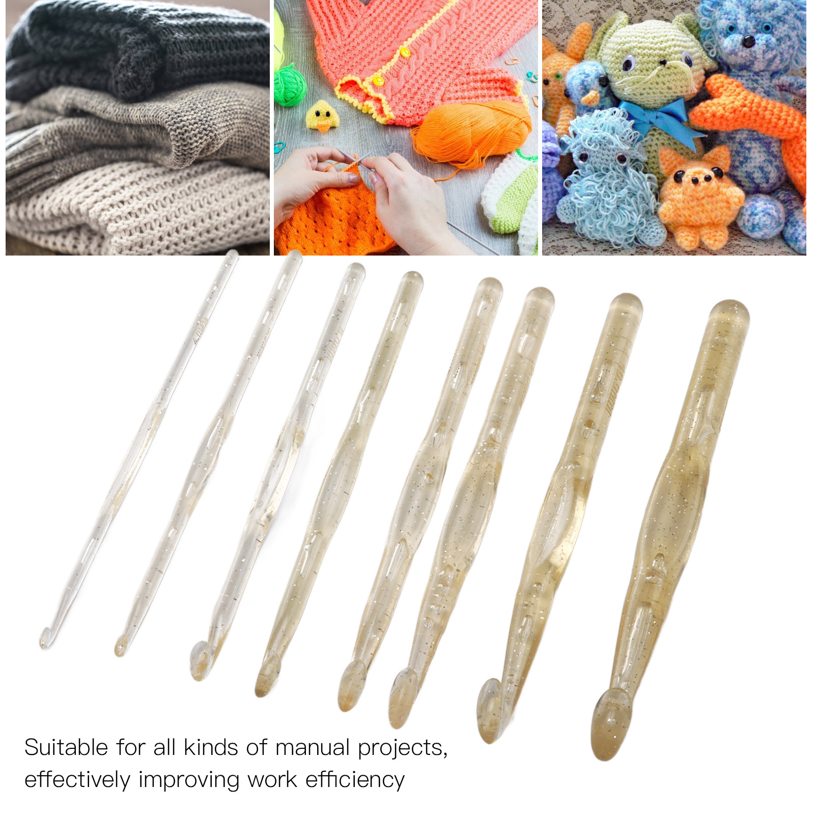 1、Fast: Suitable for all kinds of manual projects, effectively improving work efficiency. 2、Multiple Specifications: There are multiple specifications to meet your knitting needs, suitable for most scenarios. 3、Comfortable: Ergonomic crochet hook, plastic smooth, comfortable and labor saving. 4、Function: Use this crochet hook to make scarves and blankets quickly and conveniently. 5、Applicability: Suitable for carpet calf leather engineering and multi strand yarns, coarse carpet yarns, T shirt yarns and other bulky yarns.