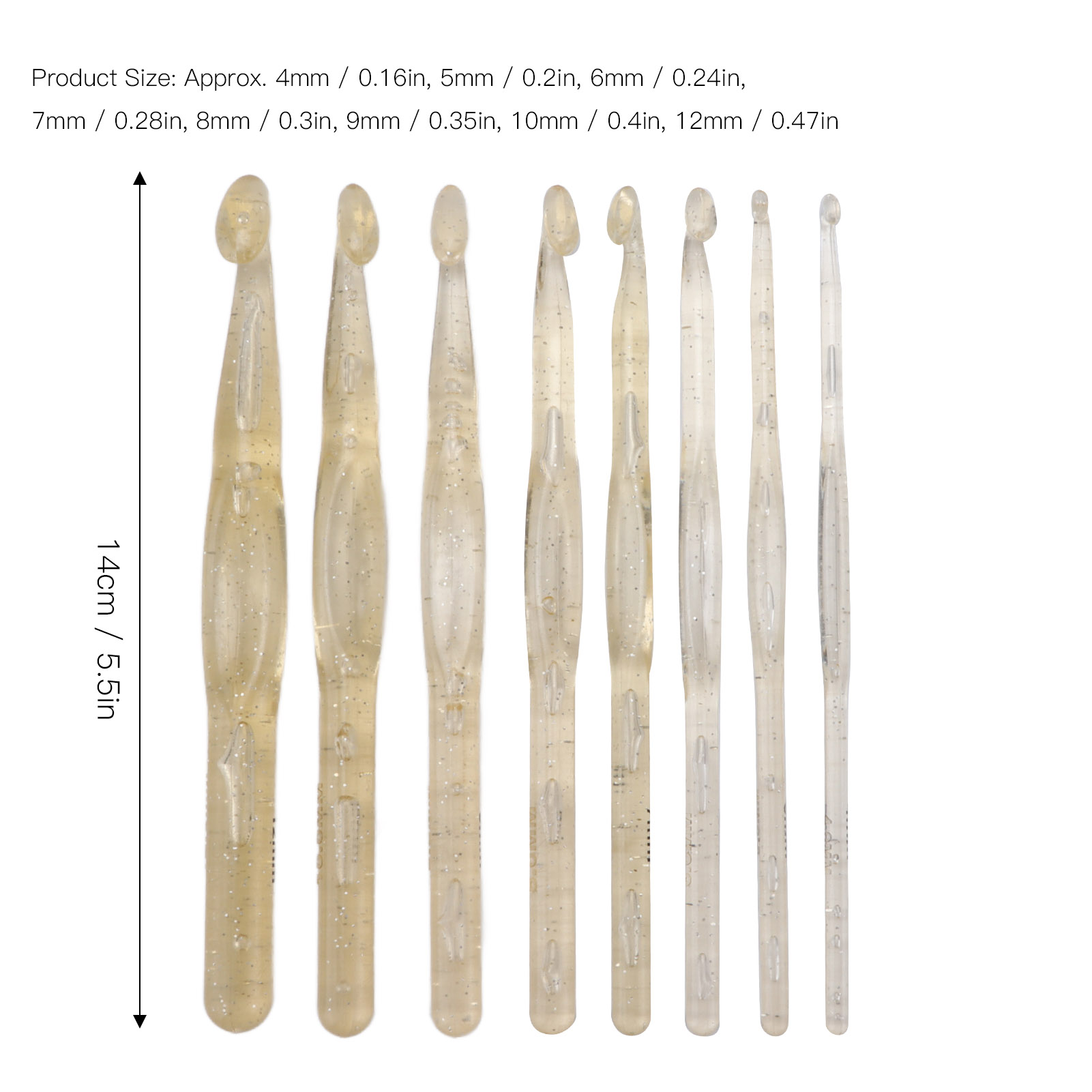 Product Size: Approx. 4mm / 0.16in, 5mm / 0.2in, 6mm / 0.24in, 7mm / 0.28in, 8mm / 0.3in, 9mm / 0.35in, 10mm / 0.4in, 12mm / 0.47in