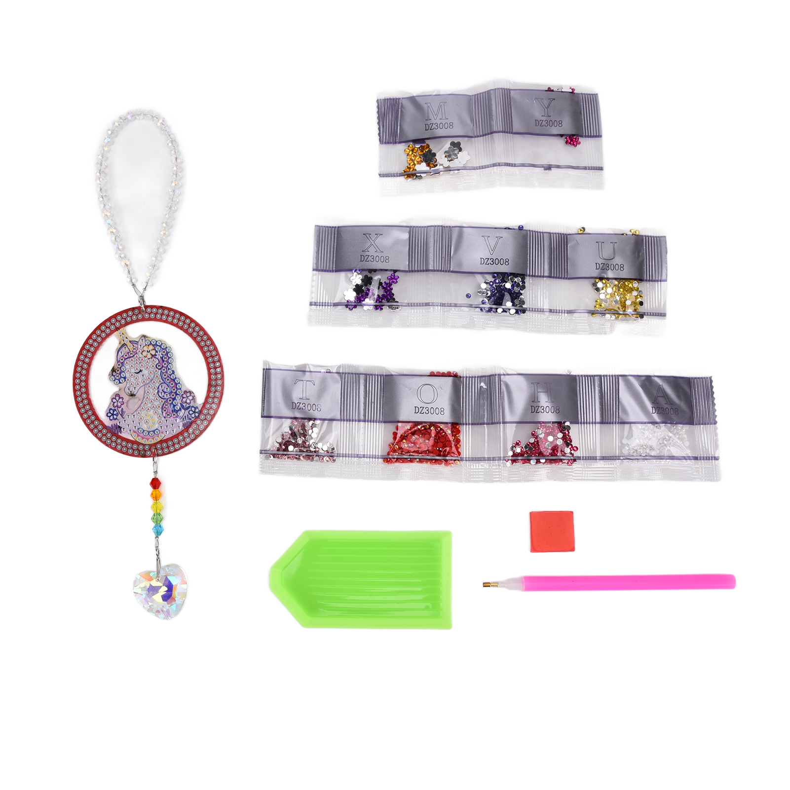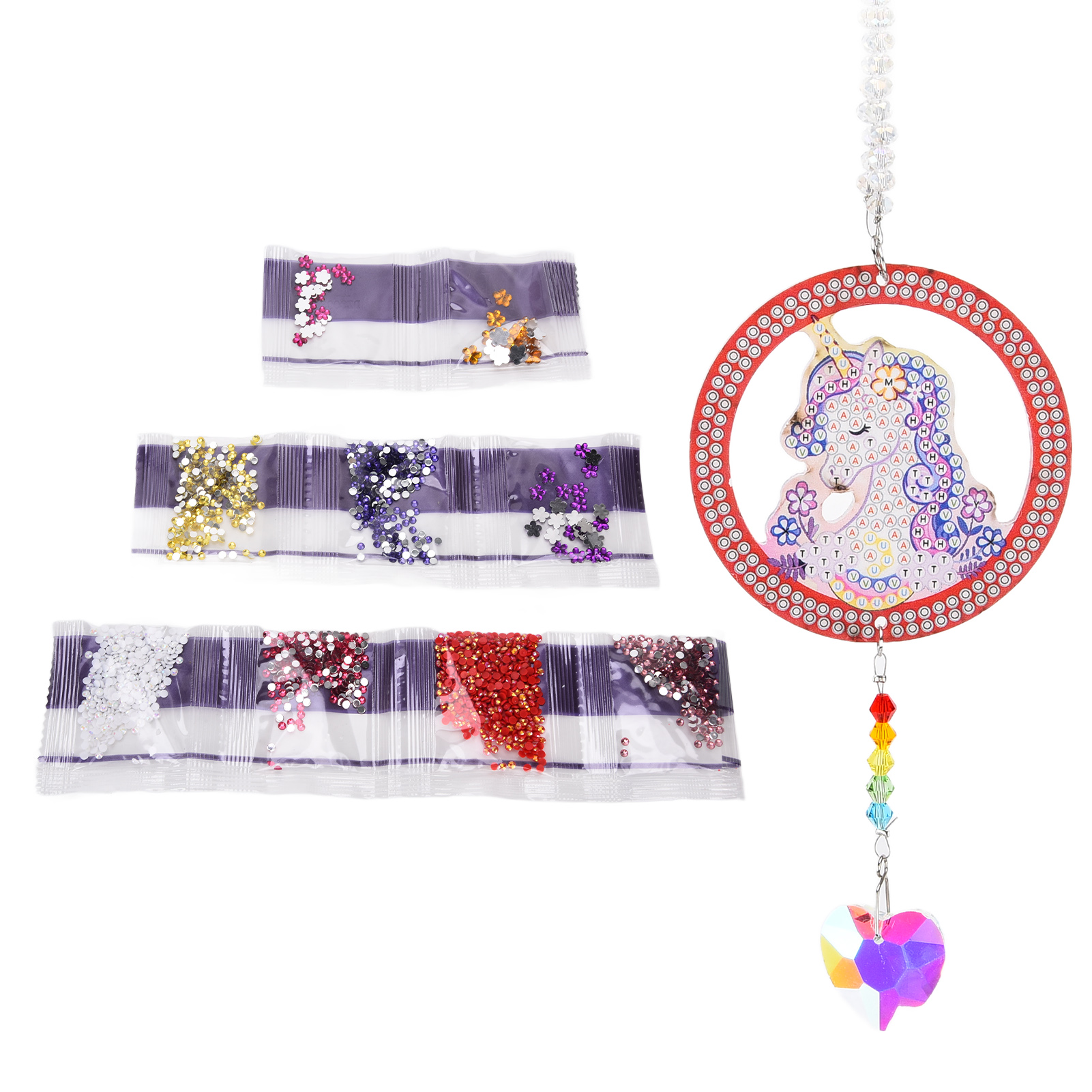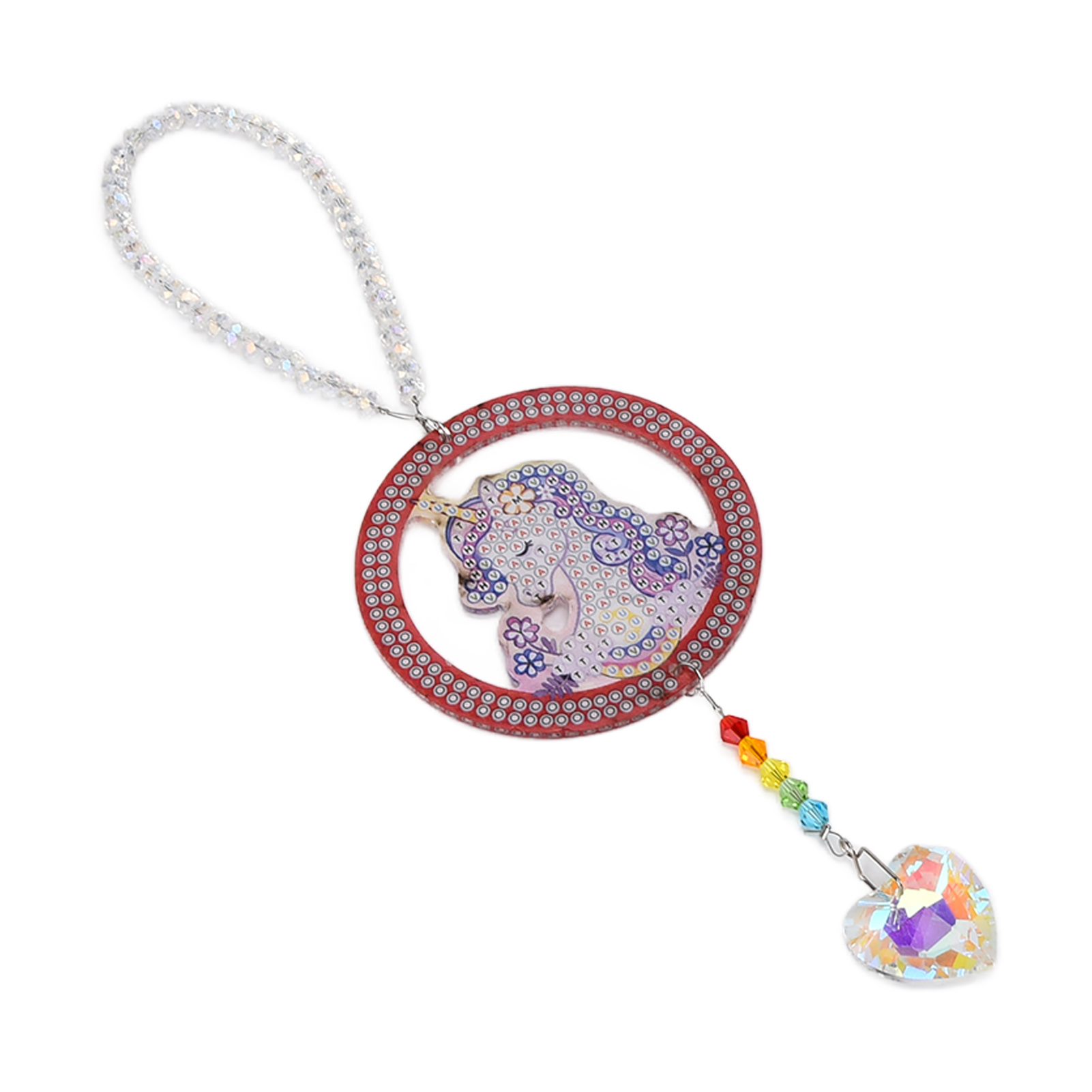 1、Beautiful Reflection: When the sun shines on the transparent crystal licorne , it will reflect beautiful light and produce very beautiful reflection light. 2、Exquisite Workmanship: This crystal pendant with rhinestone painting adopts exquisite workmanship and simple design, which is beautiful and fashionable. 3、Premium Material: This crystal pendant with rhinestone painting is made from premium acrylic and rhinestone material, which ensures high durability. 4、Ideal Decoration: This crystal pendant with rhinestone painting is an ideal decoration for colored glass window, car, chandelier and so on. 5、Perfect Gift: This crystal pendant with rhinestone painting is a perfect and ideal gift for your friends, family, loved ones for birthday, holiday, anniversary, etc.