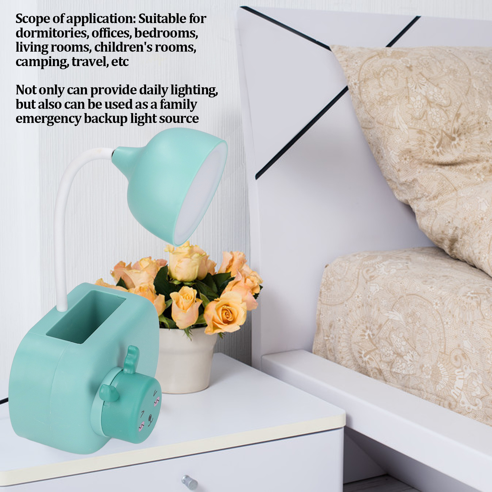 1、FLEXIBLE HOSE: The durable and flexible gooseneck hose of the LED table lamp can be bent at any angle to easily adjust the table lamp without making a harsh sound 2、FOLDABLE and PORTABLE: The LED table lamp is foldable for you to use anytime and anywhere, suitable for dormitories, offices, bedrooms, living rooms, children's rooms, camping, travel, etc 3、SAVING SPACE: The desk lamp can be used as a pen holder and a mobile phone holder to make your desktop more tidy and save your desktop space 4、USE with CONFIDENCE: The kids desk lamp can be used not only as daily lighting, but also as a household emergency light source, which can meet your daily needs 5、WIDELY APPLICABLE: Suitable for reading in dormitories and bedrooms, stylish and lovely appearance suitable for decoration
