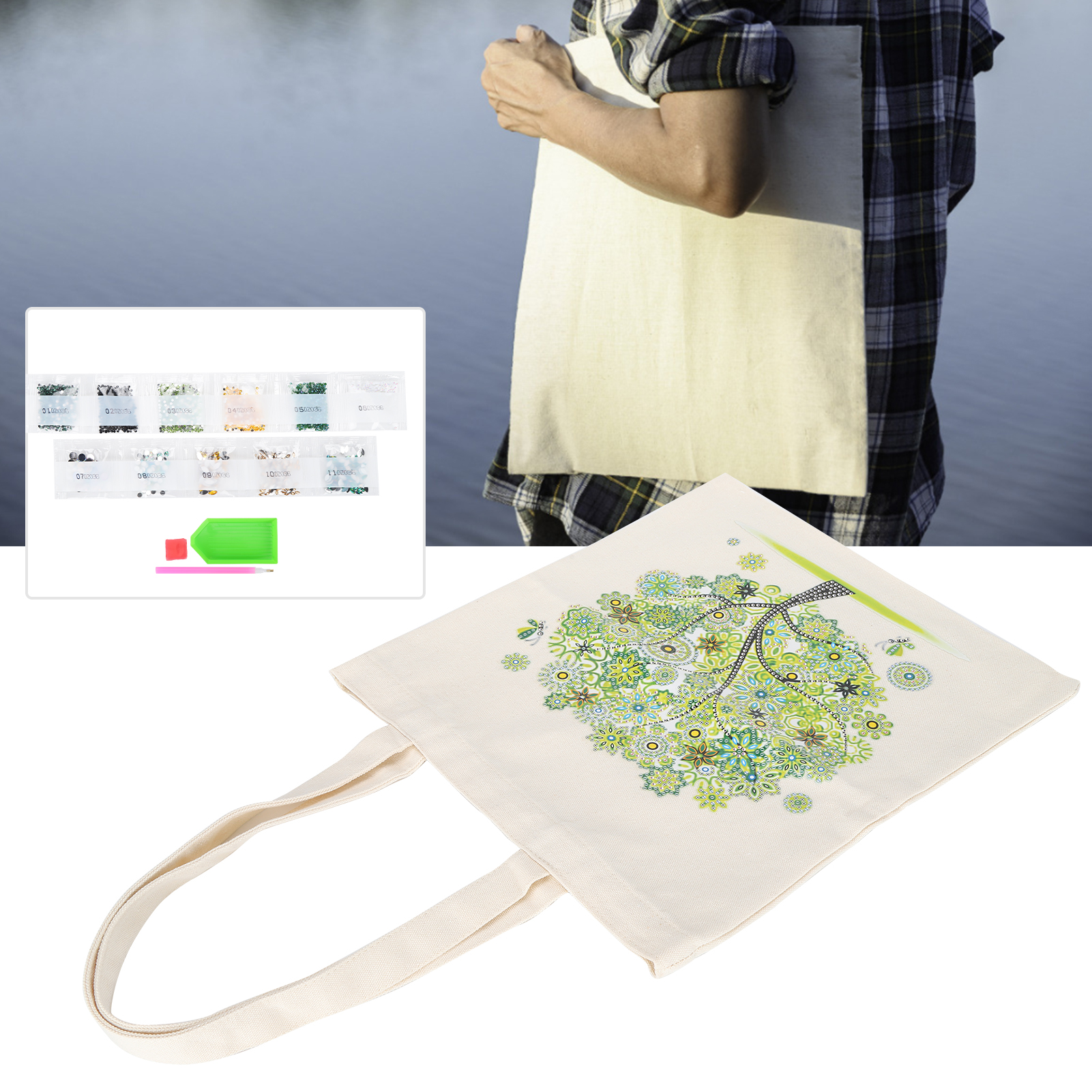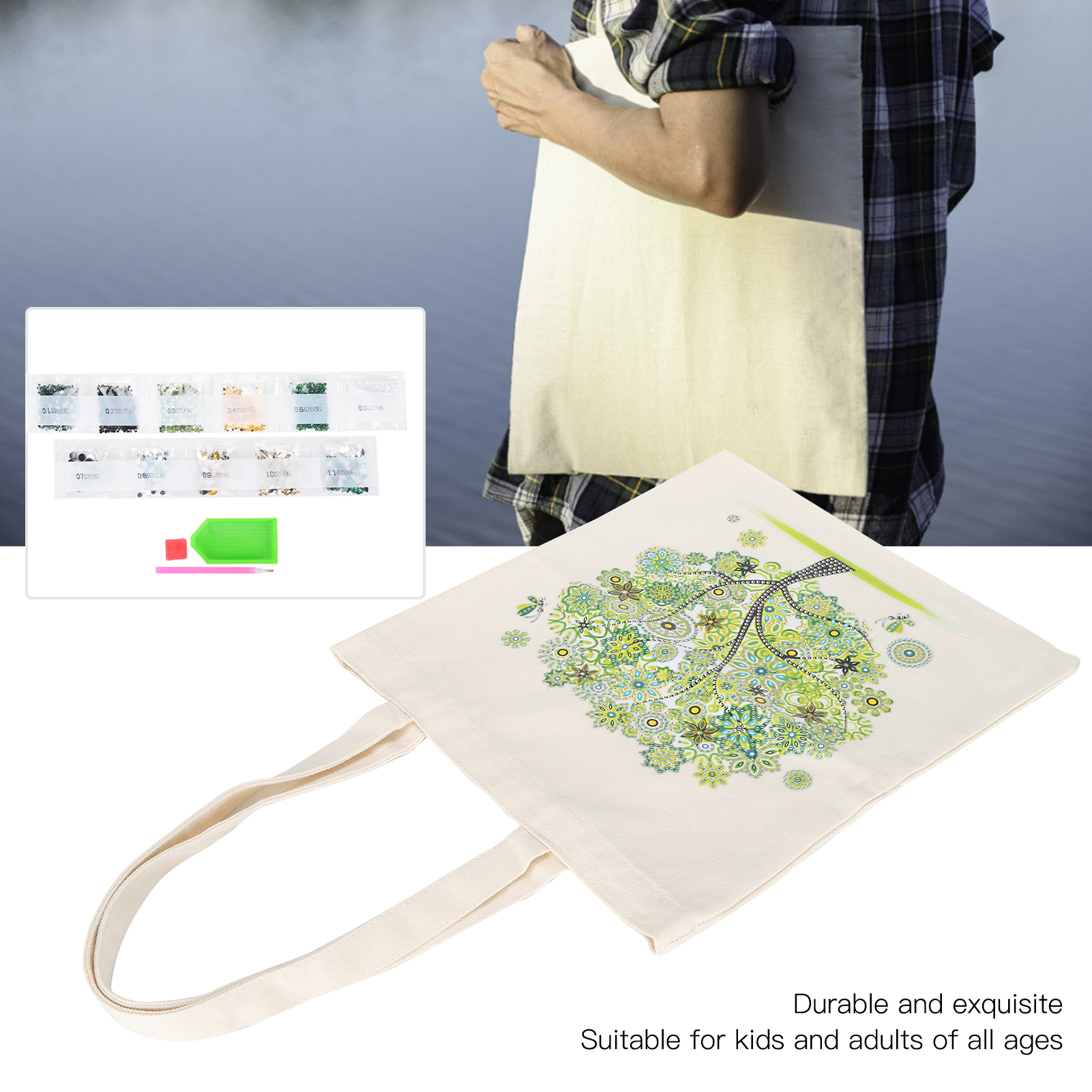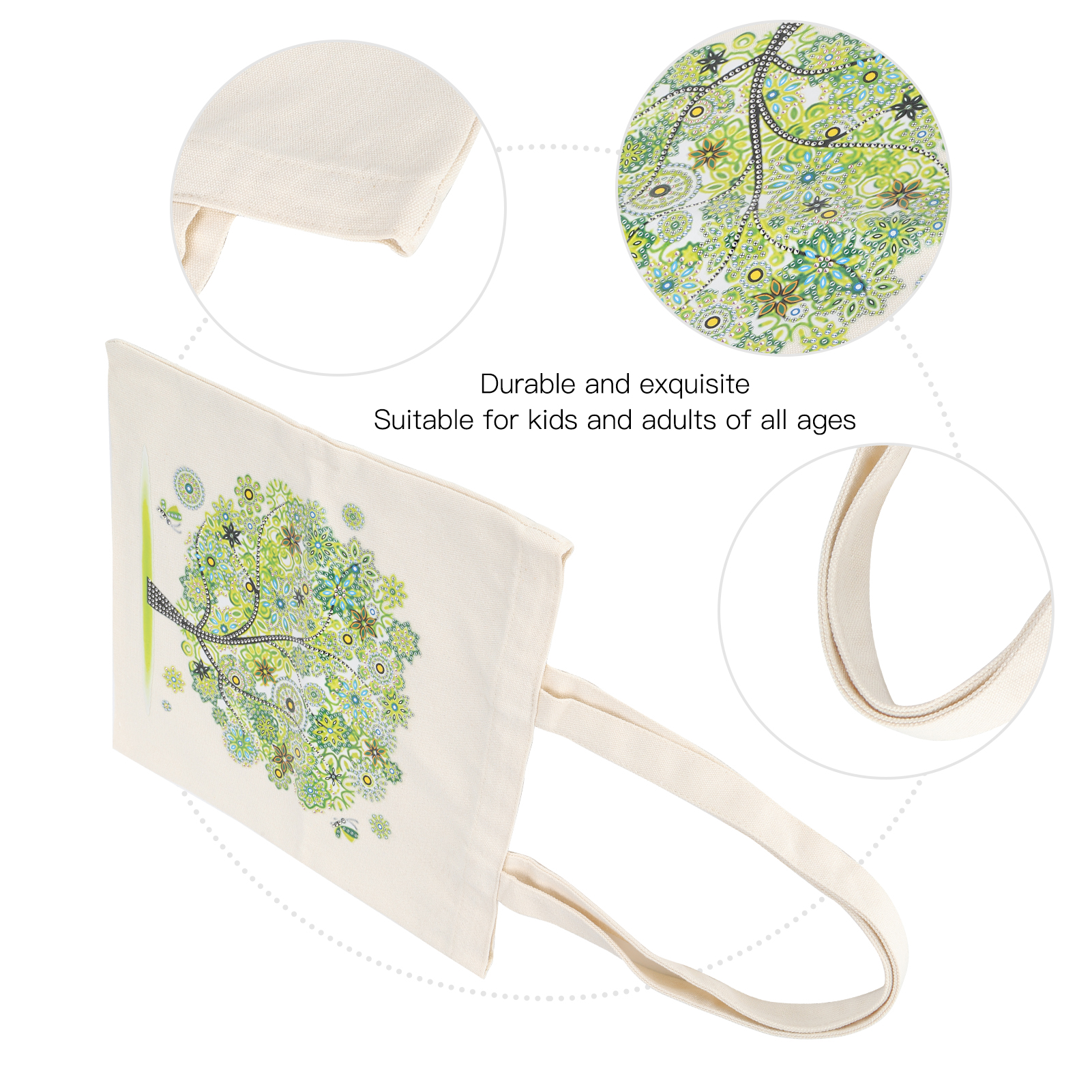 1、Combining cloth and diamond painting, you can also get a handbag while experiencing the diamond painting. 2、Equipped with rhinestones dotting pen/tray, clay and many other tools, meet your different needs. 3、Rhinestones are made of high quality material, non‑toxic and firm. Looks exquisite and beautiful. 4、Completing a DIY diamond painting is a process of constant adjustment and sharing happy time with family or friends. 5、Make the bag more exquisite, after completion, the bag can be used as a gift for family and friends.