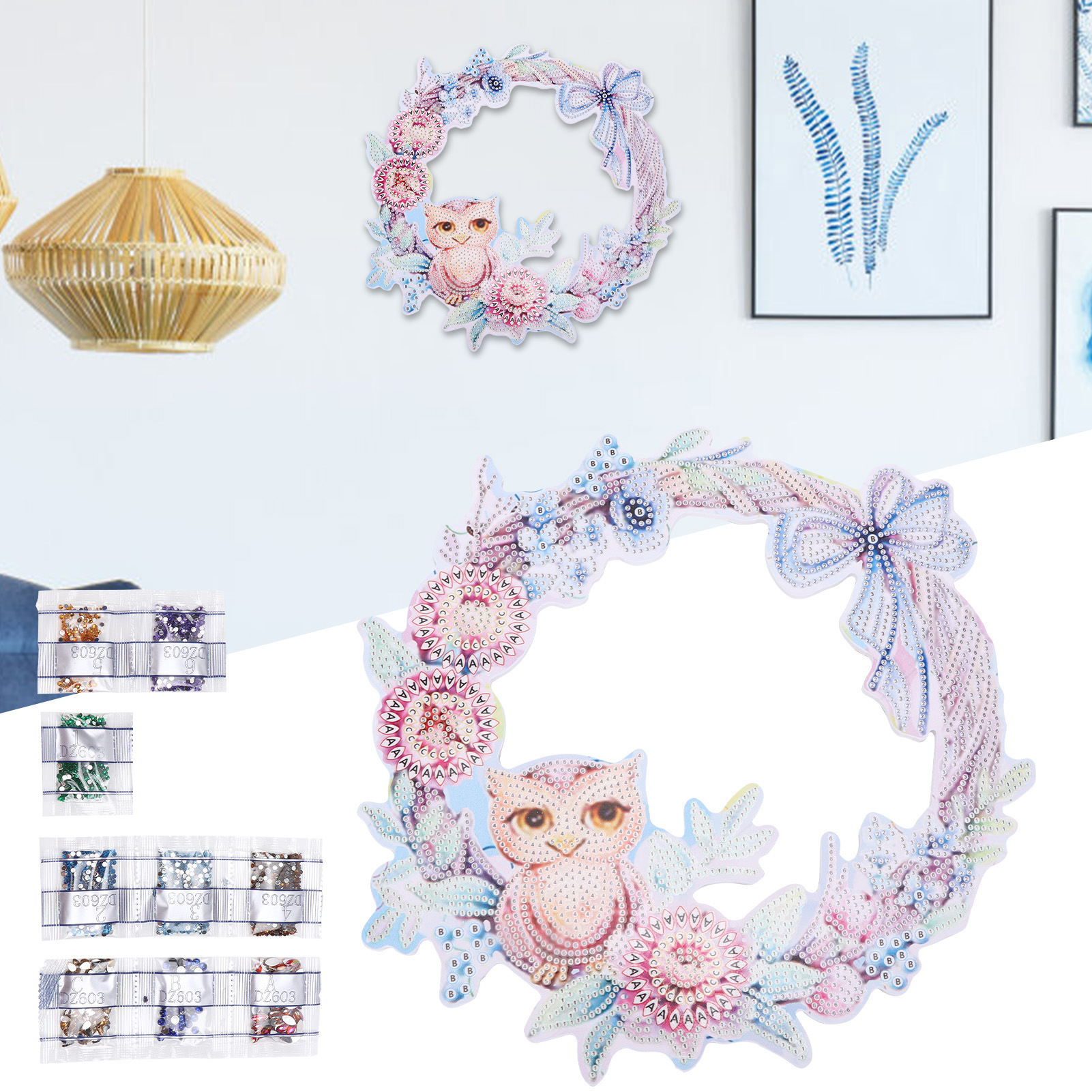 1、New 5D hand‑made rhinestones painting ornaments, beautiful appearance design, can be used for home decoration 2、The finished product can be hung in the living room, study, and bedroom to add an artistic feeling 3、During the production process, can improve children's hands‑on ability, coordination ability and enhance the perception of color 4、DIY rhinestone painting uses resin diamonds, dazzling luster, make your room more vivid 5、The kit is an ideal gift for friends and children on birthdays, Halloween, Christmas and other holidays