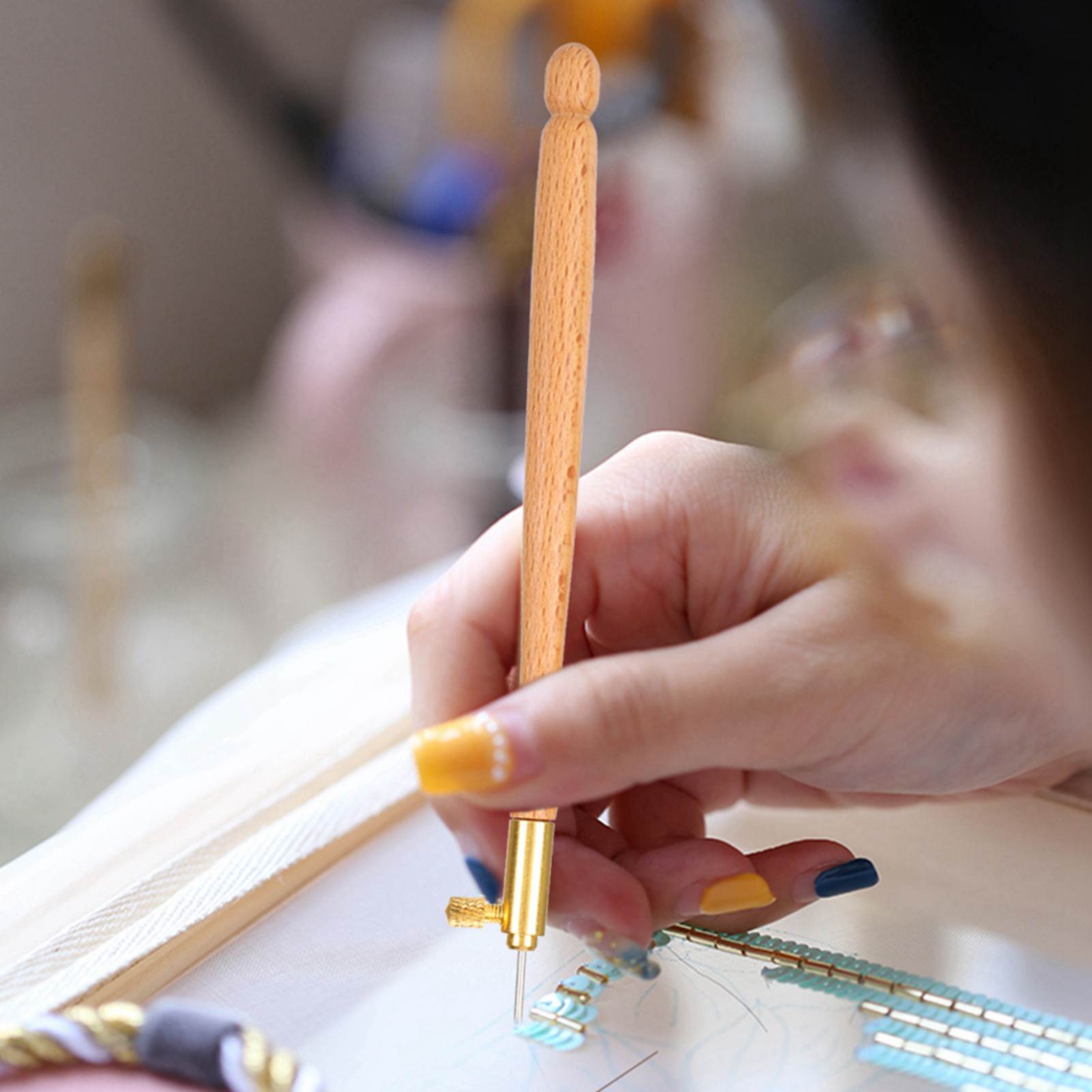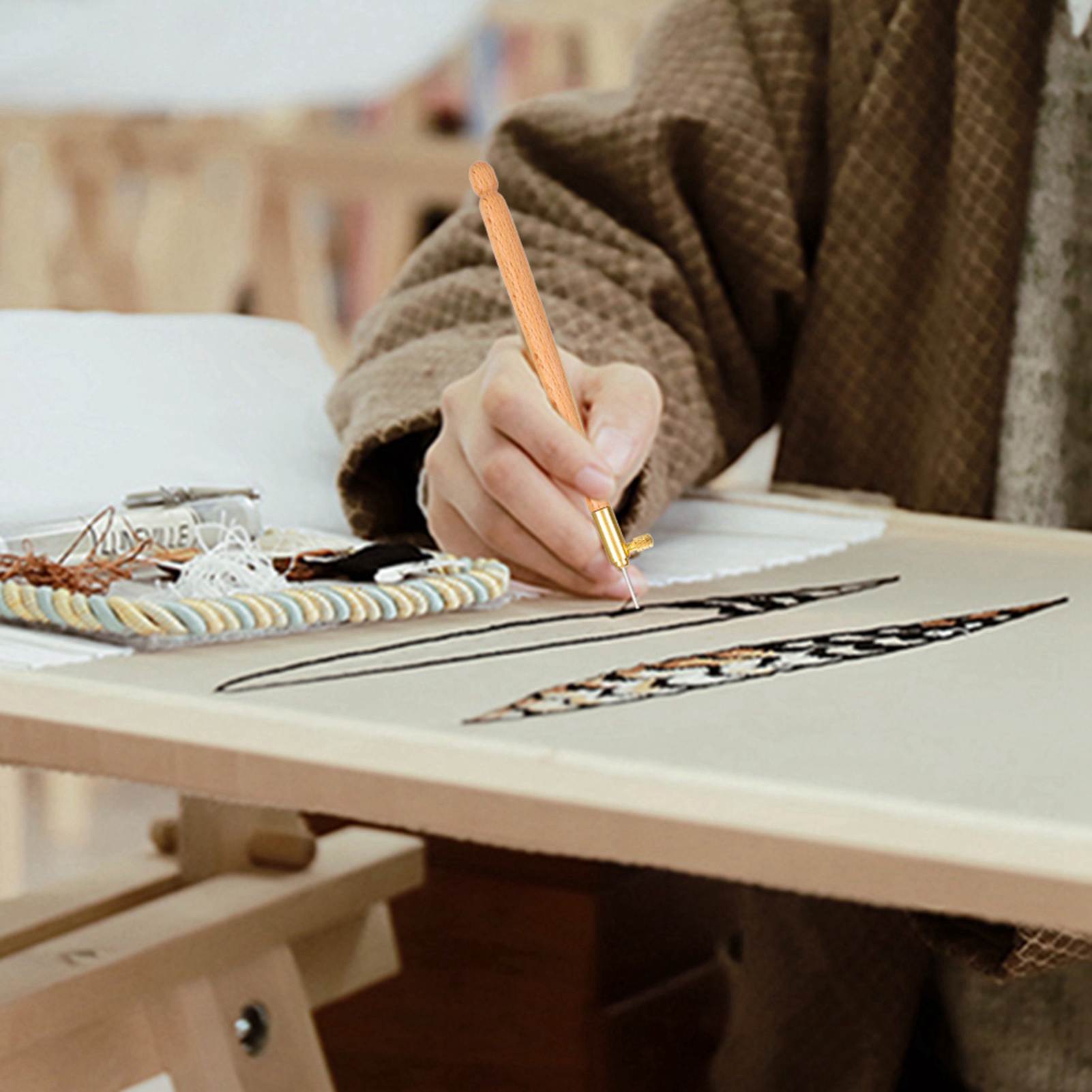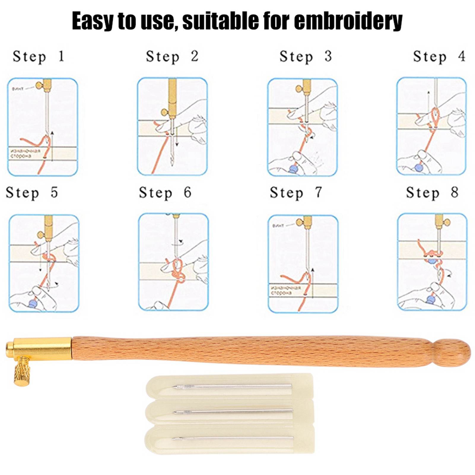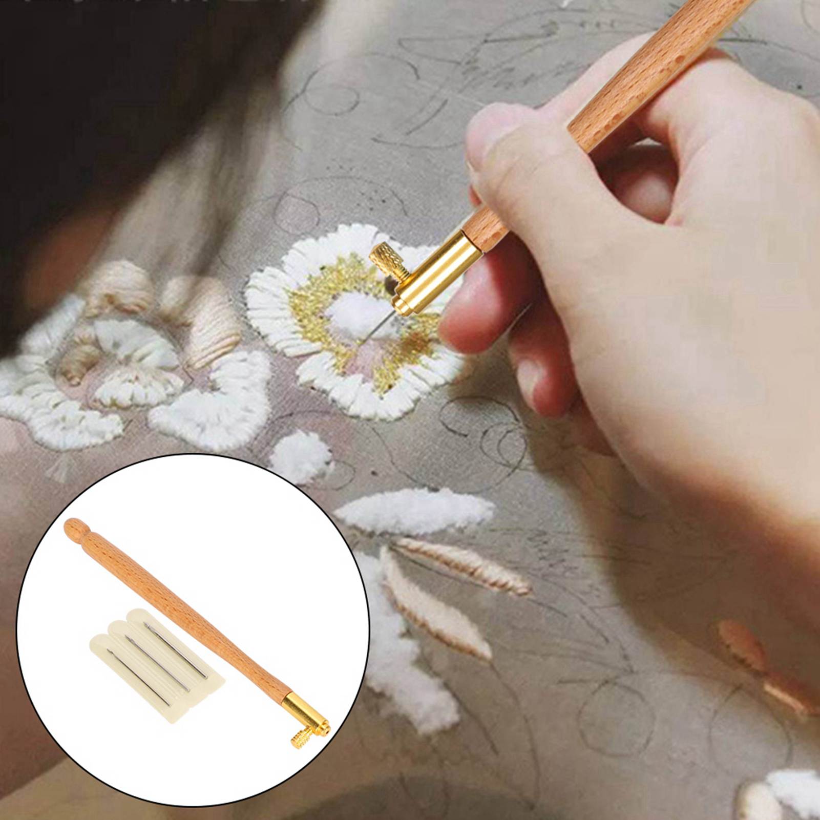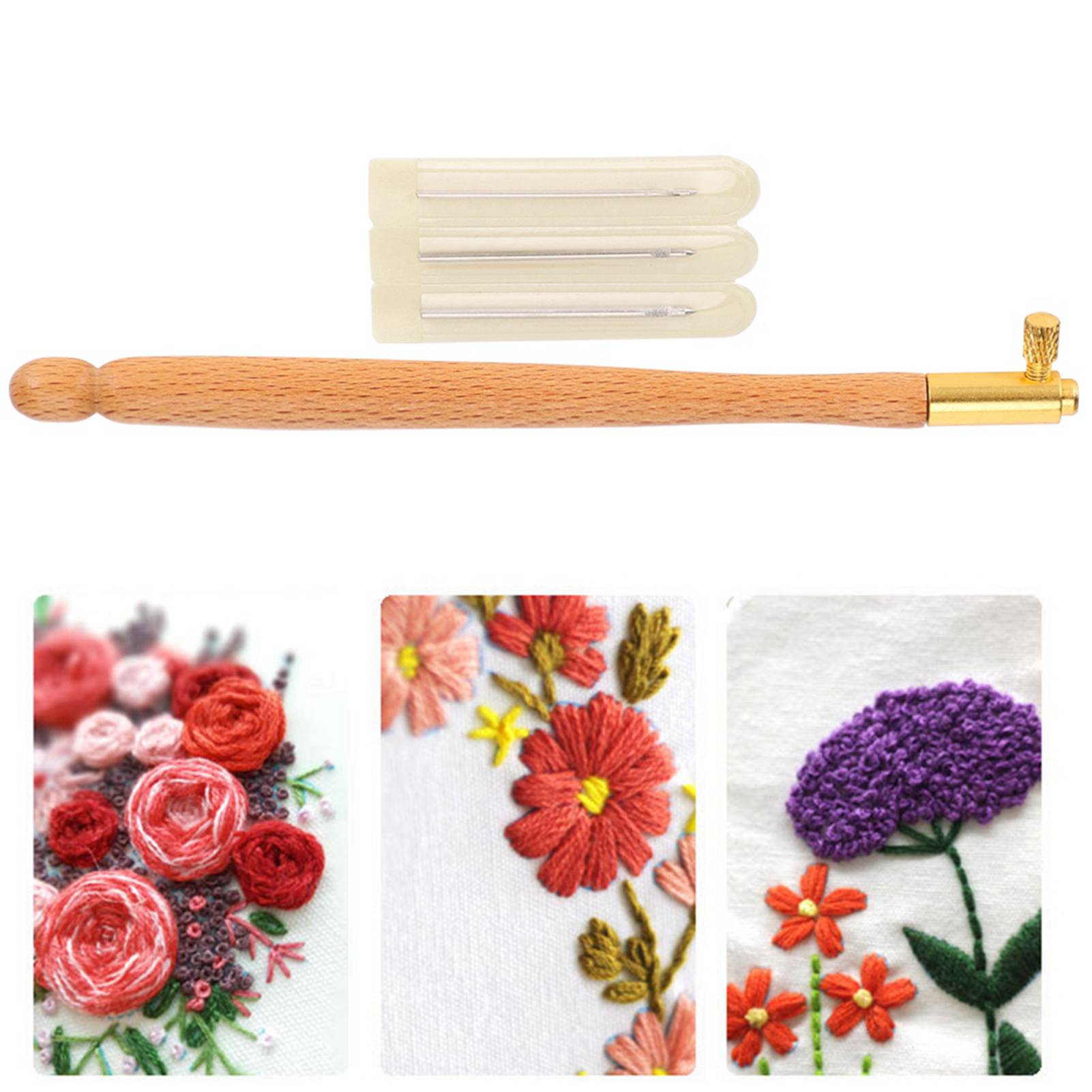 Embroidery Beading French AntiEmbroidering Tool Set DIY Craft Sewing Accessories(Wooden French Embroidery Needle )