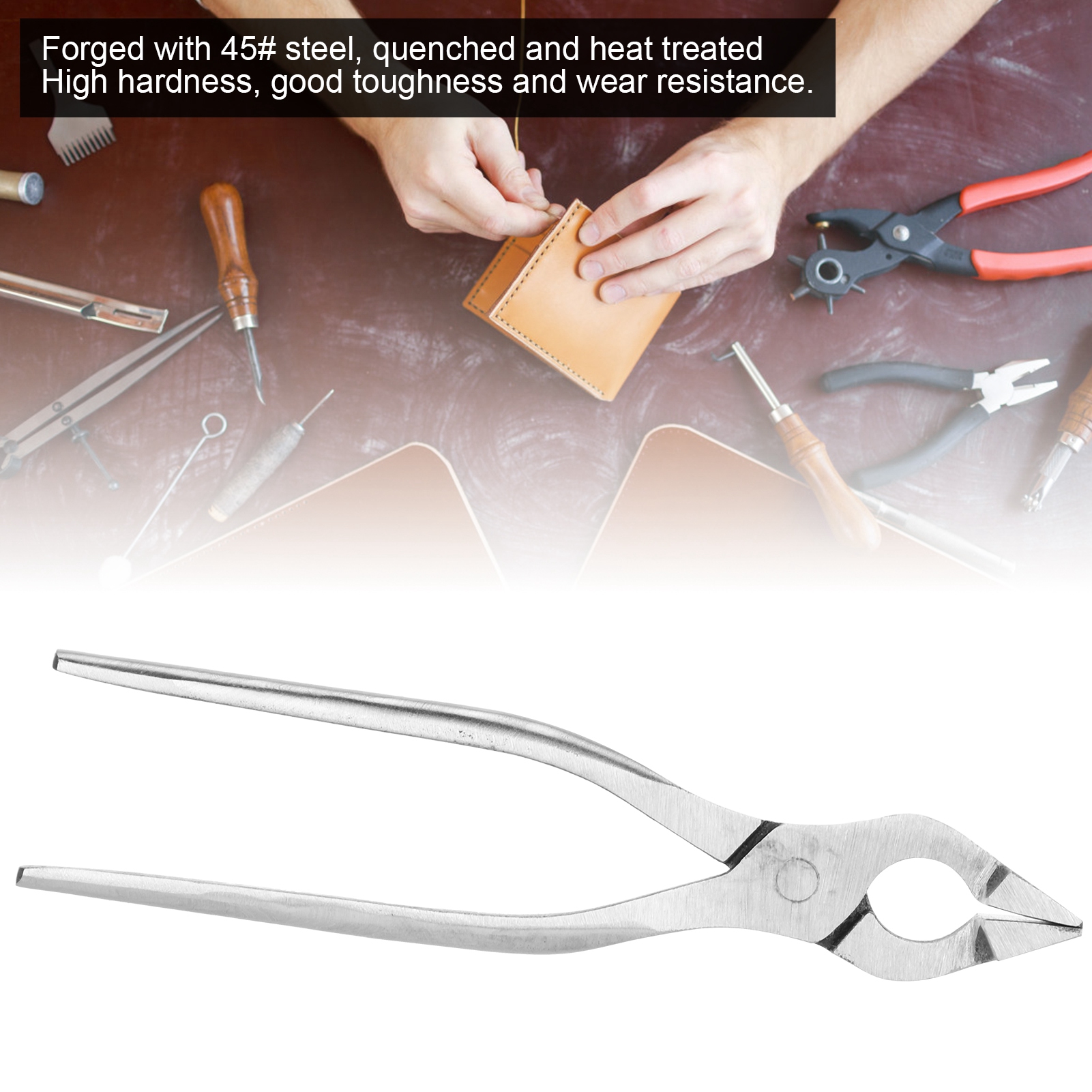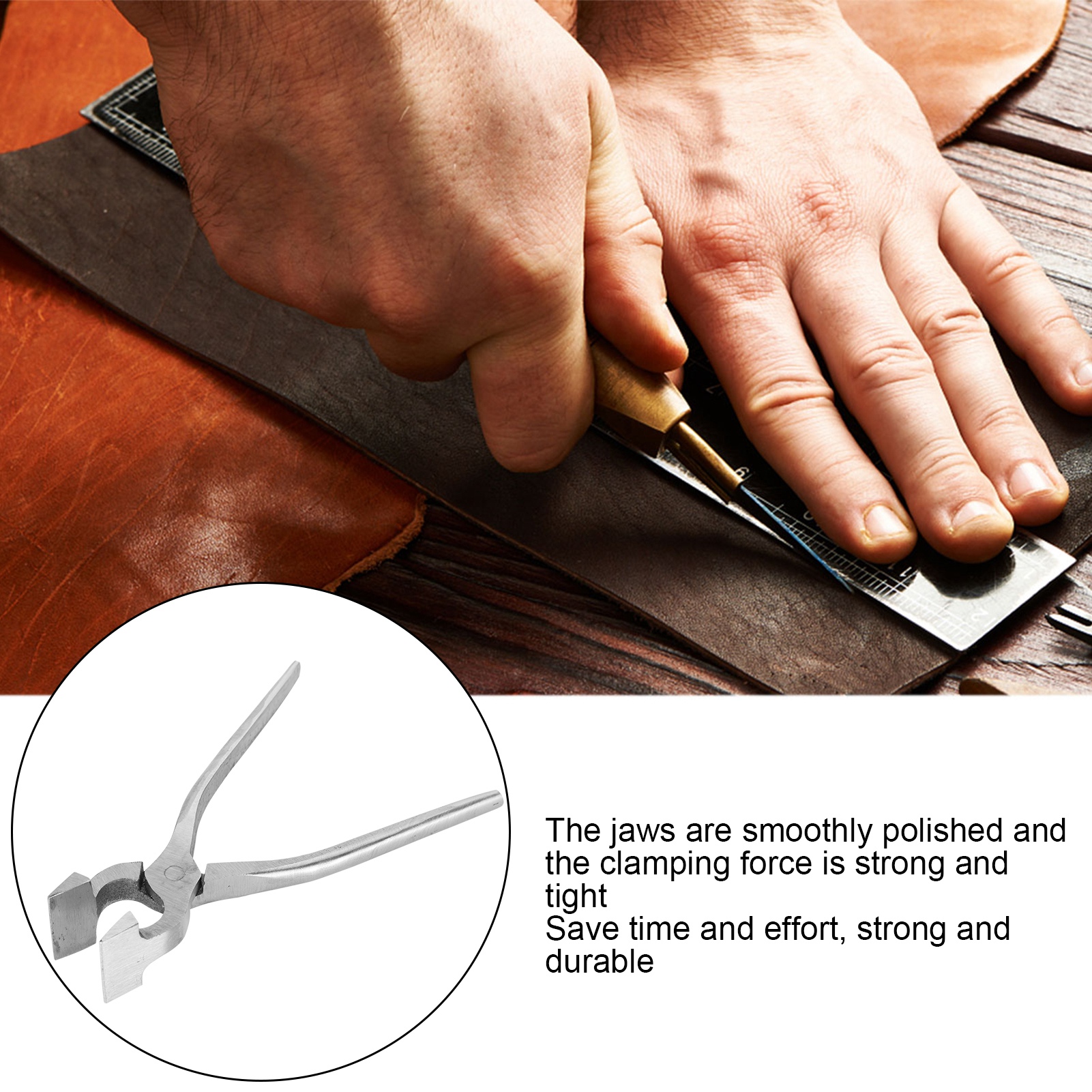 1、The pliers are forged with high-quality 45# steel, quenched and heat treated, with high hardness, good toughness and wear resistance. 2、The clamp head has been subjected to special high‑frequency heat treatment with high hardness, long life and strong bite force. 3、The jaws are smoothly ground, strong clamping force, time‑saving and labor‑saving, strong and durable. 4、Suitable for leather products such as wallets, handbags, computer bags, etc. 5、Easy to use and safe, it is a must‑have choice for DIY leather craft enthusiasts.