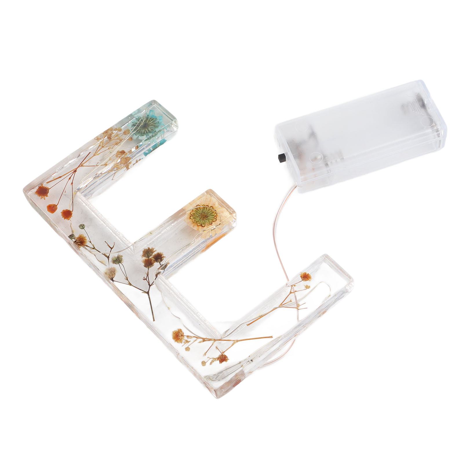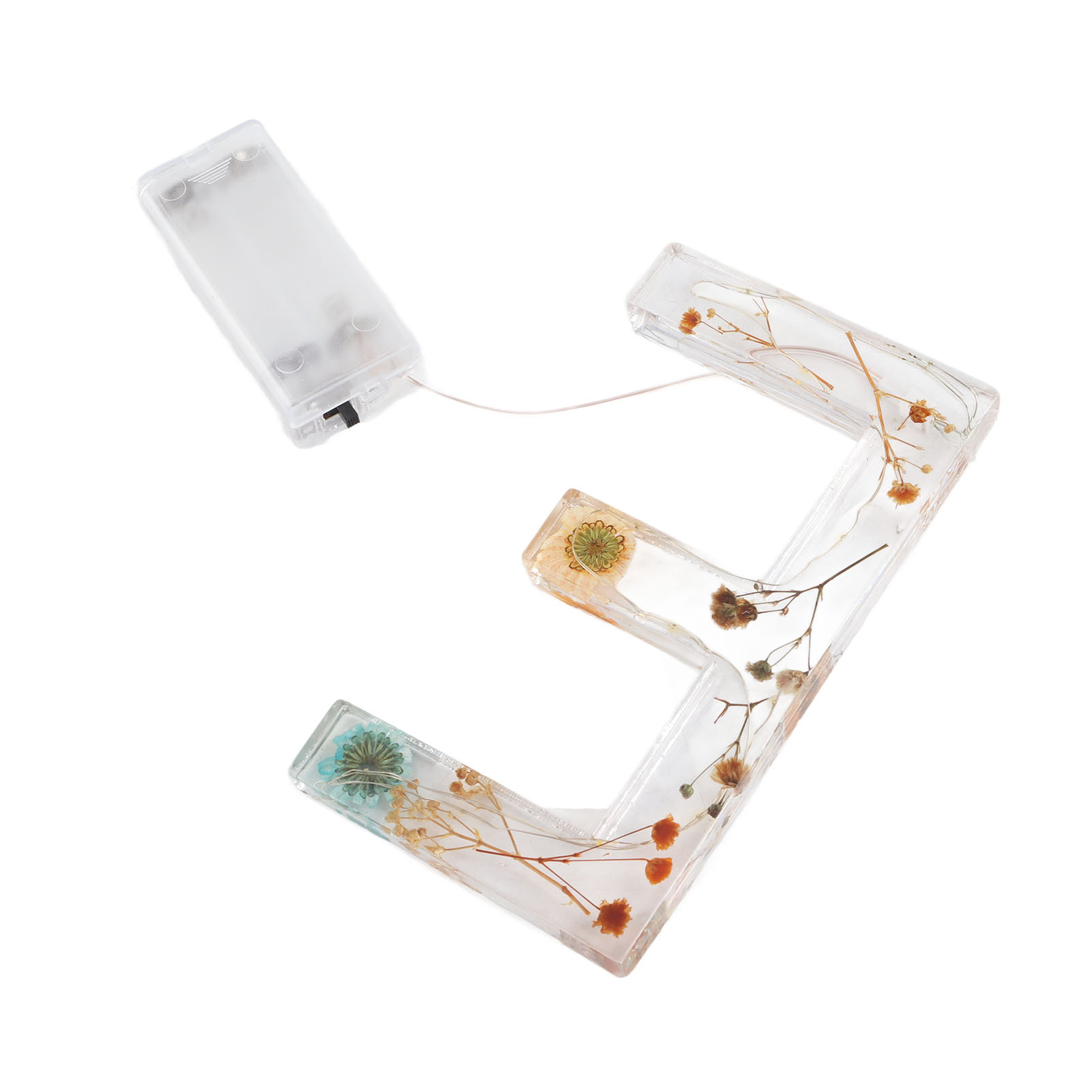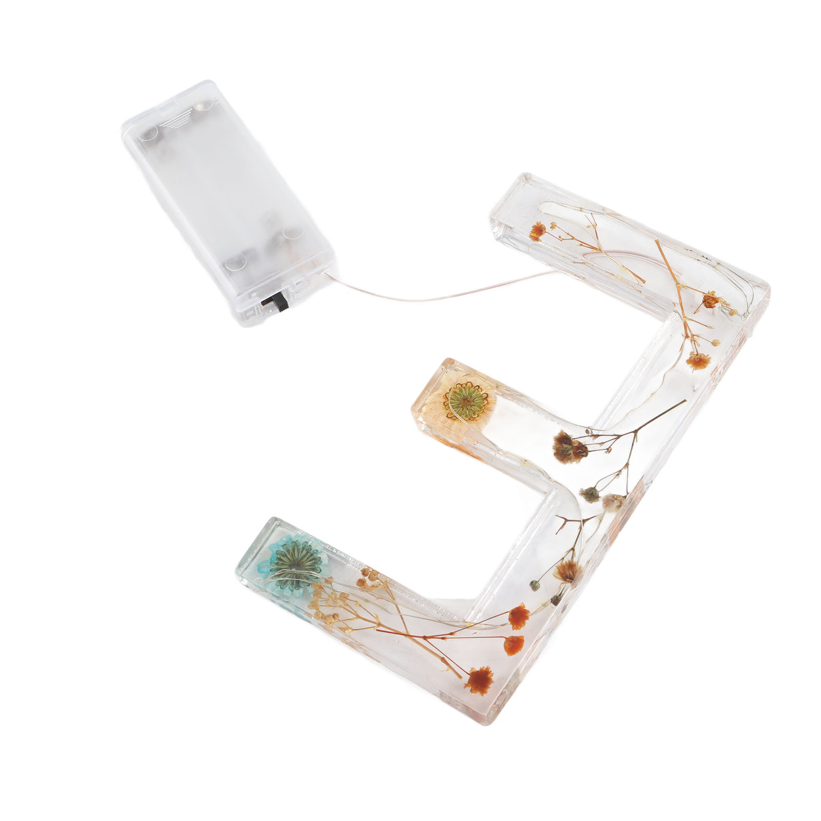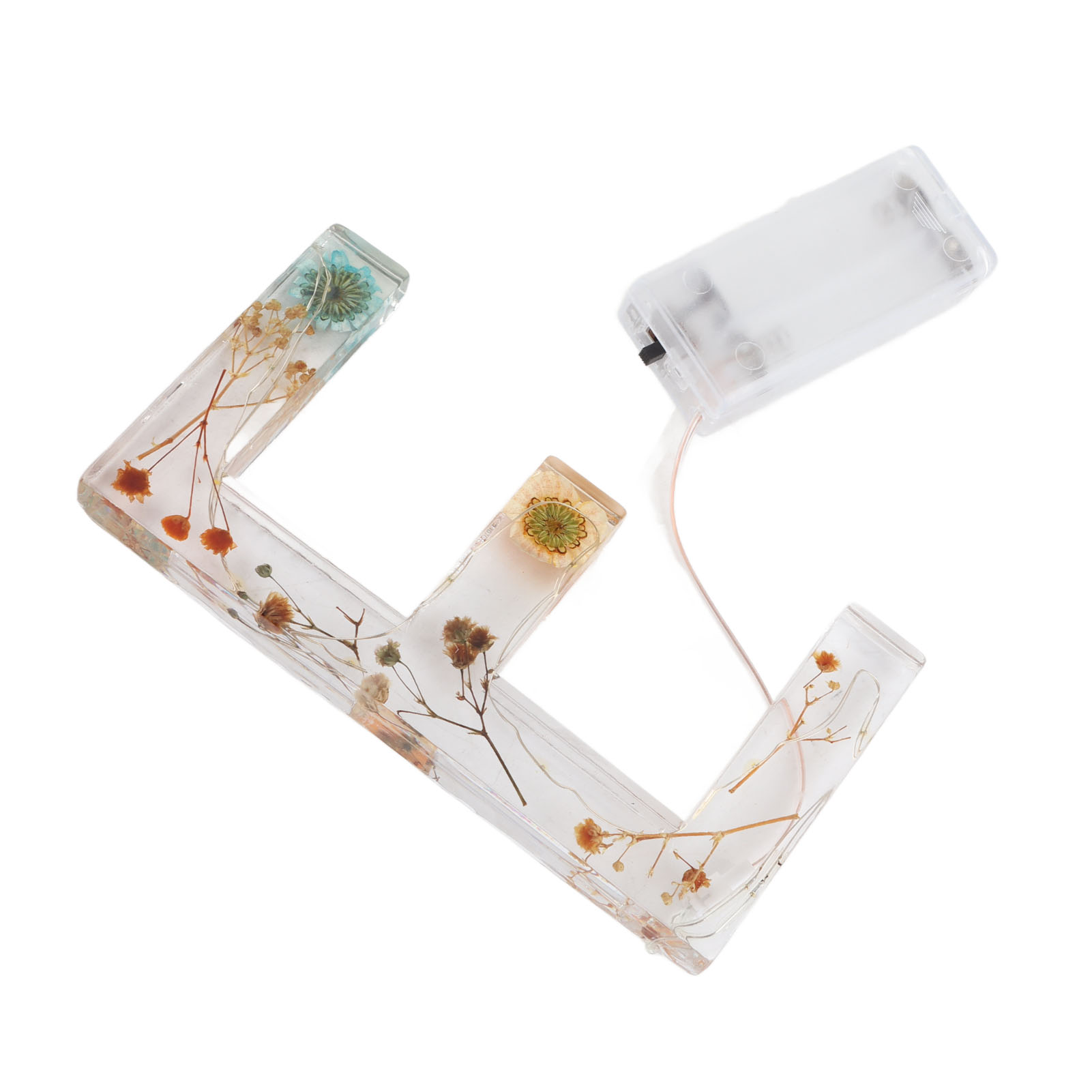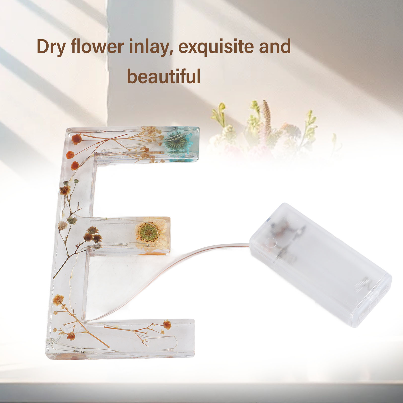1、Floral Resin Letter Light: Create personalized decoration with your favorite letter. Each night light is carefully crafted, with alphabet shape, whether it is the initial of your loved or a special symbol. 2、Dry Flower Decor: Exquisite dry flowers embedded in resin, preserving their beauty and creating a captivating visual effect when illuminated. Each flower color, shape, and texture are carefully selected. 3、Good Decoration: The enchanting lighting of our floral resin light illuminates your space, with dry flowers encapsulated in translucent resin, making it a perfect gift choice or unique decor piece. 4、Comfortable Lighting: Integrated LED light emits a soft and warm light, creating a calm lighting ambiance in any space. Perfect for bedrooms, nurseries, or as a unique addition to your living room decor. 5、Applicable Scenes: This dry flower resin light is ideal for home decoration, holiday party, gift making. Perfect for creating ambiance at weddings, Christmas, New Year, birthdays, festivals, room decor, and more.