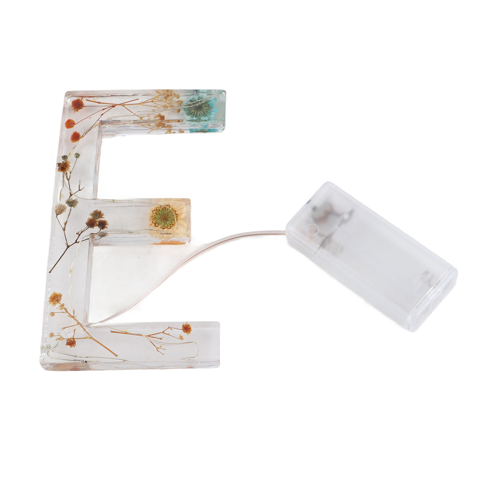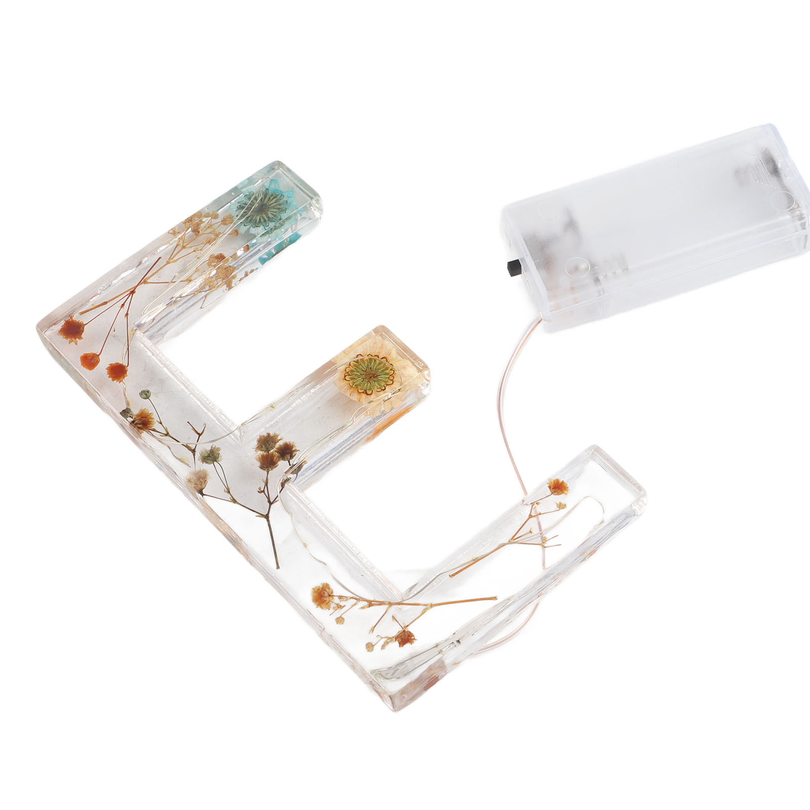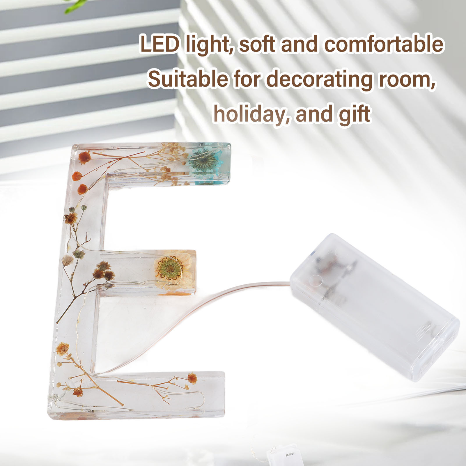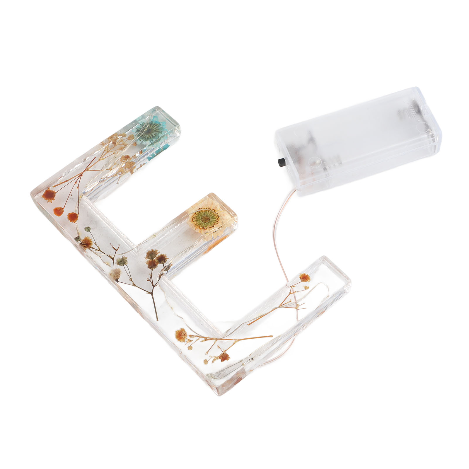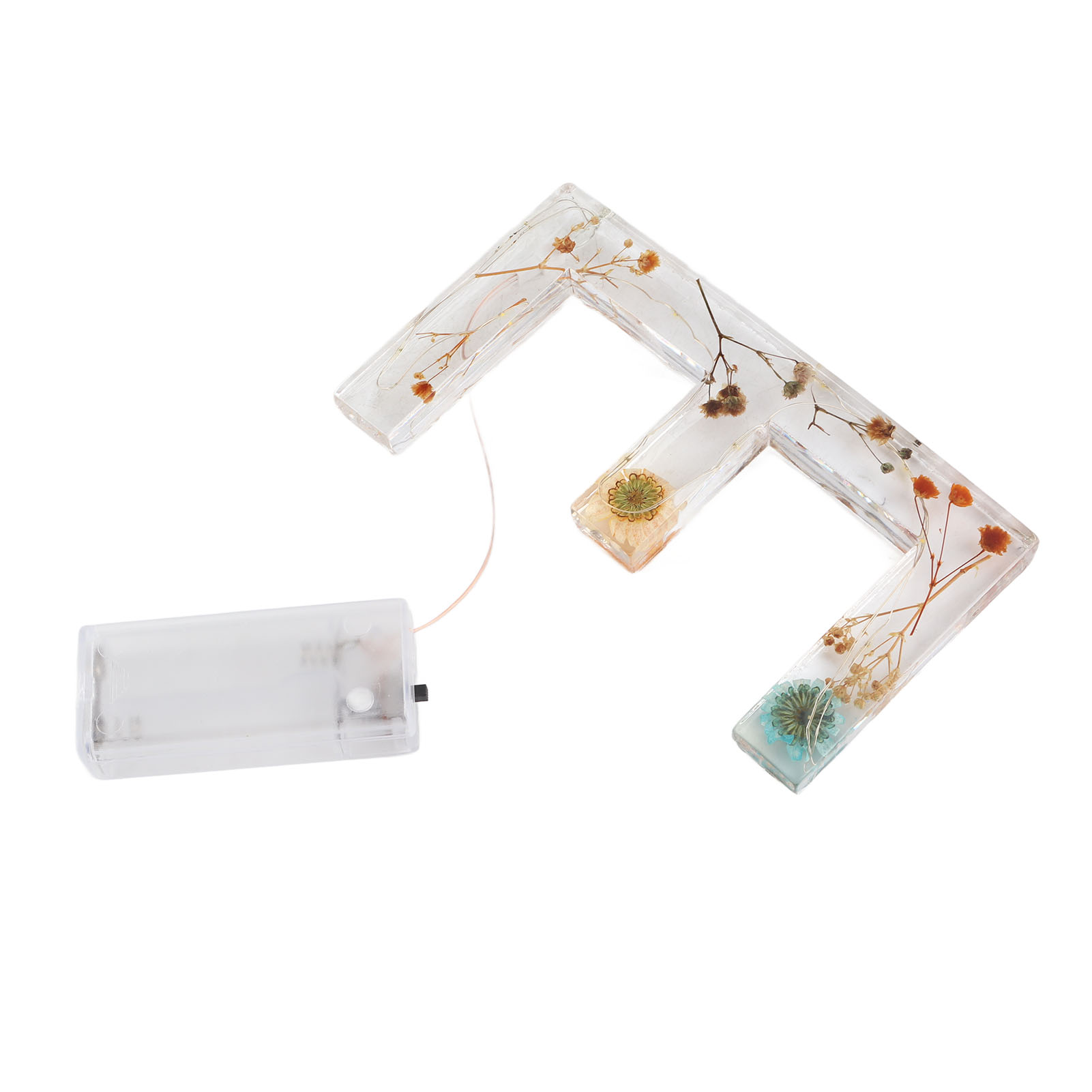 1、Floral Resin Letter Light: Create personalized decoration with your favorite letter. Each night light is carefully crafted, with alphabet shape, whether it is the initial of your loved or a special symbol. 2、Dry Flower Decor: Exquisite dry flowers embedded in resin, preserving their beauty and creating a captivating visual effect when illuminated. Each flower color, shape, and texture are carefully selected. 3、Good Decoration: The enchanting lighting of our floral resin light illuminates your space, with dry flowers encapsulated in translucent resin, making it a perfect gift choice or unique decor piece. 4、Comfortable Lighting: Integrated LED light emits a soft and warm light, creating a calm lighting ambiance in any space. Perfect for bedrooms, nurseries, or as a unique addition to your living room decor. 5、Applicable Scenes: This dry flower resin light is ideal for home decoration, holiday party, gift making. Perfect for creating ambiance at weddings, Christmas, New Year, birthdays, festivals, room decor, and more.