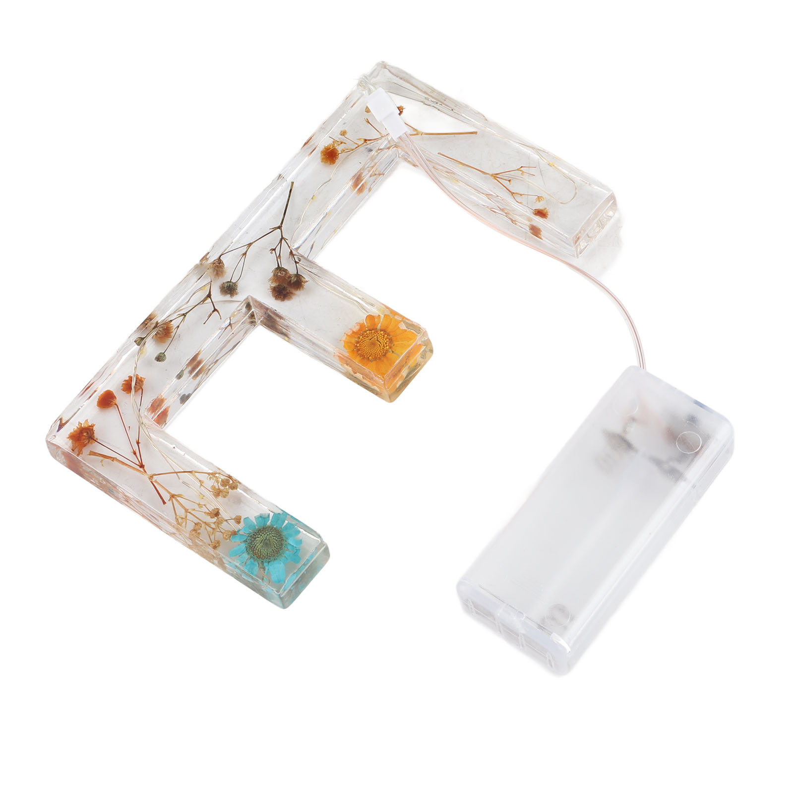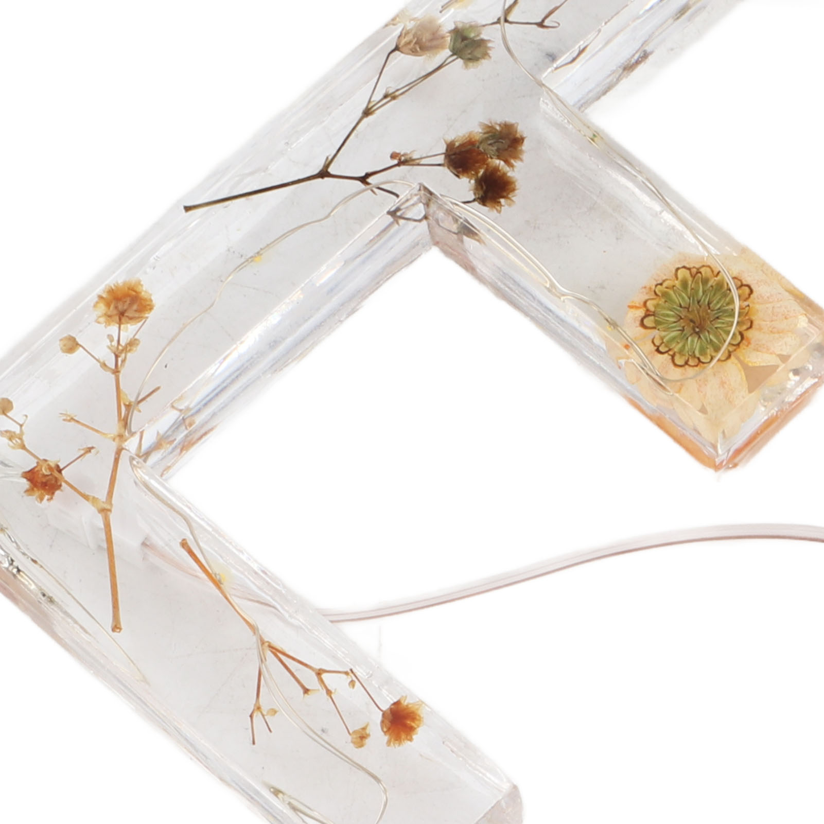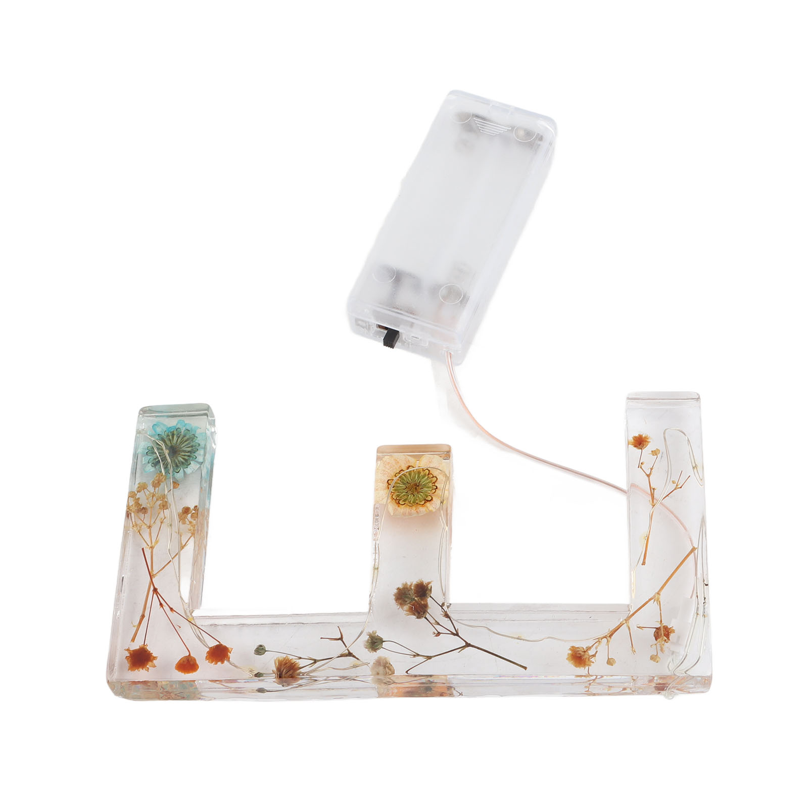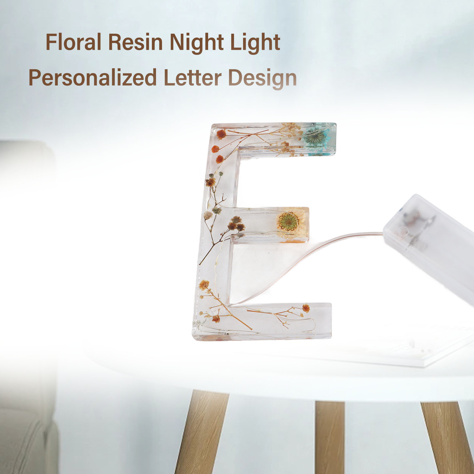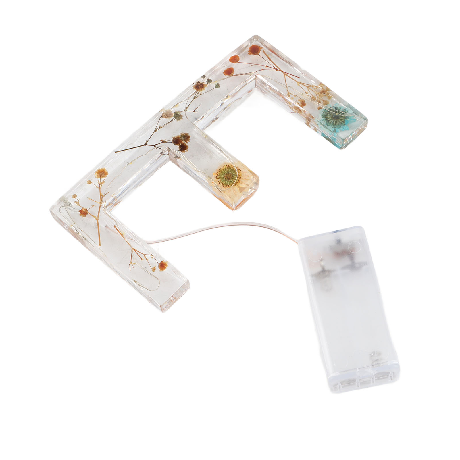 1、Floral Resin Letter Light: Create personalized decoration with your favorite letter. Each night light is carefully crafted, with alphabet shape, whether it is the initial of your loved or a special symbol. 2、Dry Flower Decor: Exquisite dry flowers embedded in resin, preserving their beauty and creating a captivating visual effect when illuminated. Each flower color, shape, and texture are carefully selected. 3、Good Decoration: The enchanting lighting of our floral resin light illuminates your space, with dry flowers encapsulated in translucent resin, making it a perfect gift choice or unique decor piece. 4、Comfortable Lighting: Integrated LED light emits a soft and warm light, creating a calm lighting ambiance in any space. Perfect for bedrooms, nurseries, or as a unique addition to your living room decor. 5、Applicable Scenes: This dry flower resin light is ideal for home decoration, holiday party, gift making. Perfect for creating ambiance at weddings, Christmas, New Year, birthdays, festivals, room decor, and more.