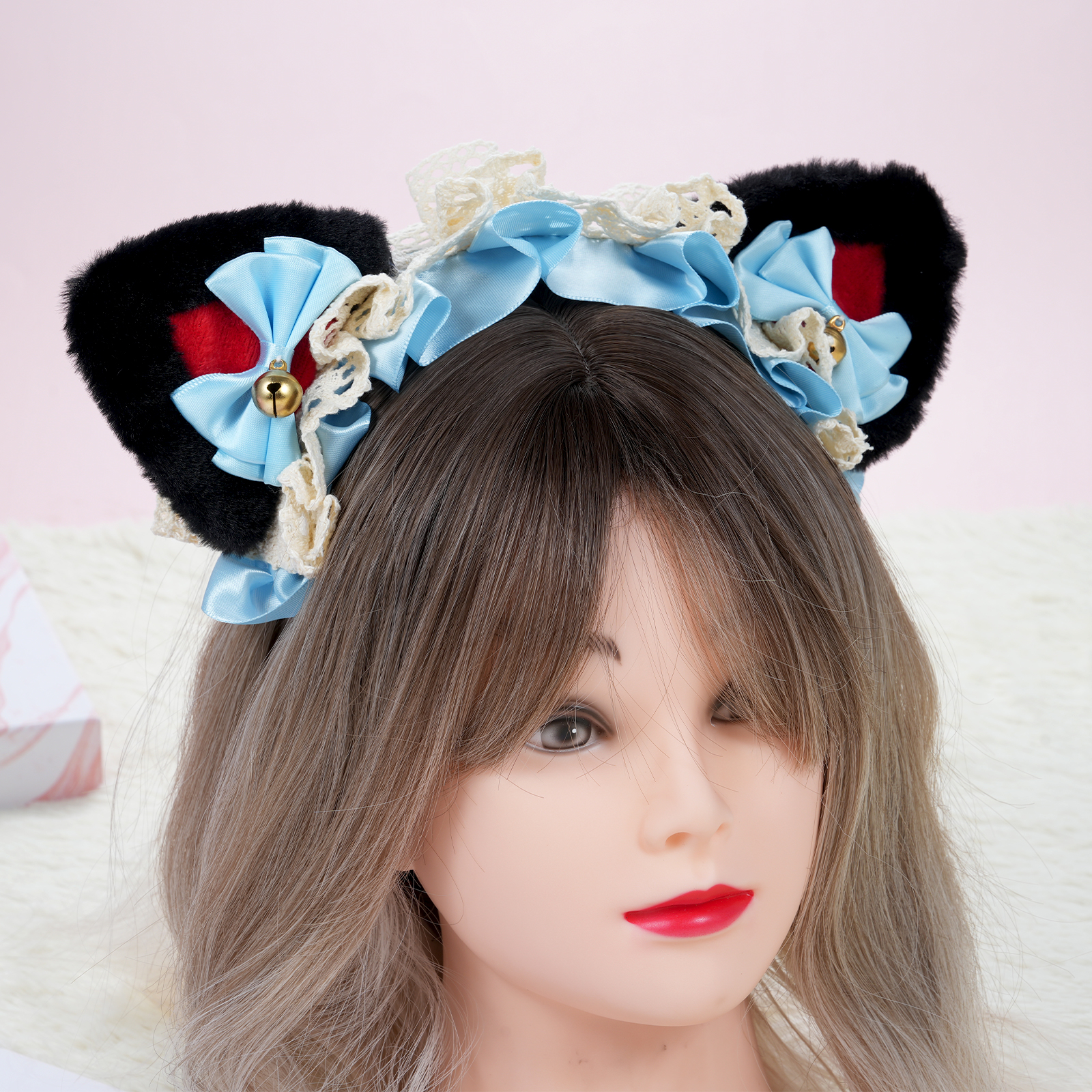 Fluffy Cat Ears Headdress Ribbon Headband Cute Hair Ornament Hair Accessory Lace Cat Ears Hairband for Girls and Women