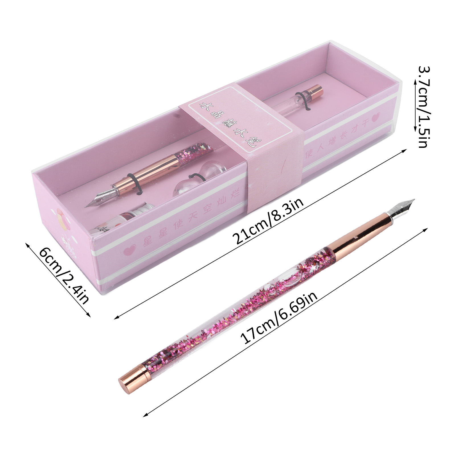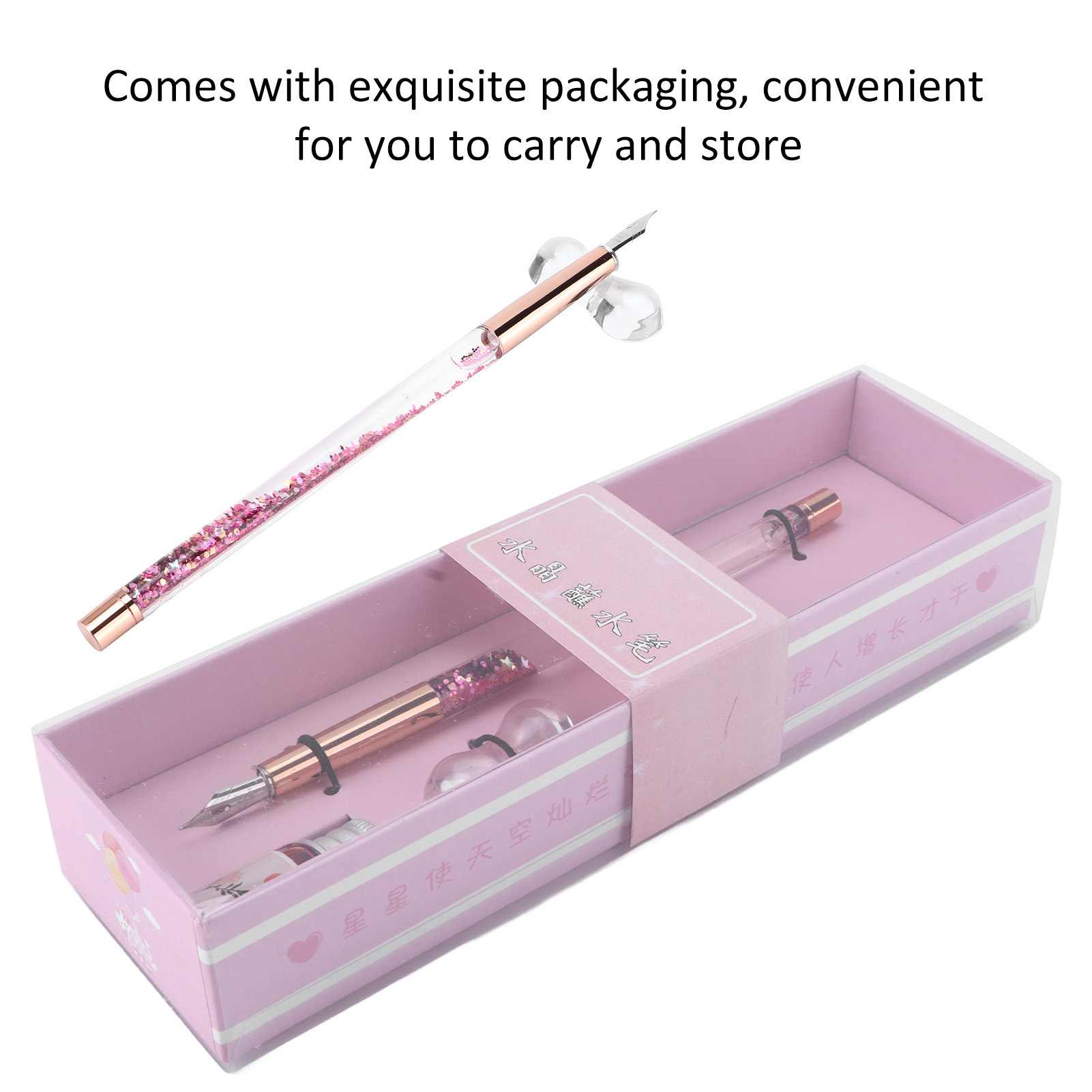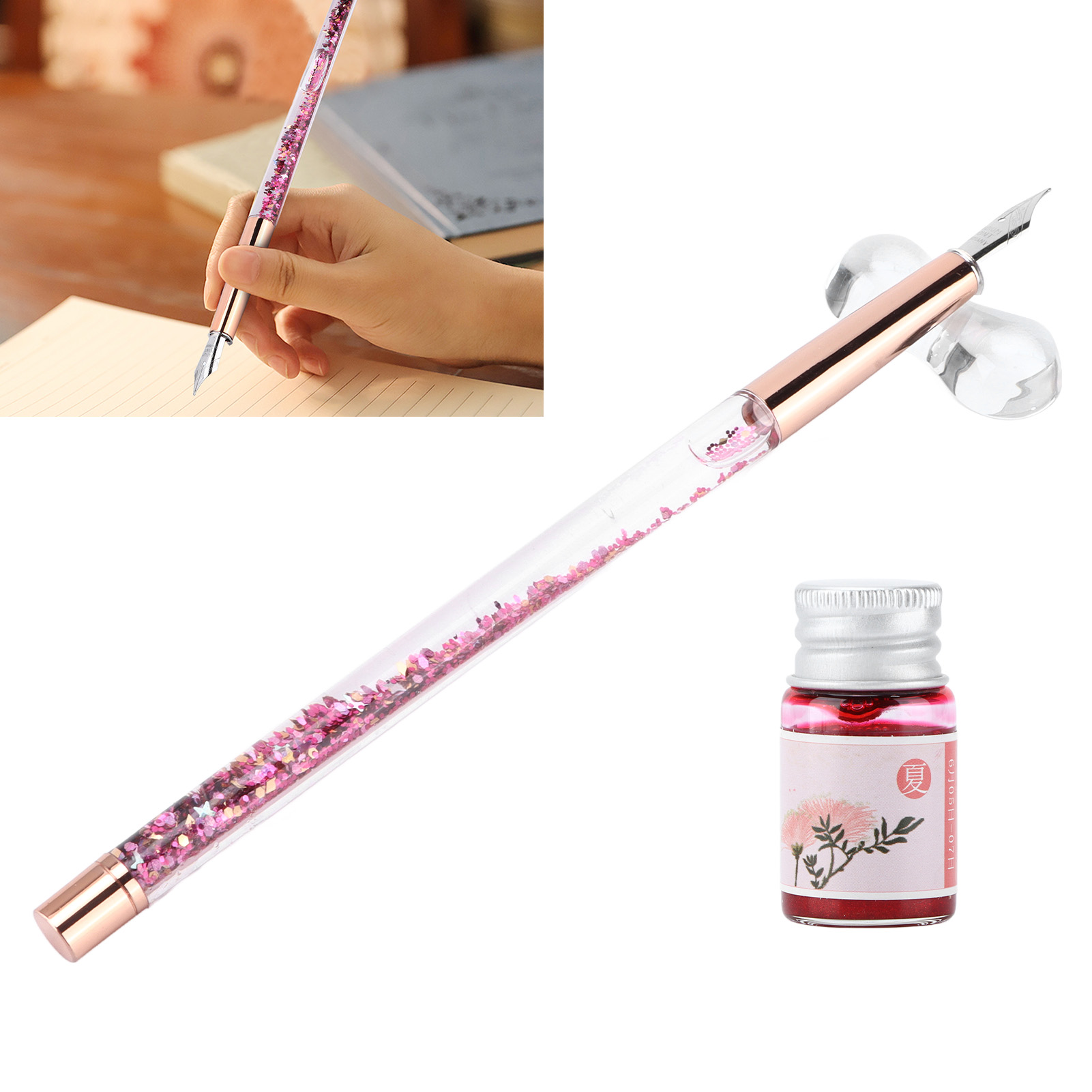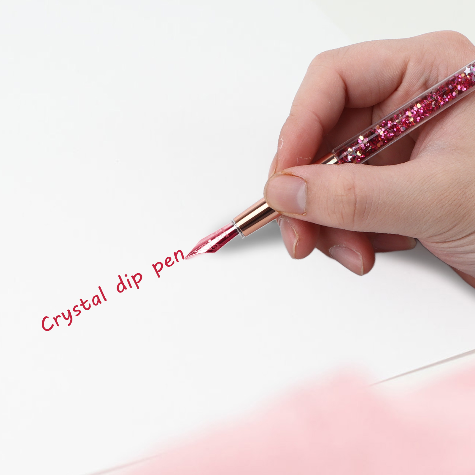 1、DURABLE and BEAUTIFUL: The dip pen is made of glossy glass and plastic materials, with beautiful pen body, comfortable to hold 2、CONVENIENT to CARRY: This pen comes with a beautiful packaging, which is convenient for you to carry and store 3、INK WRITING: This glass dip pen is written in ink, which writing smoothly and is not easy to scratch paper 4、COMPLETE ACCESSORIES: Each box of pens is equipped with a glass pen, a bottle of ink, and a pen holder to meet daily needs 5、SIMPLE to USE: There is no complicated use process, only need to take the pen to dip the ink, you can use the pen