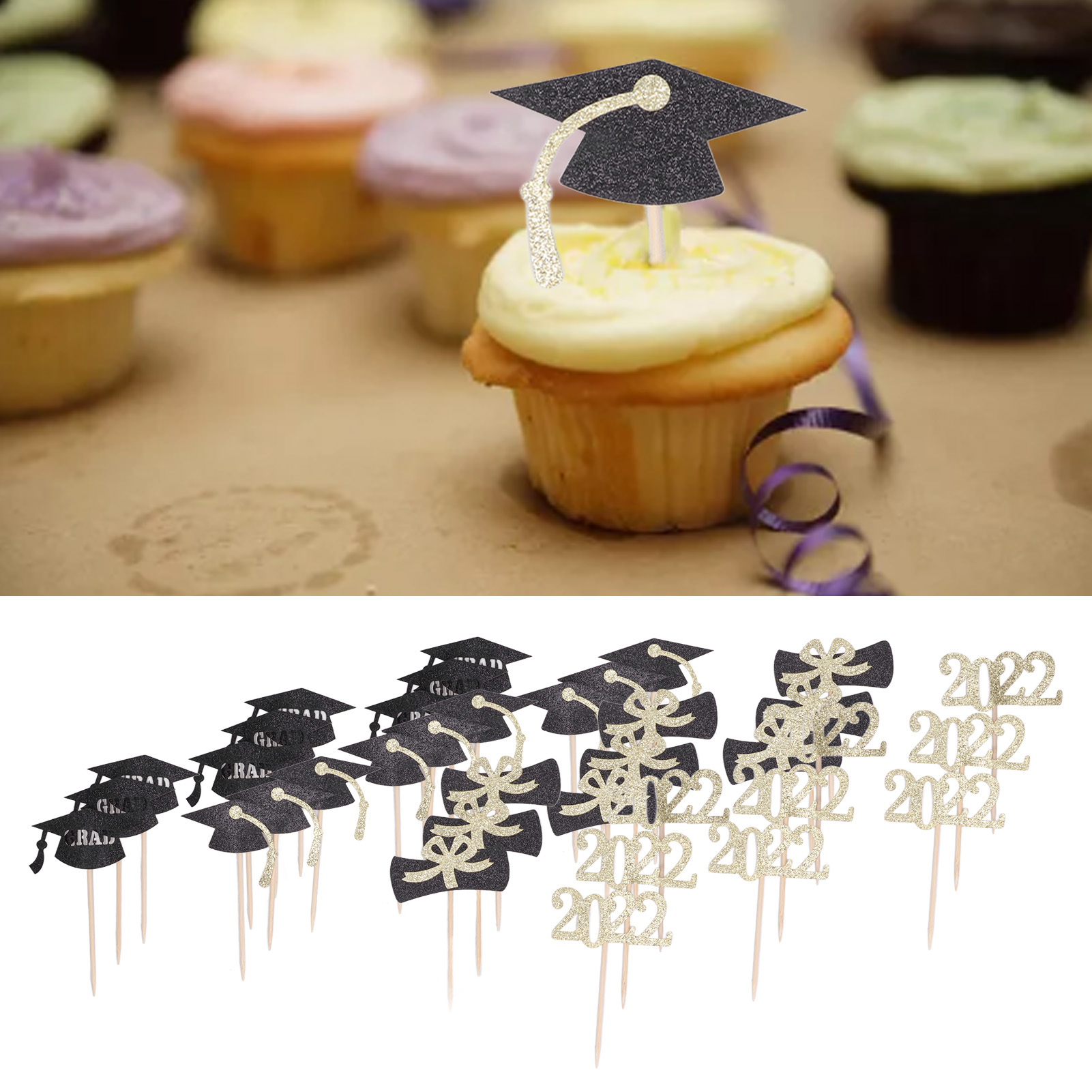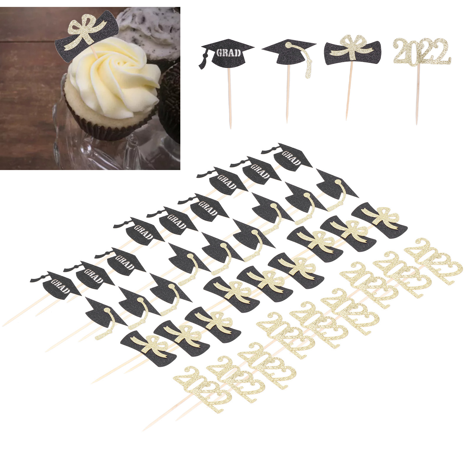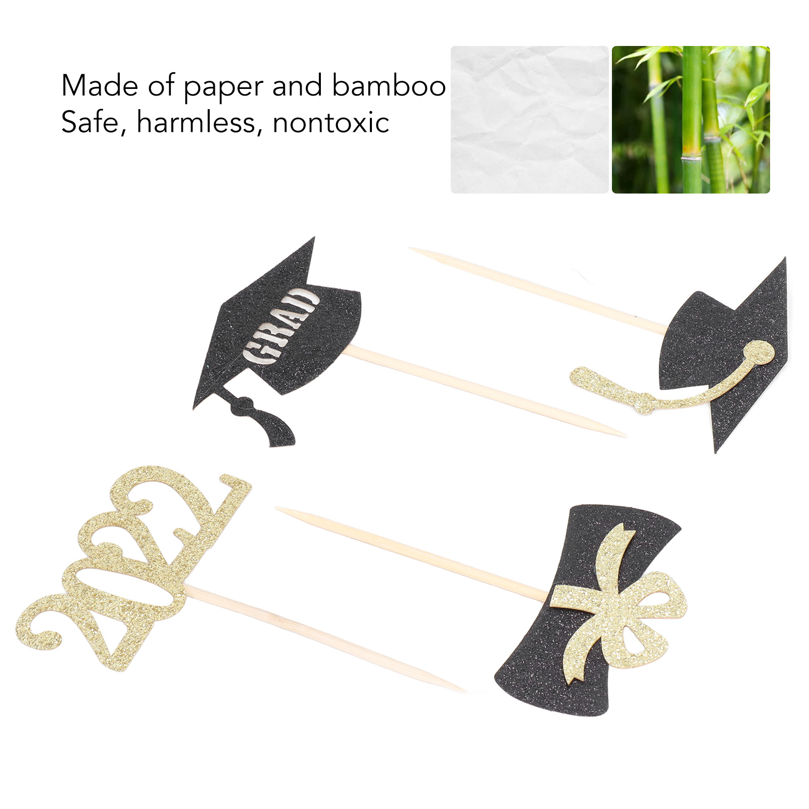 1、High Quality Materials: Made of paper and bamboo, this cake insert is strong, durable and has a long service life. 2、Graduation Cake Decoration: Comes with bachelor hat, 2022 numbers, diploma shape, it is the perfect graduation cake decoration. 3、Safe Harmless: Using sophisticated production technology, this cake decoration is safe, harmless, nontoxic and can be used with confidence. 4、Exquisite Beautiful: Beautiful and delicate looking, these graduation cake inserts can add luster to graduation. 5、Uses: It can be placed on cakes or cupcakes, or glued to the wall for use as wall decoration.