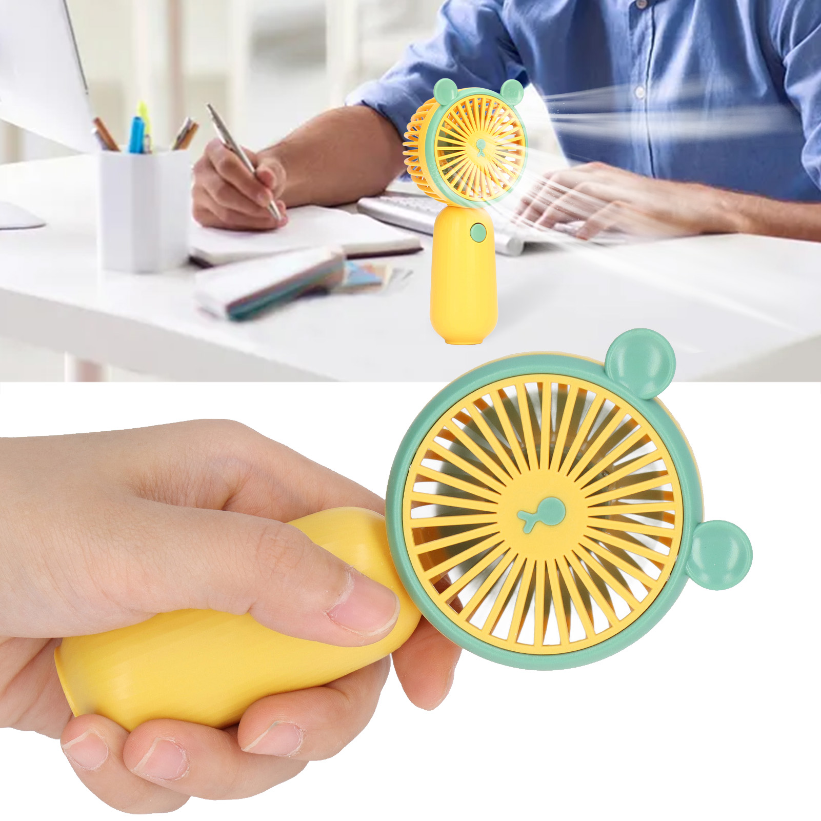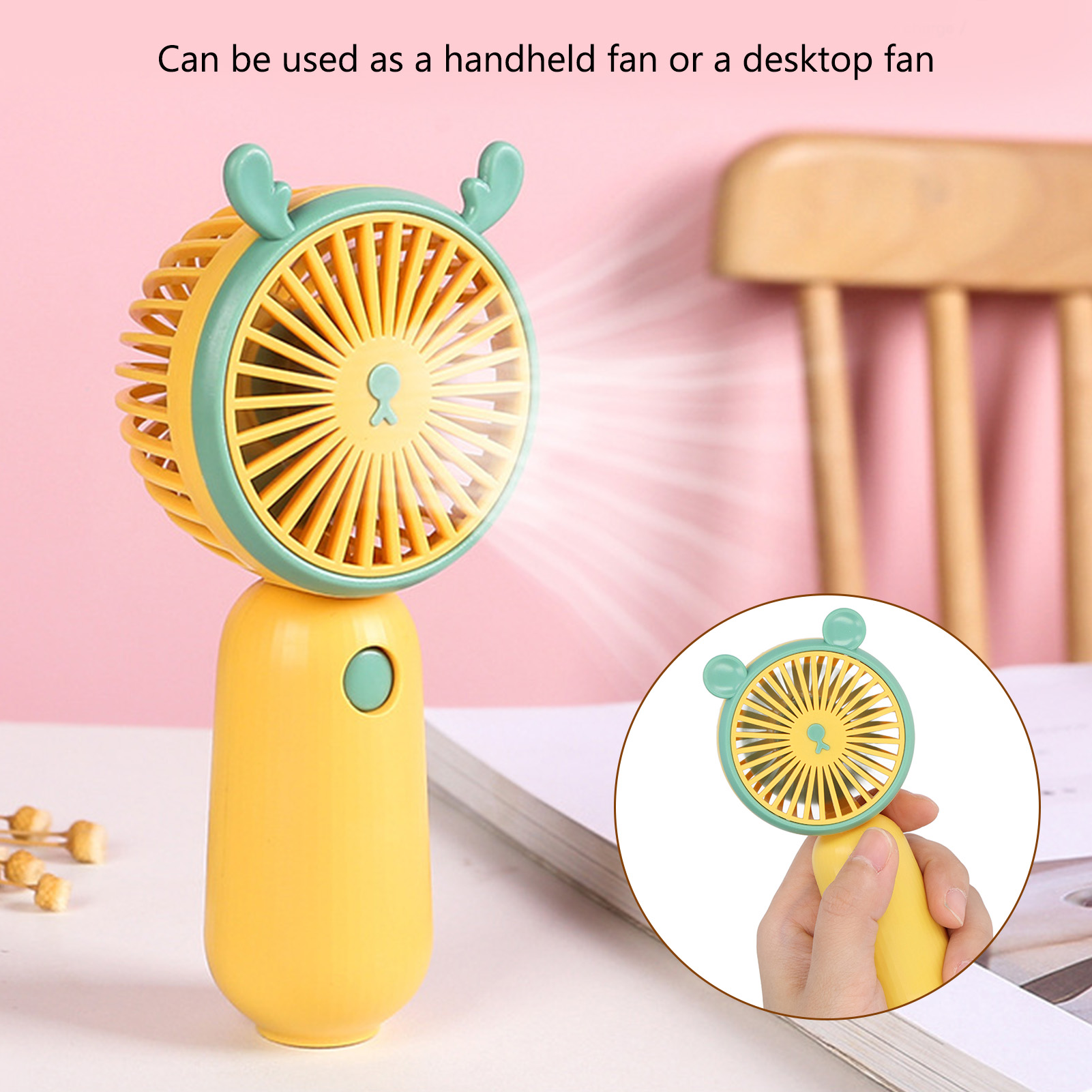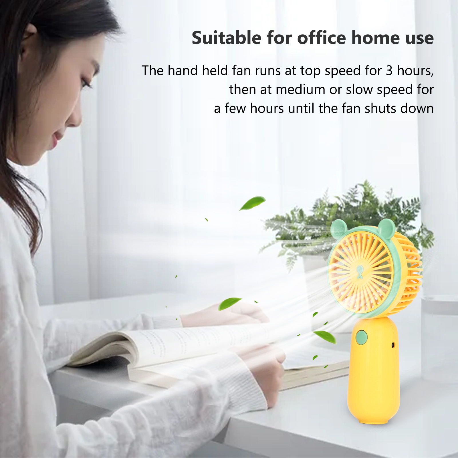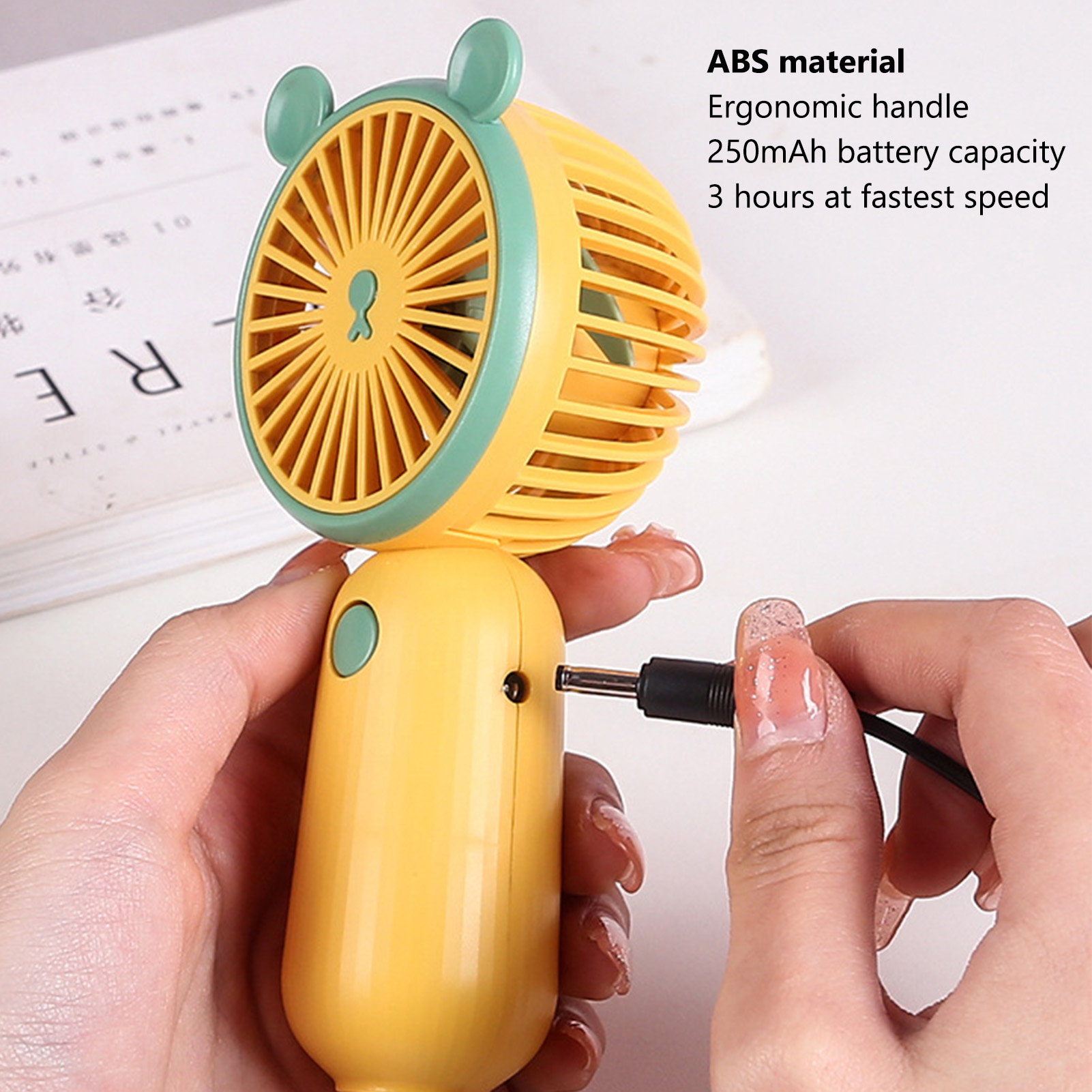 1、Convenient and Practical: The hand held fan runs at top speed for 3 hours, then at medium or slow speed for a few hours until the fan shuts down 2、Ergonomic Handle: The portable fan rechargeable has an ergonomic handle design to ensure long term holding and not easy to feel hand fatigue 3、2 Use Mode: The mini fan portable has a practical and cool design and can be used as a handheld fan or a desktop fan to meet your different needs 4、ABS Material: The battery operated fan is made of ABS material, which is wear resistant. Has 250mAh battery capacity 5、Scope of Application: The USB fan rechargeable is very suitable for office home use, and the compact design will not take up too much storage space