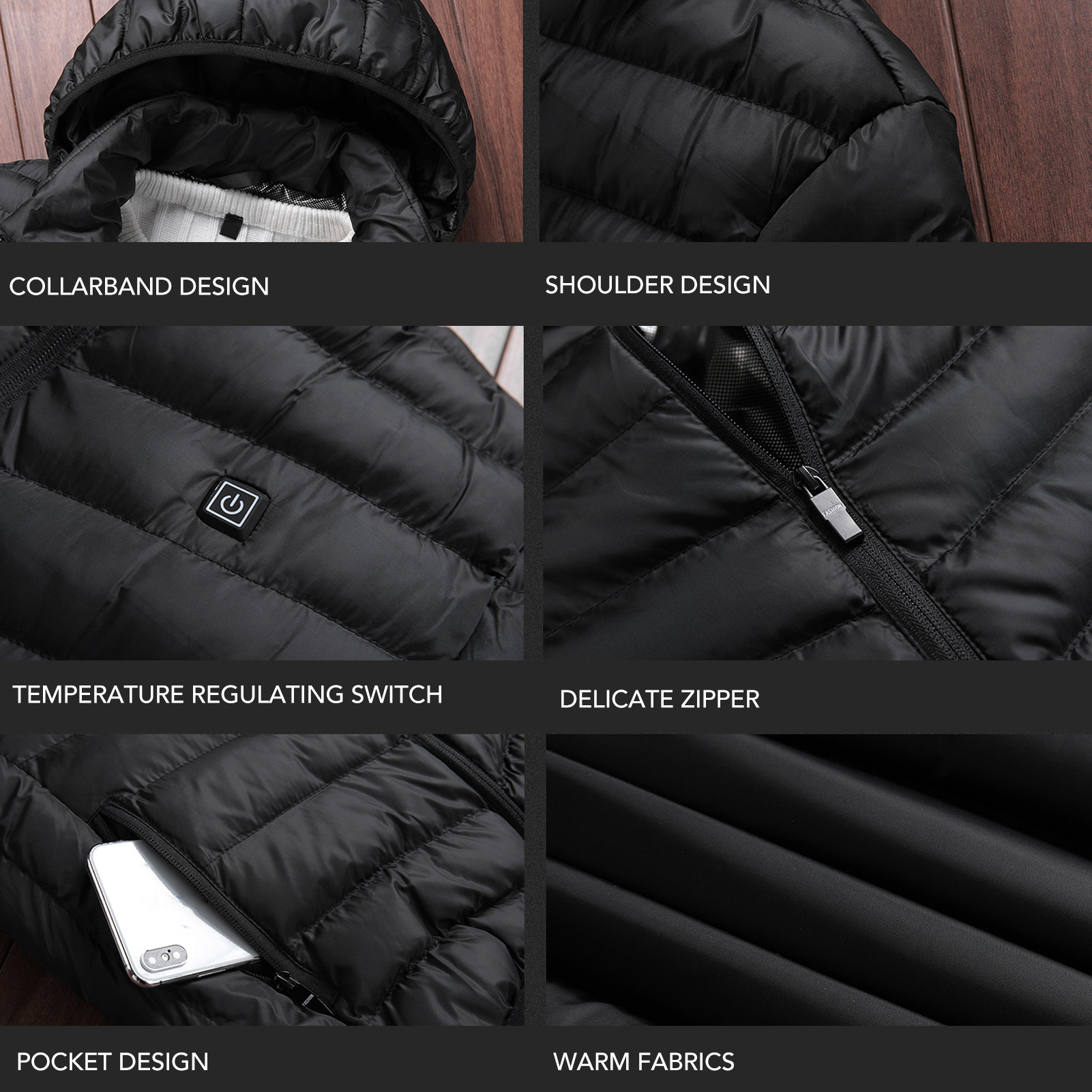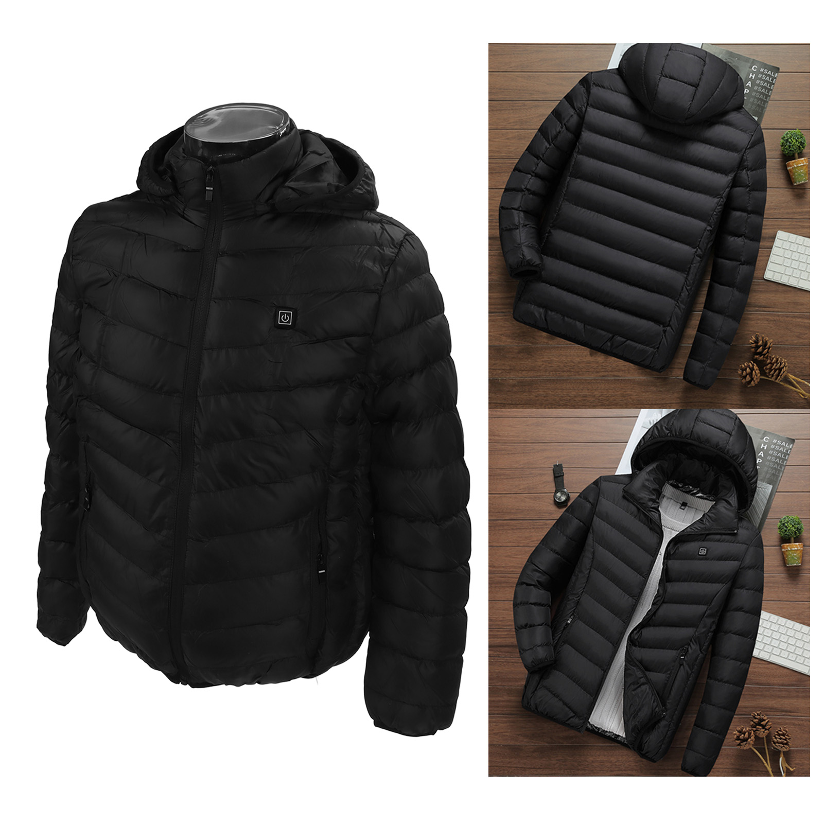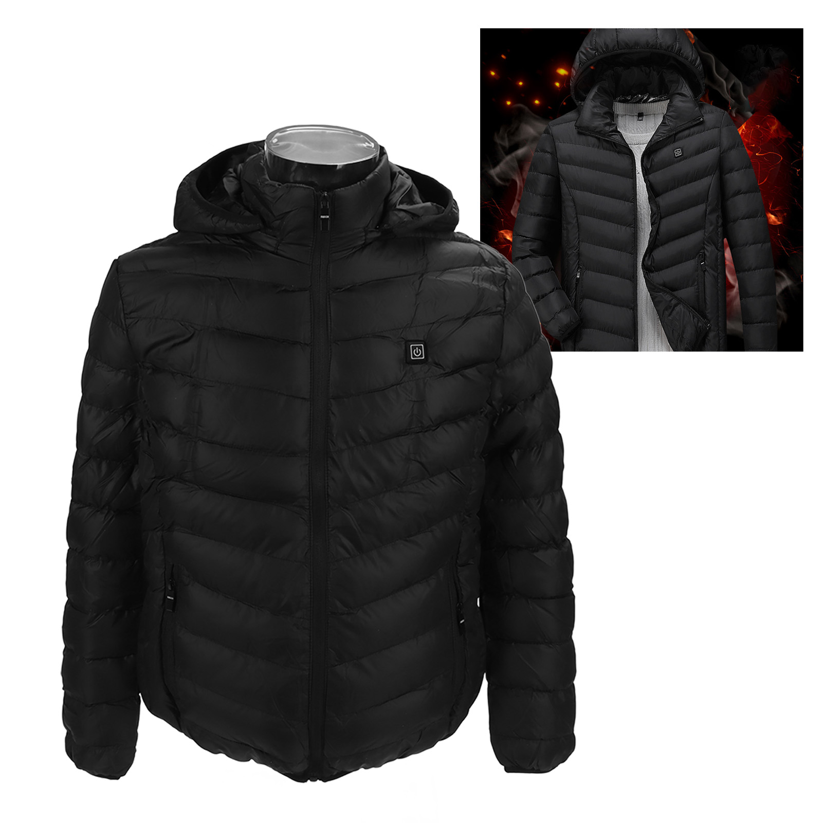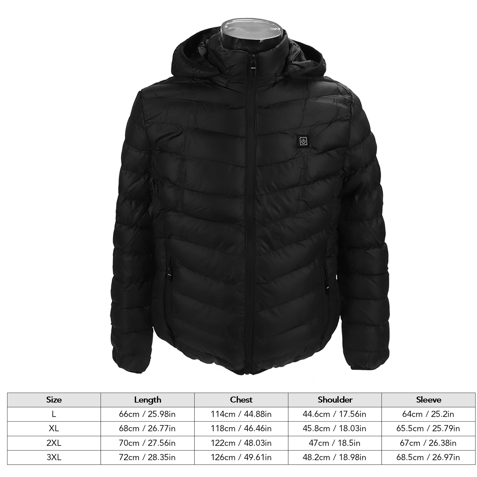 Heated Jacket Intelligent Thermostatic Electric Heating Black Hooded Warm Heated Coat for Men Women XL