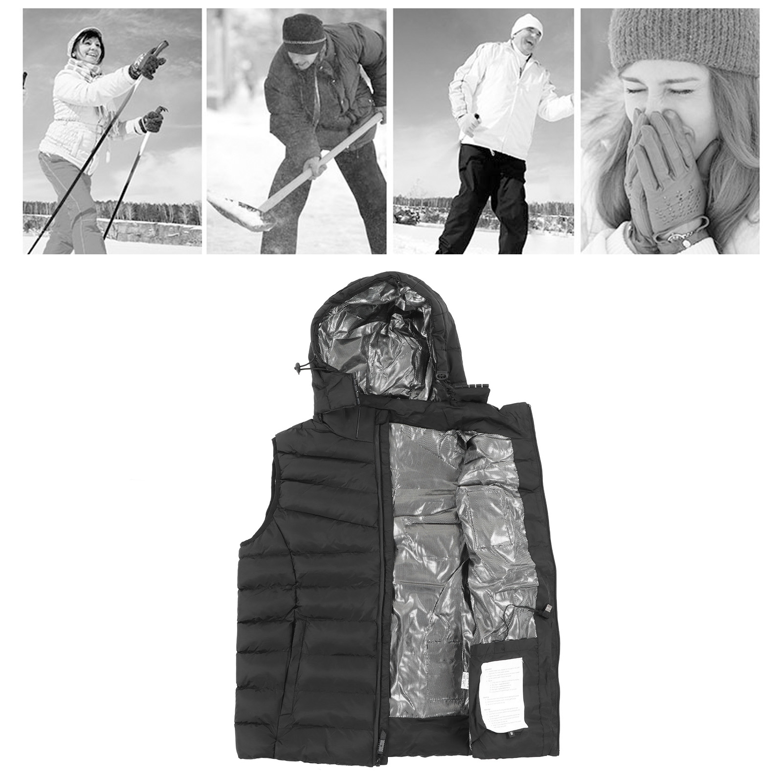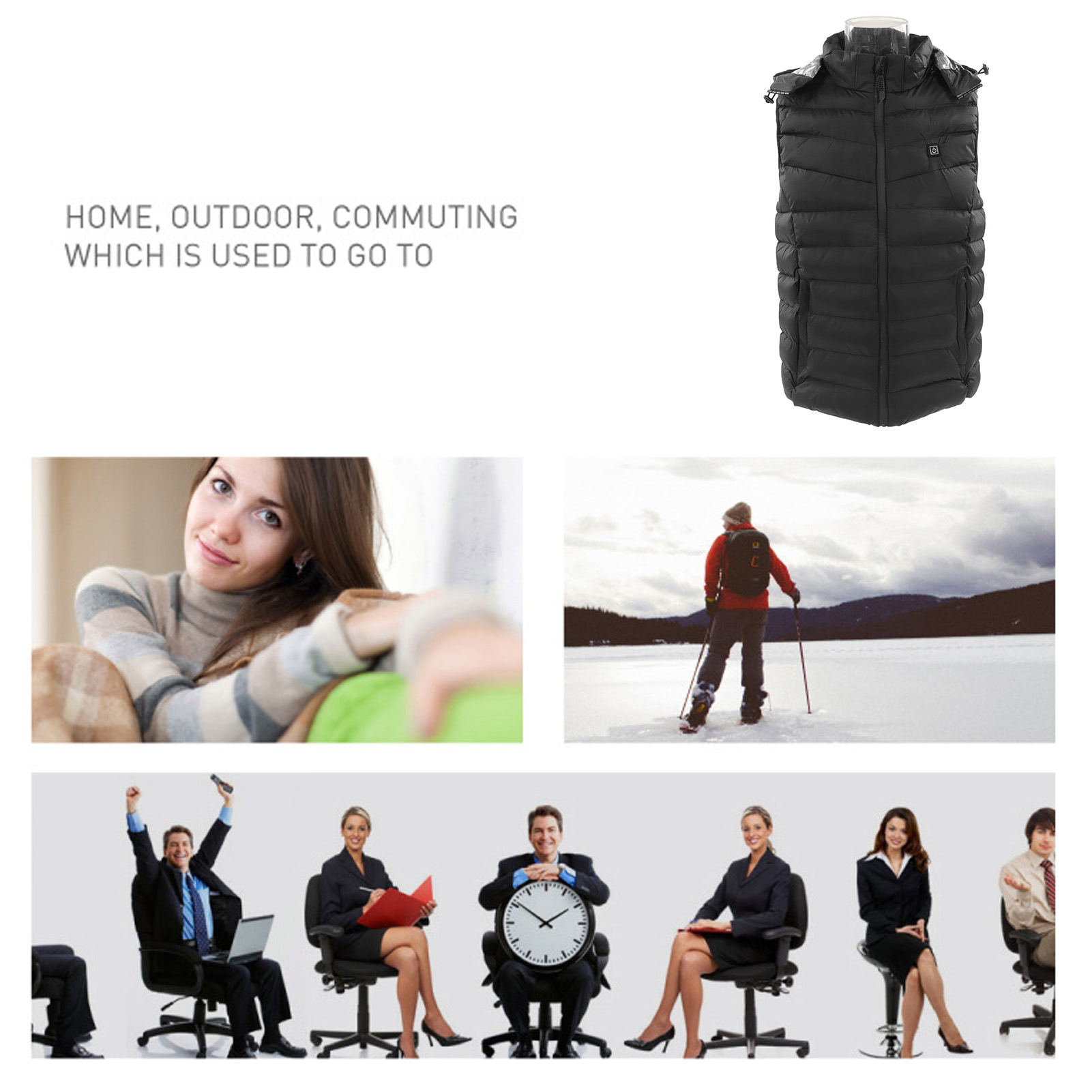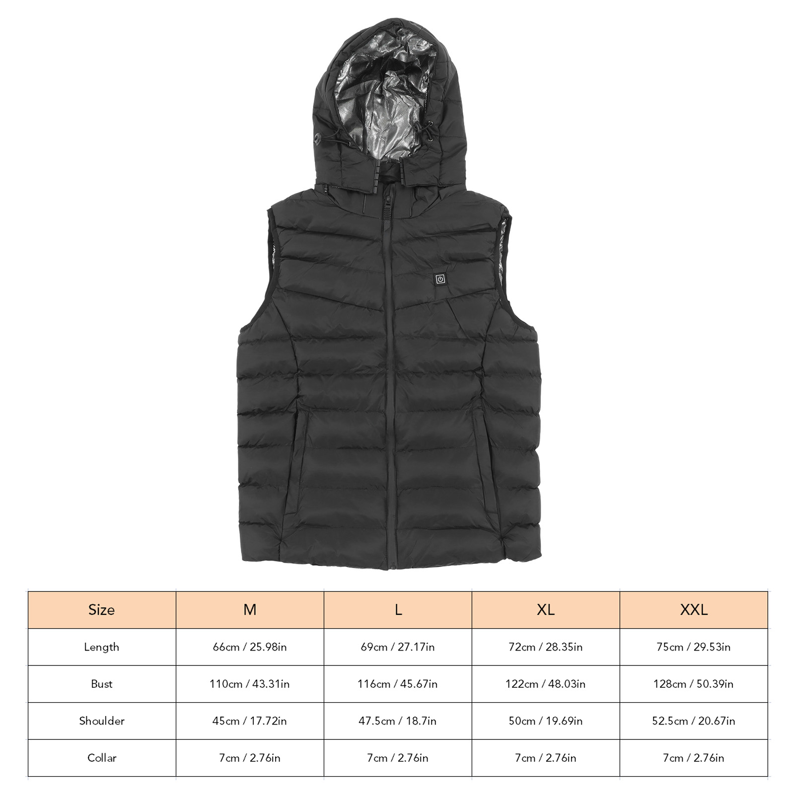 1、Three Level Temperature Adjustment: One button heating, three level temperature adjustment, intelligent heating, only 5V voltage, 10000 mA continuous heating for 8 hours. 2、Washable Waterproof: Washable, power interface using insulation waterproof, windproof, support hand washing, machine washing, dry cleaning. 3、Infrared Heating: Infrared heat, no harmful radiation. Humanized heating part design, and heating block is designed for the parts easy to get cold on the back. 4、Zipper Pocket Design: Anti loss zipper pocket design, can receive small items, practical and more convenient, with a smoothing zipper. 5、Stand Collar and Hooded Design: Stand collar design, comfortable neckline, warm hooded design, comfortable fit neck.