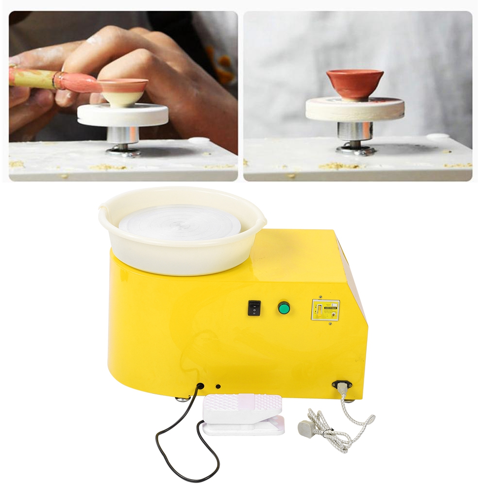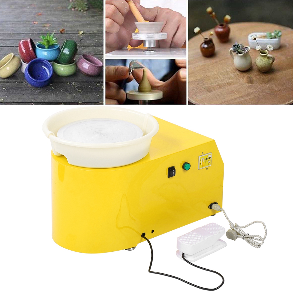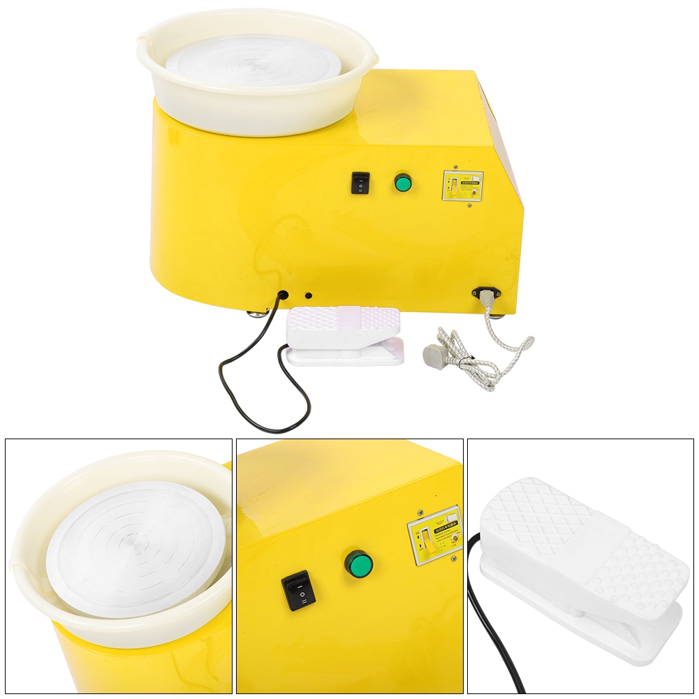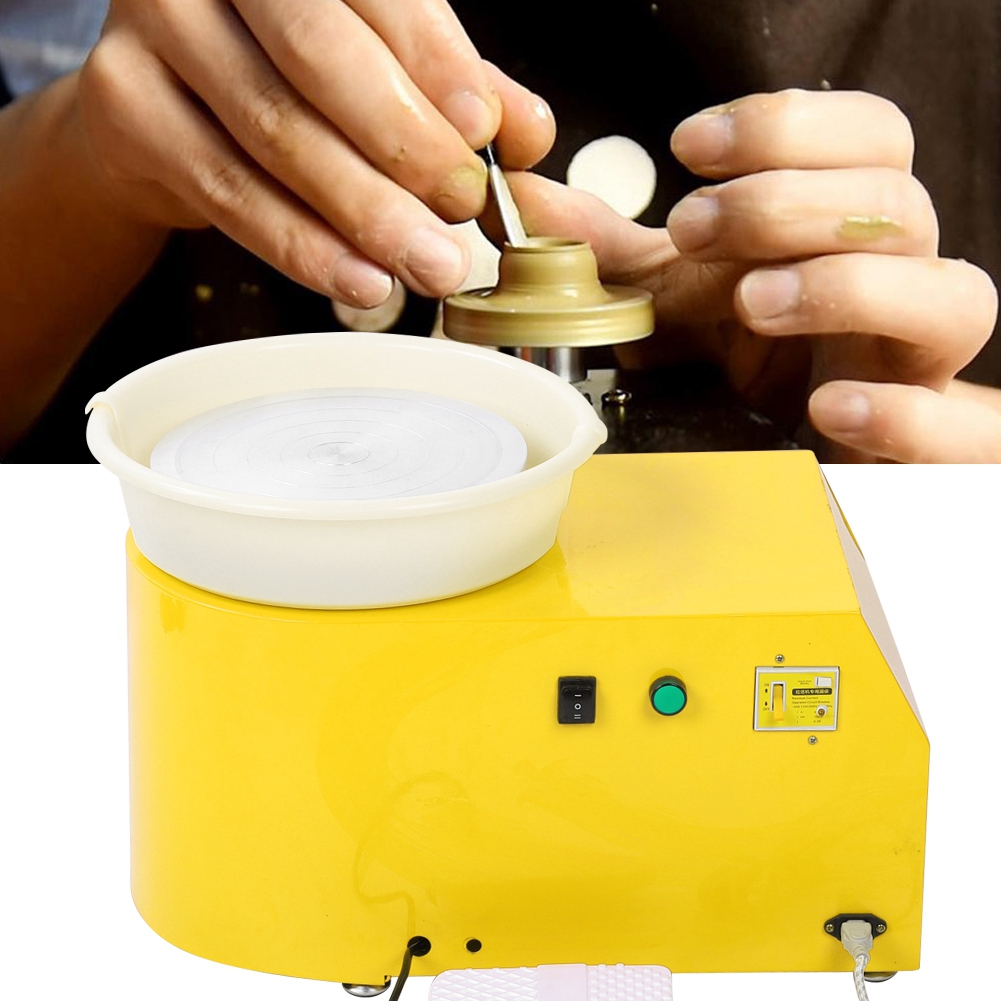1、Beautiful appearance, the surface is coated with powder, low noise and easy to operate 2、With foot control, the speed can be changed quickly and easily 3、Easy to seep, good performance, prevent clay from spilling 4、The wheel rotates smoothly, the noise is low, and the direction of rotation can be switched CW or CCW 5、Single-phase three-wire grounding protection device, it is safe and reliable to operate 6、Suitable for beginners, pottery enthusiasts and sculpture artists to create small sculptures