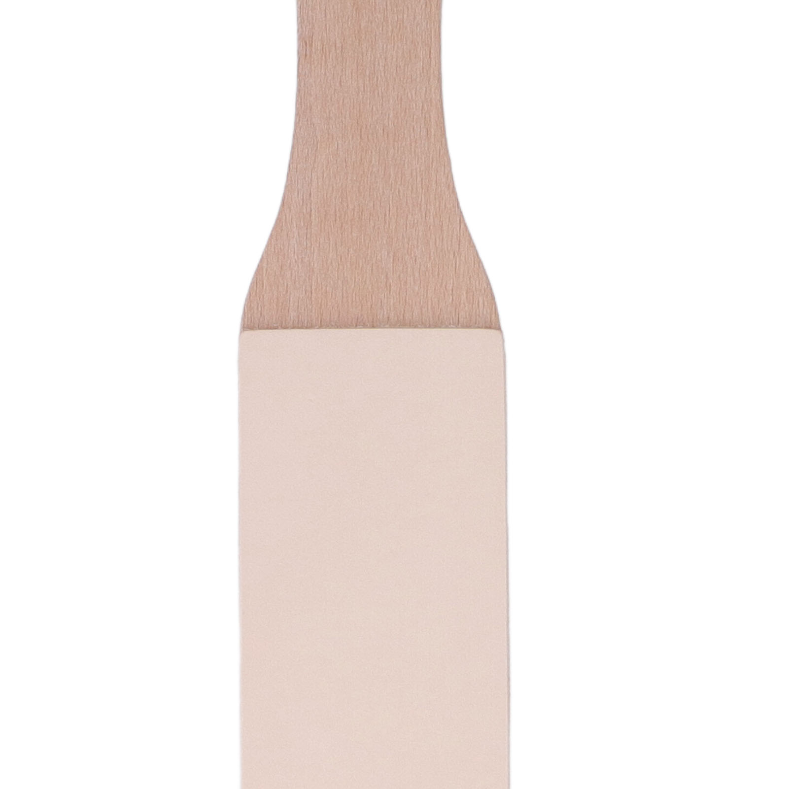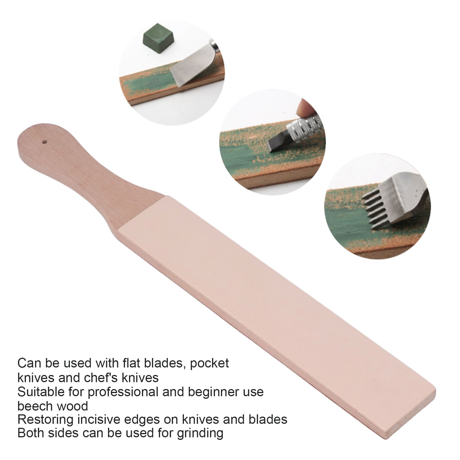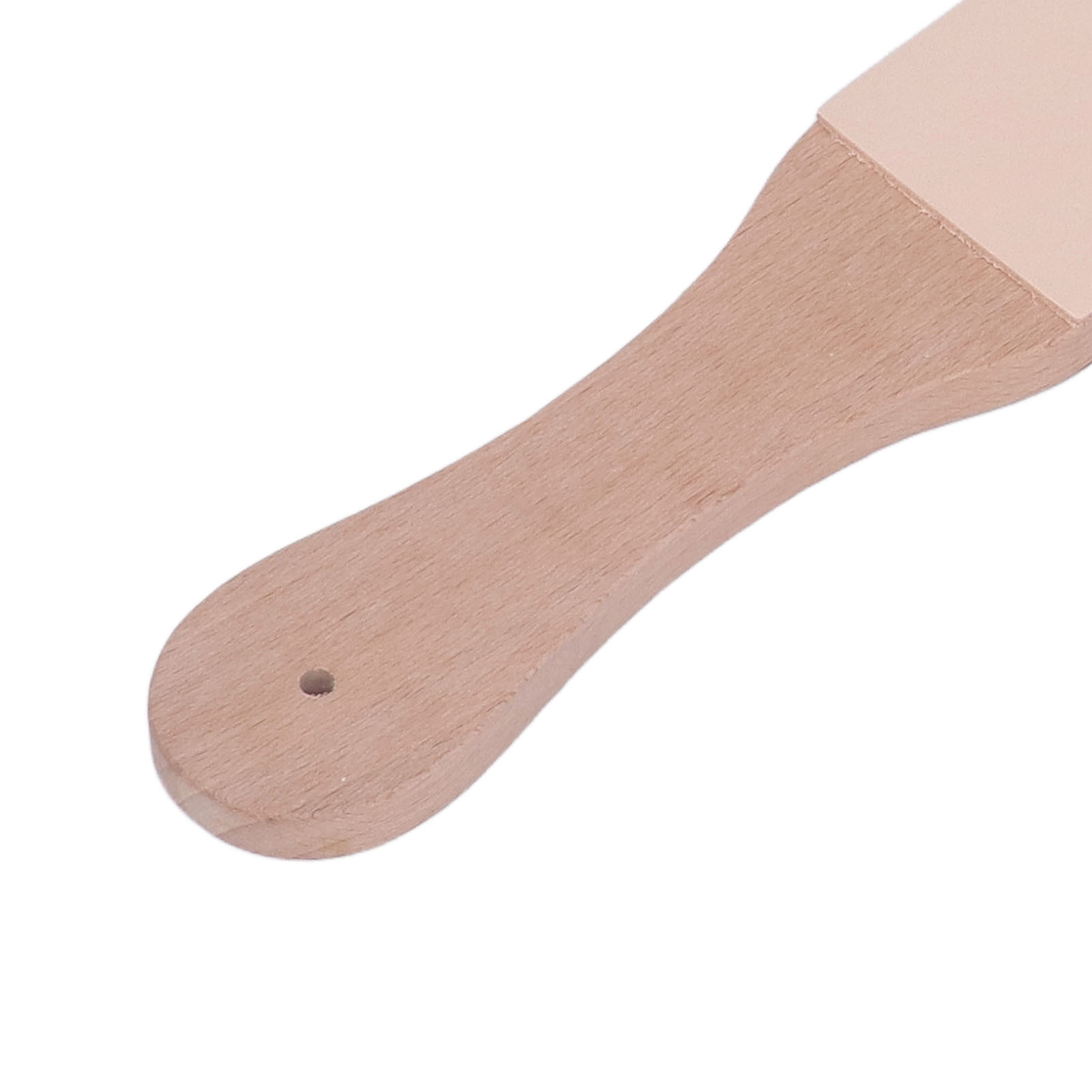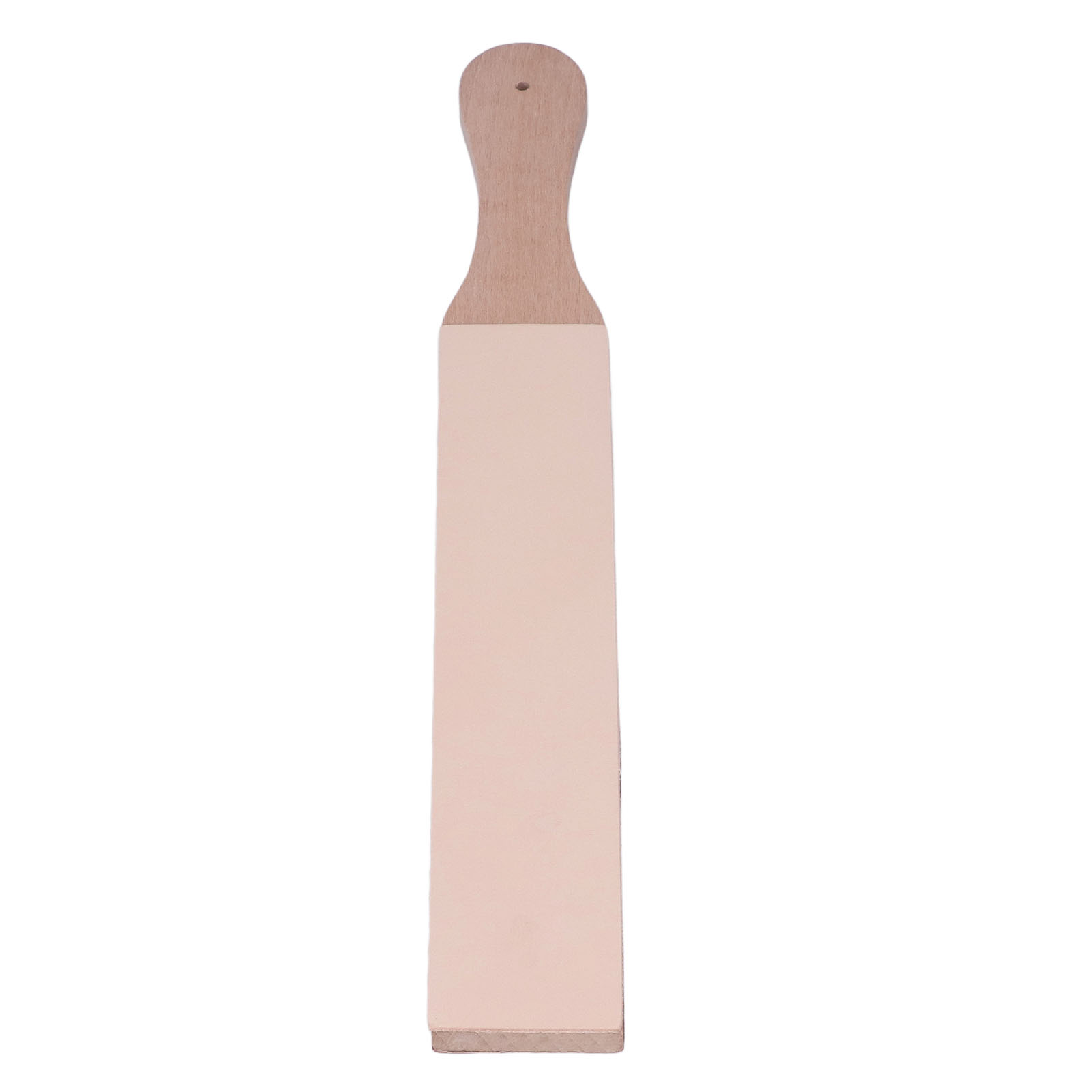 1、Beech Wood Material: The sharpening strop is made of beech wood, which is durable and can be used with confidence 2、Available on Both Sides: Both sides of the leather strop block can be used for grinding. One side is glossy and the other is rougher 3、Restoring Sharpness: The sharpening strop is good for restoring incisive edges to knives and blades, suitable for kitchen knives etc 4、Convenient and Practical: The knife strop is easy to use, suitable for professionals and beginners to meet your daily needs 5、Scope of Application: The knife strop with composite material, which makes your blade sharper and can be used with flat blades, pocket knives and chef's knives