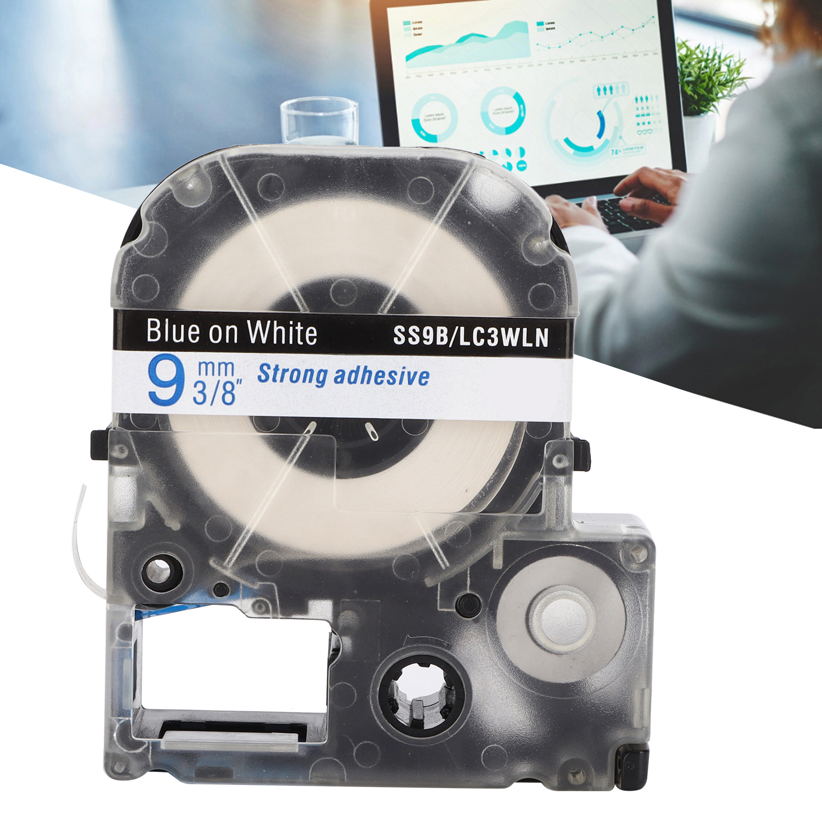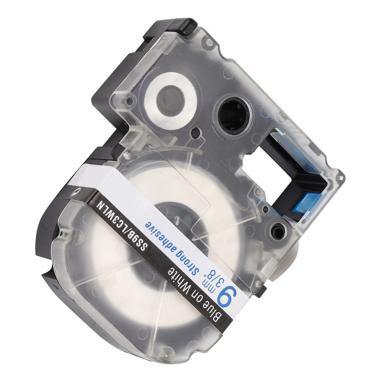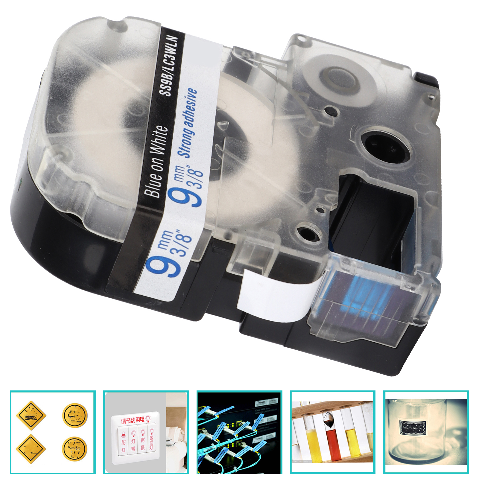 Label Tape AbrasionResistant AntiCorrosion Label Maker Tape for KING JIM Labeling Machine SR230C SR230CH SR530C(Blue On White )