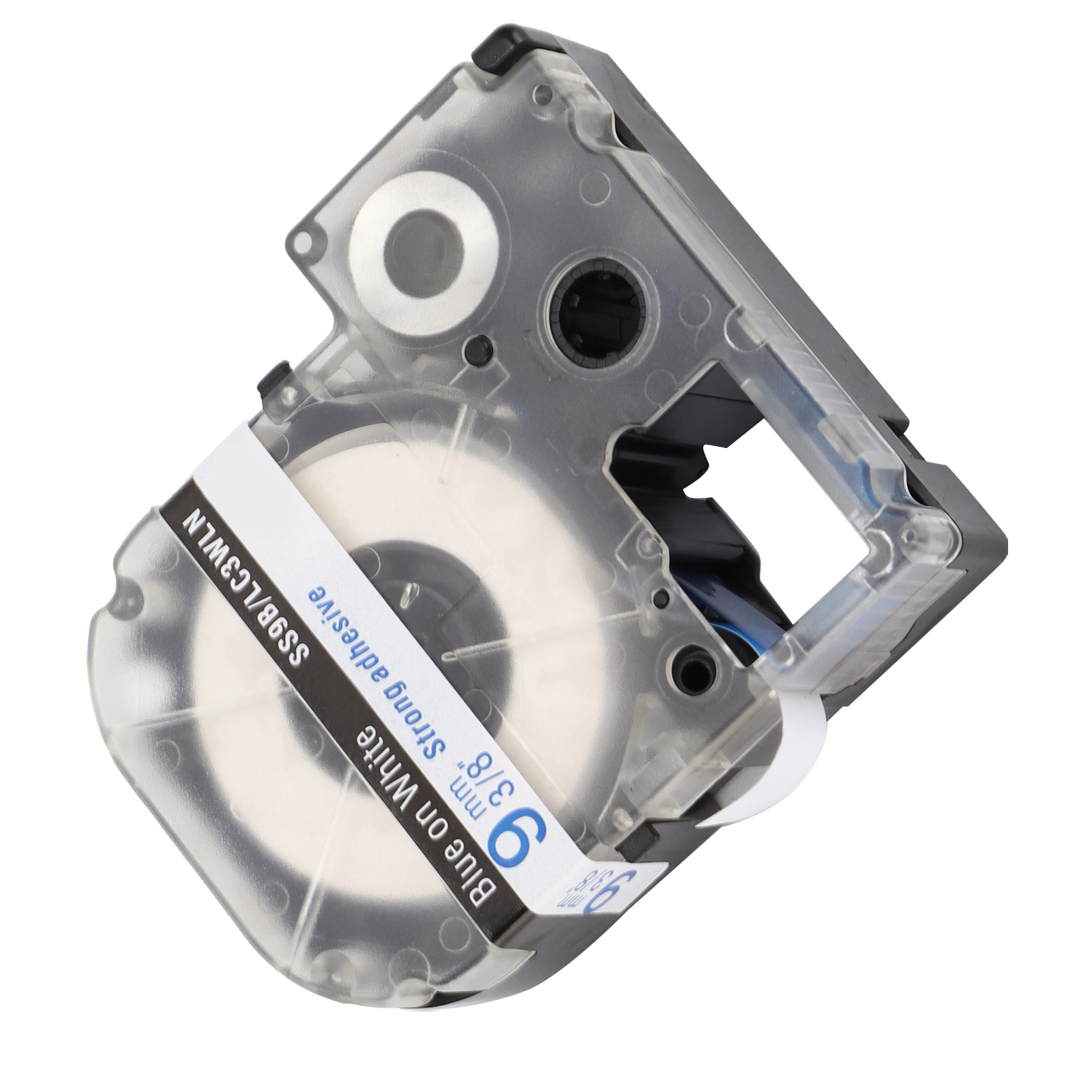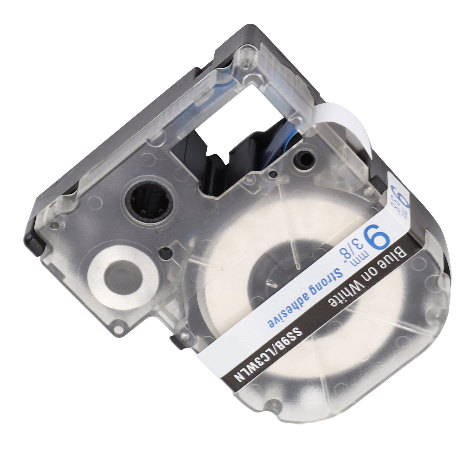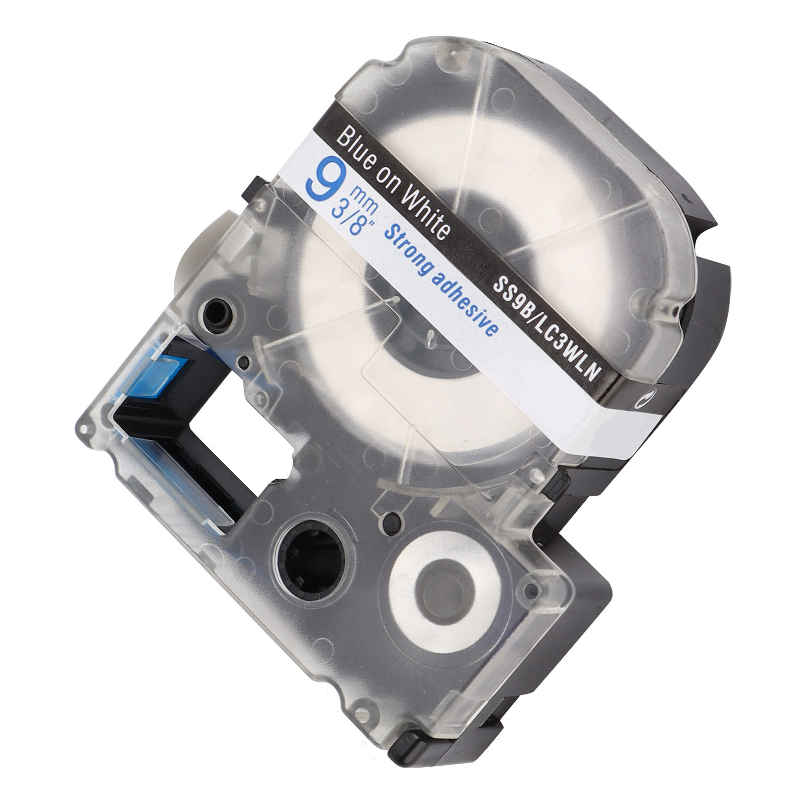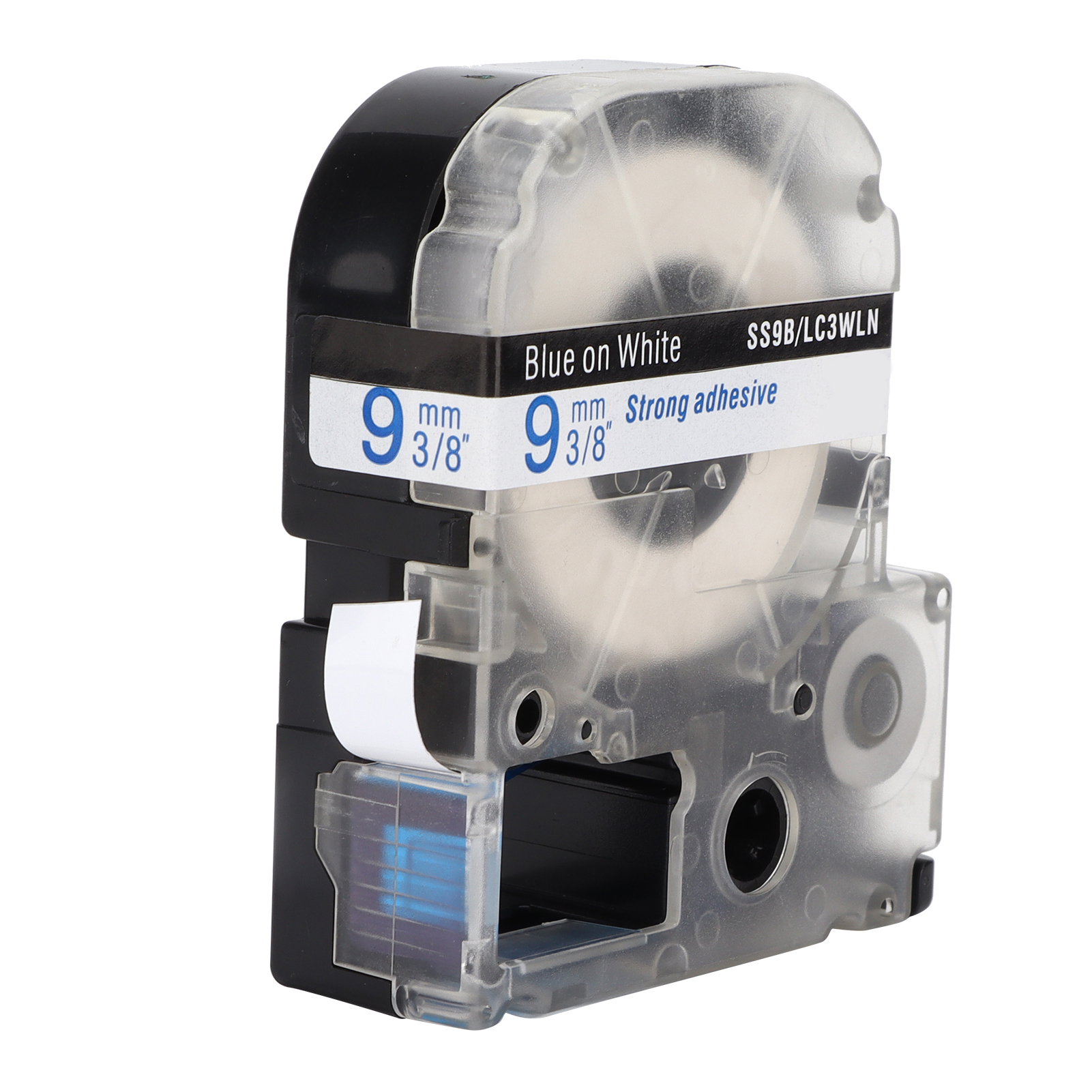 Label Tape AbrasionResistant AntiCorrosion Label Maker Tape for KING JIM Labeling Machine SR230C SR230CH SR530C(Blue On White )
