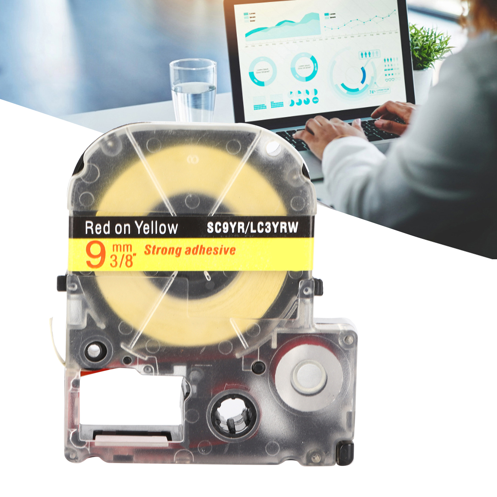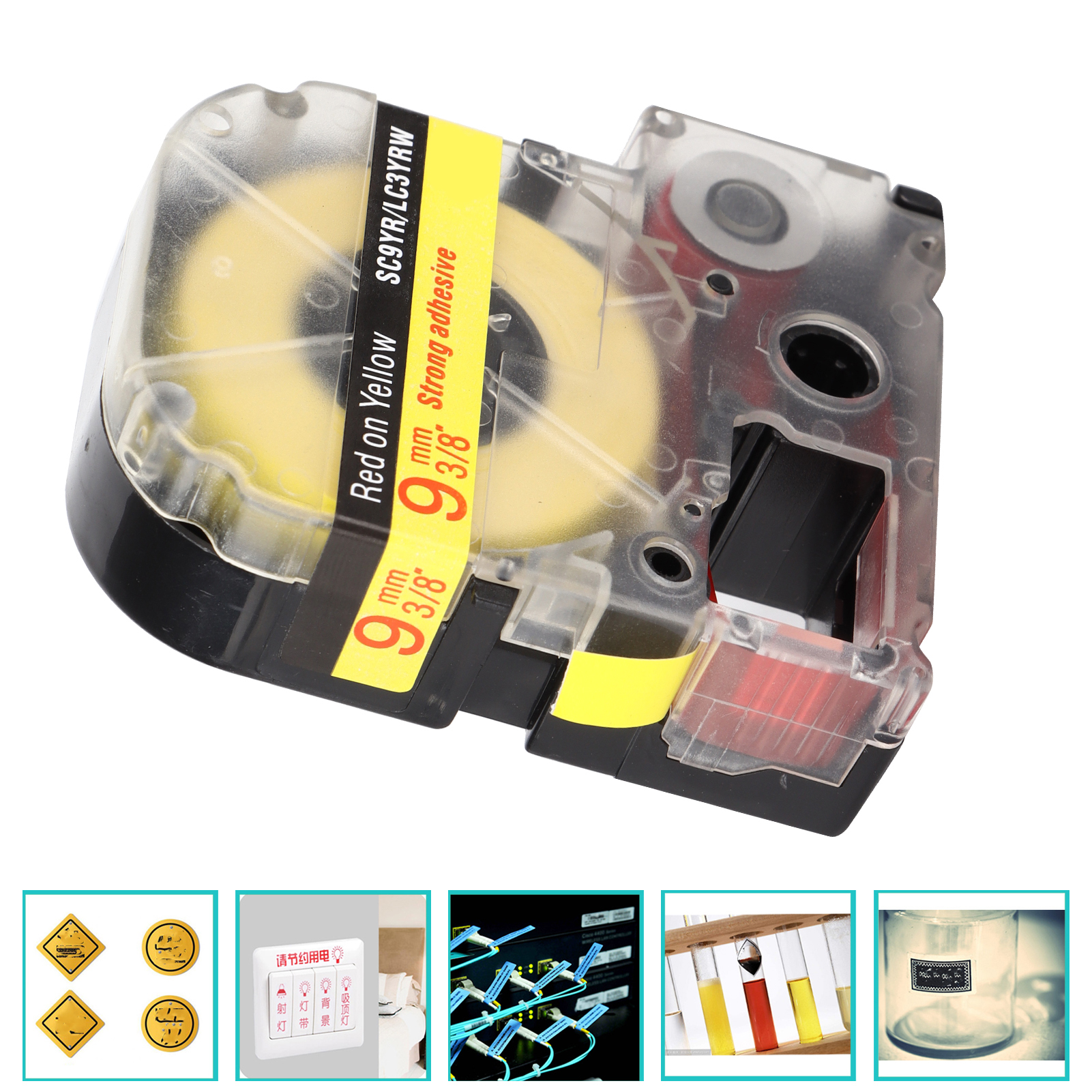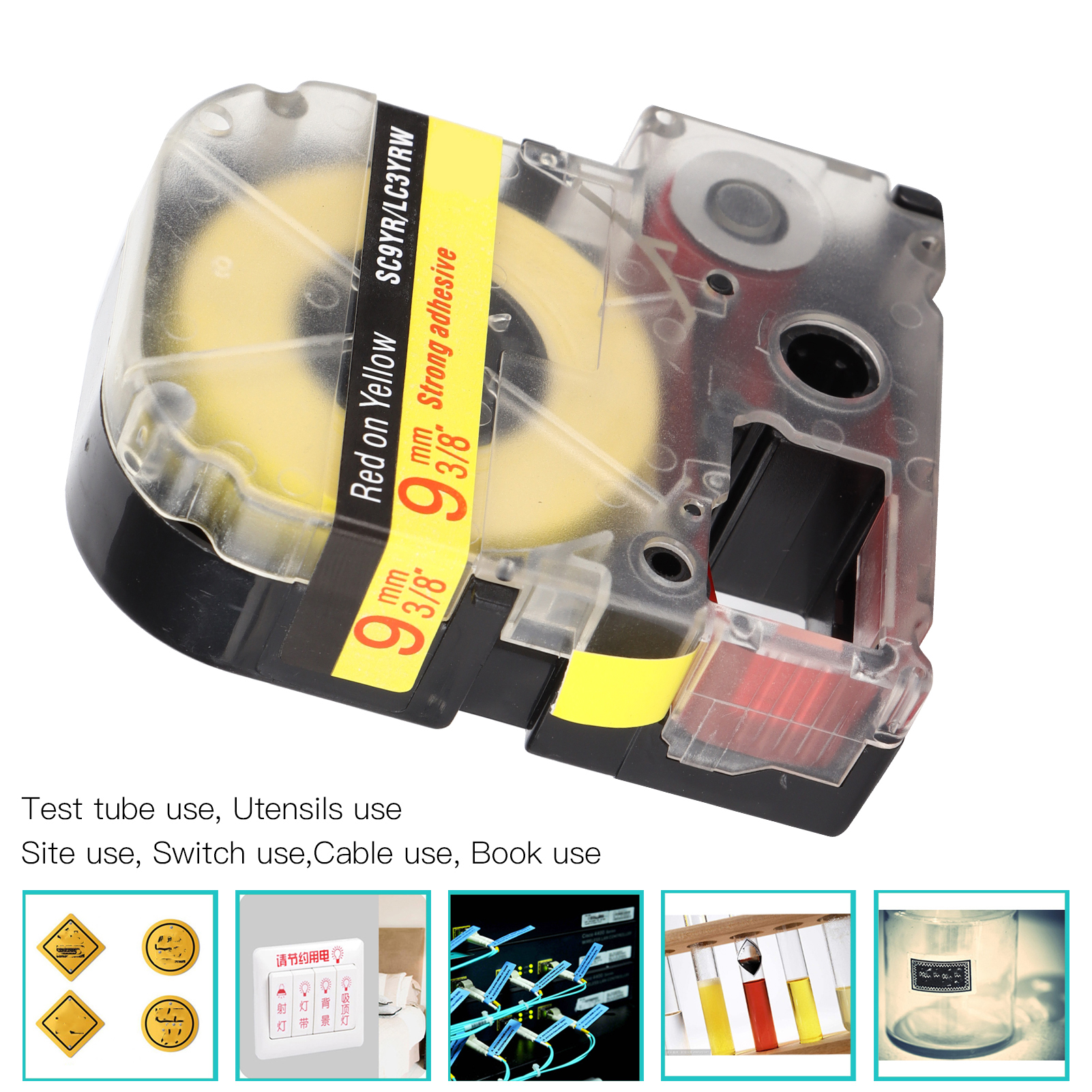 Label Tape AbrasionResistant AntiCorrosion Label Maker Tape for KING JIM Labeling Machine SR230C SR230CH SR530C(Red On Yellow )