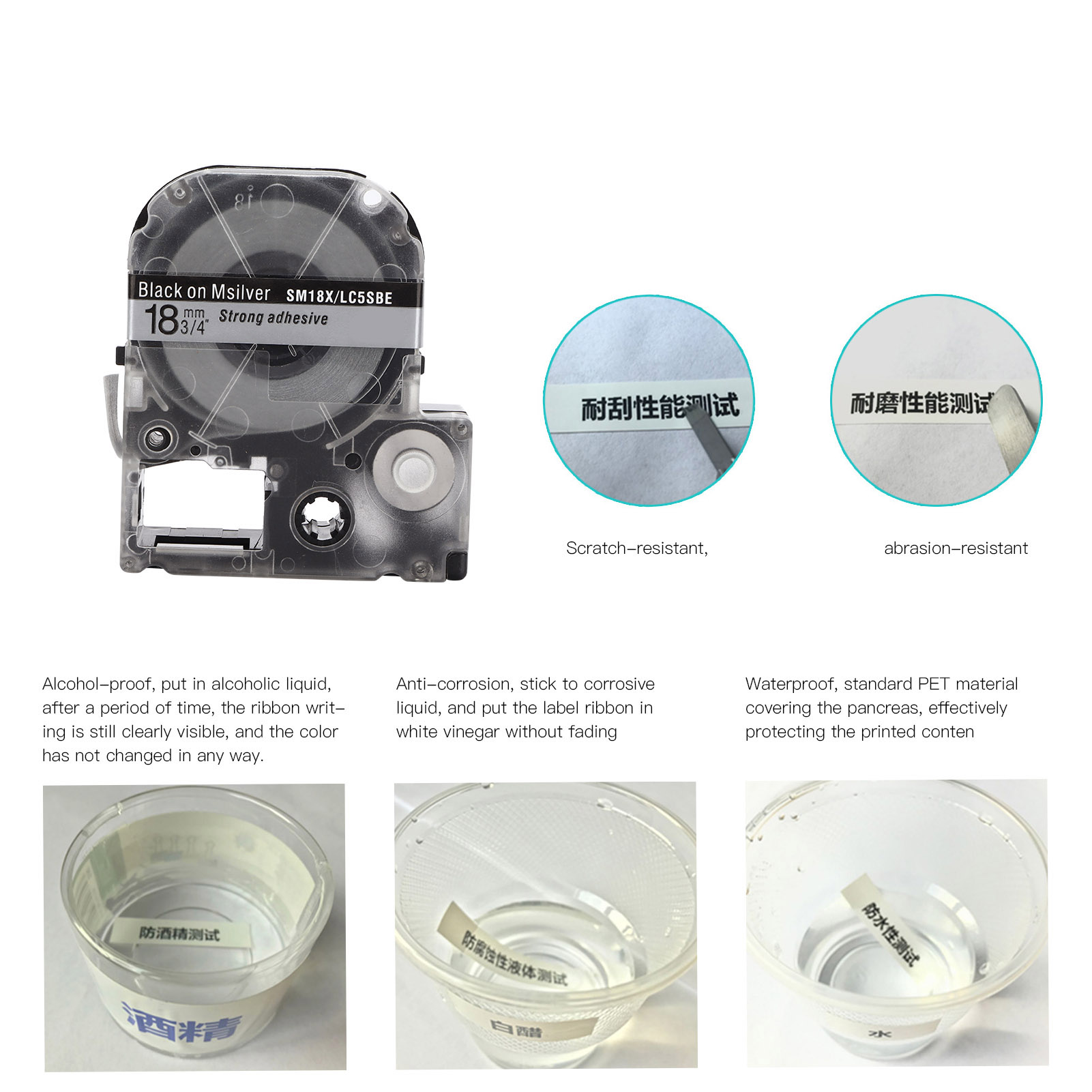 1、This label tape has the properties of oil resistance, alcohol resistance, corrosion resistance and scratch resistance, and has good performance. 2、Made of high‑quality PET material, this label tape replacement is strong, durable, not easy to wear, and has a long service life. 3、Using sophisticated production technology, this tape is waterproof, resistant to high and low temperatures, and does not fade easily. 4、Adopts transparent design, which makes easy to check the remaining label tape length, and easy to use. 5、The length of the label tape replacement is long enough to fully meet the needs and improve work efficiency.