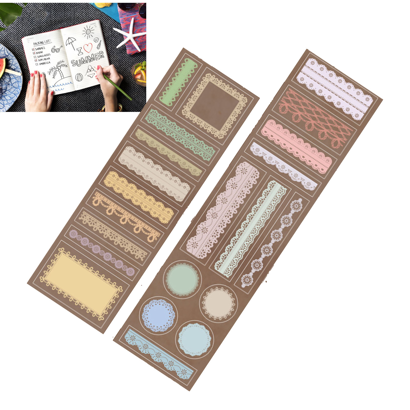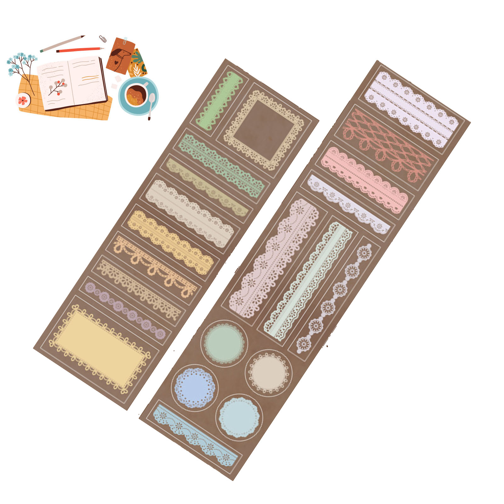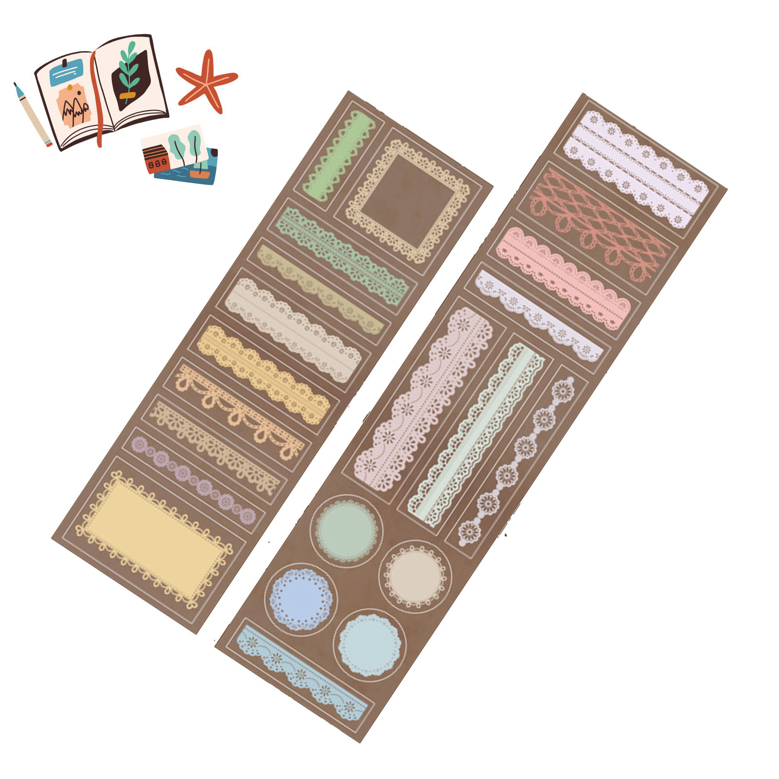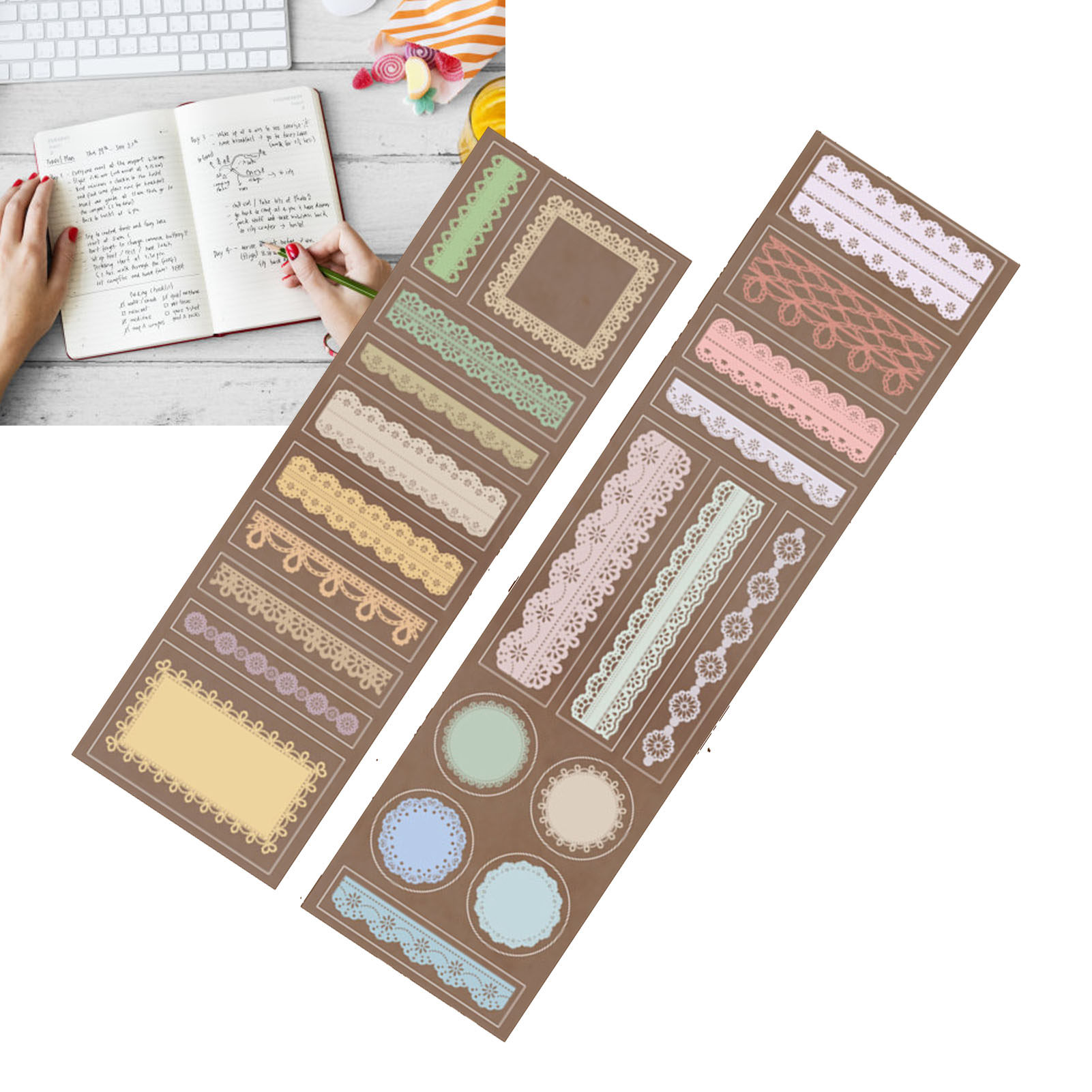 1、FLORAL EMBOSSED DESIGN: The stickers feature exquisite floral embossed patterns, adding a touch of elegance and romantic mood to your scrapbook projects. 2、EASY TO USE: These stickers are self adhesive and can be easily applied to various surfaces such as cards, picture frames, and more. No additional glue is required. 3、MULTIPURPOSE DECORATION: Lace stickers for scrapbooking are not only perfect for scrapbooking, but also suitable for other DIY projects like gift wrapping and card making. 4、REUSABLE: The stickers are designed with a reusable adhesive, allowing you to reposition them if needed without leaving any residue behind. 5、EXCELLENT QUALITY MATERIAL: Lace stickers for scrapbooking are made of premium PET material, ensuring durability and resistance to damage.