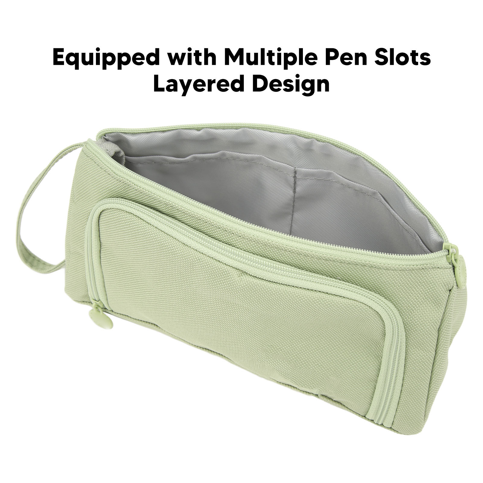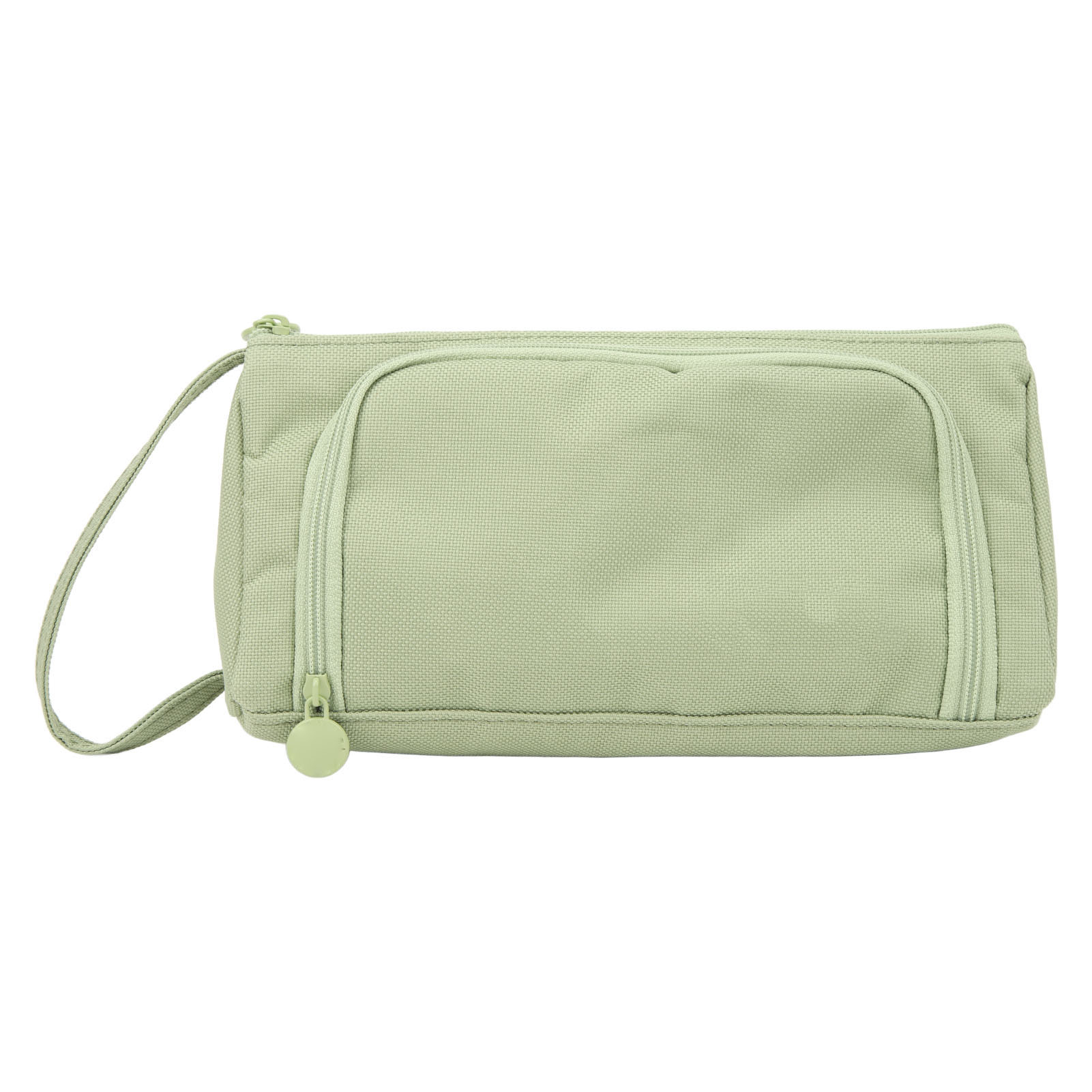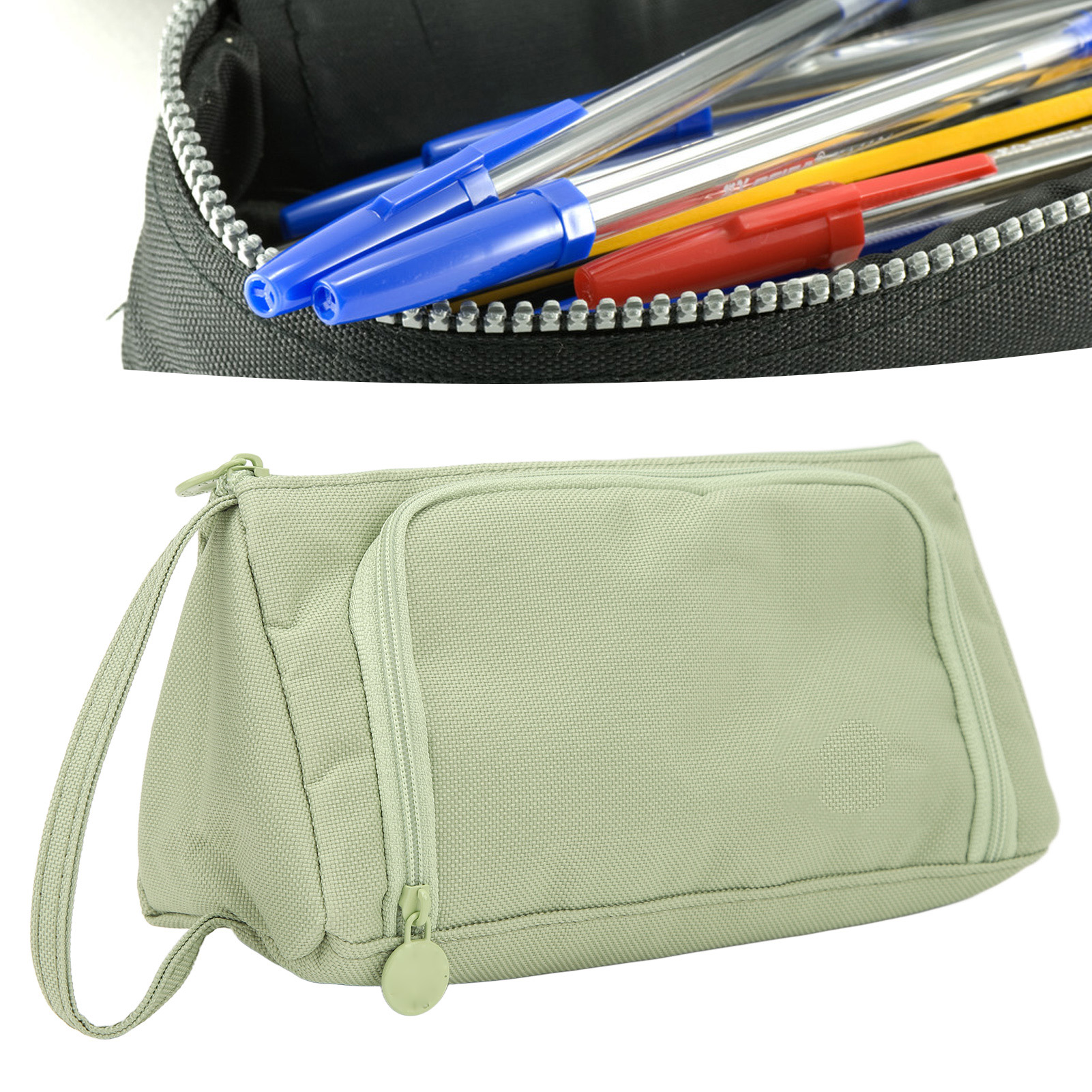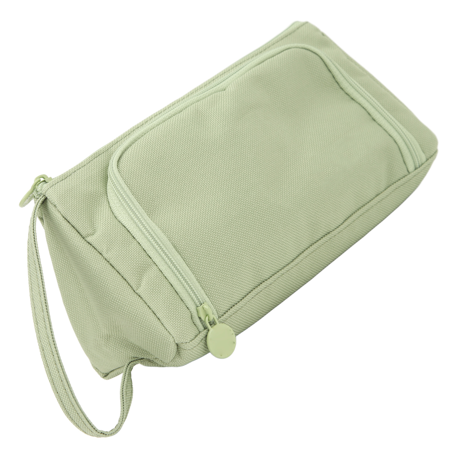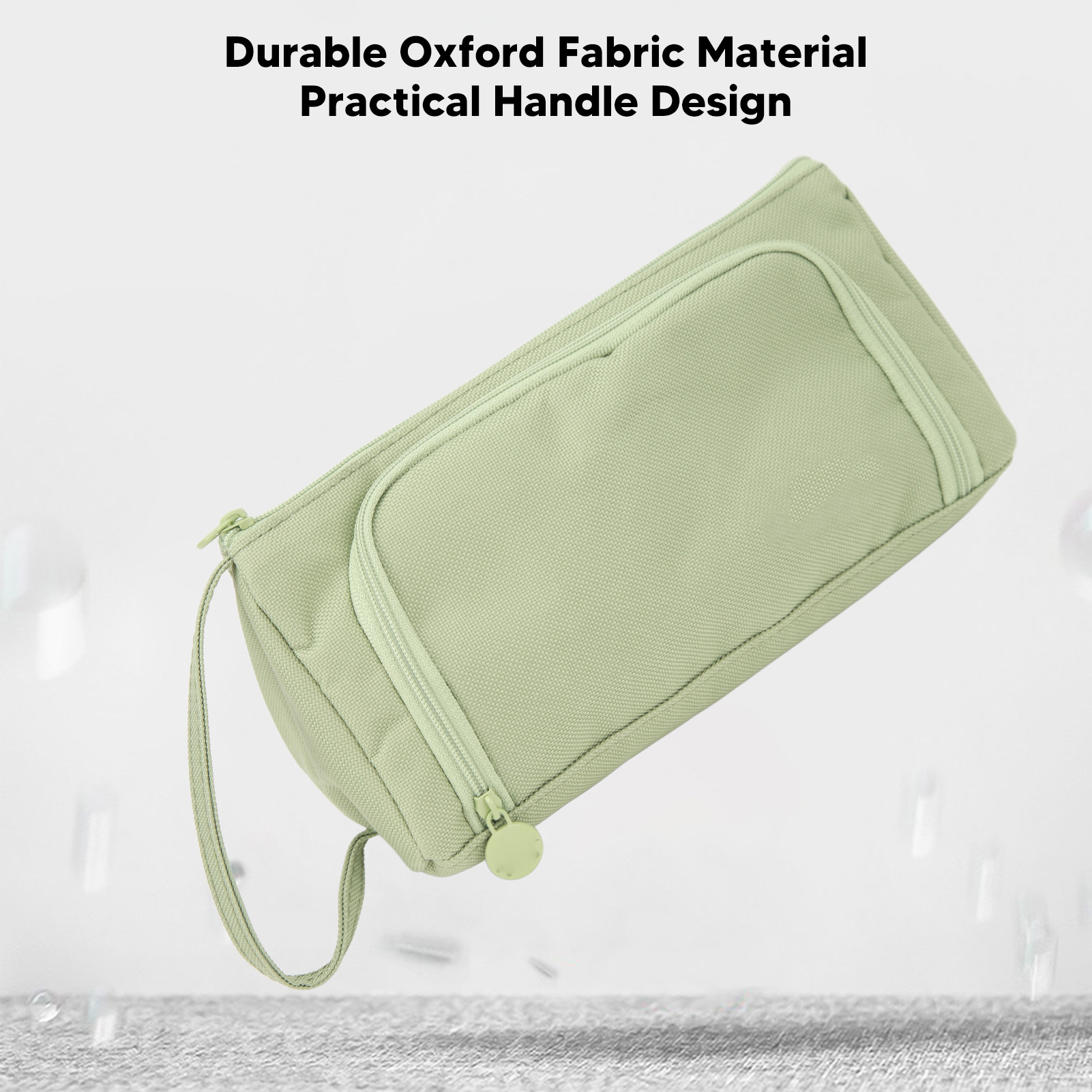 Large Pencil Case Handle Design Large Capacity Layered Durable Oxford Fabric Pencil Bag for Office School Travel Green Oxford Fabric