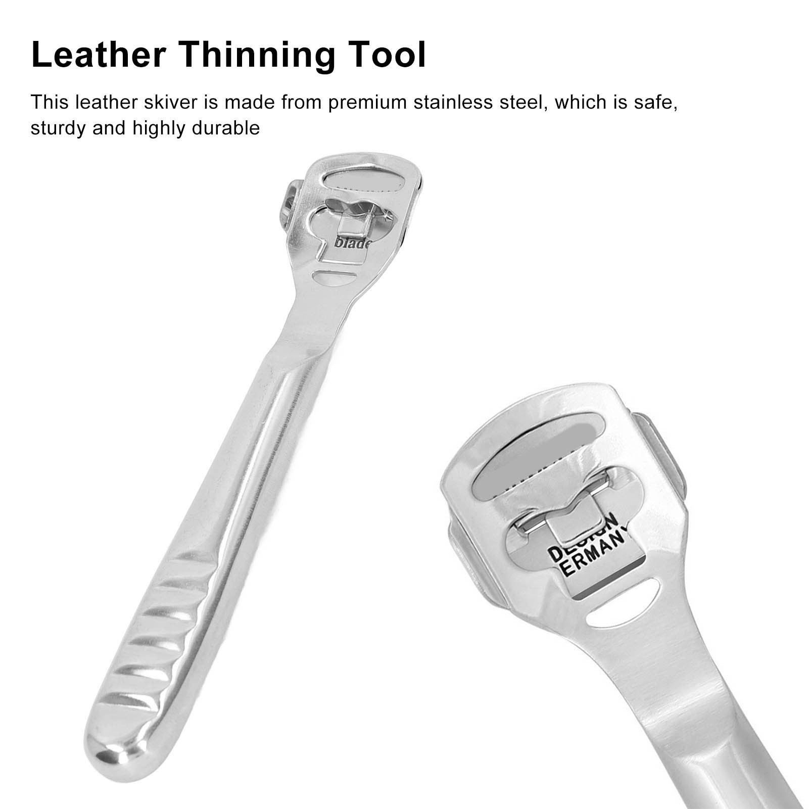 1、Smoothly Cutting: This leather thinning tool provides cutting in high smoothness, providing great convenience. 2、Stainless Steel: This leather skiver is made from premium stainless steel, which is safe, sturdy and highly durable. 3、Light Weight: This skiving knife is compact in size and light in weight, very convenient to carry. 4、Wide Application: This metal leather skiver is widely used in leather craft DIY, leather making, leather thinning. 5、Essential Tool: This leathercraft skiving tool is for the leather craft process working. Suitable for professionals and beginners.