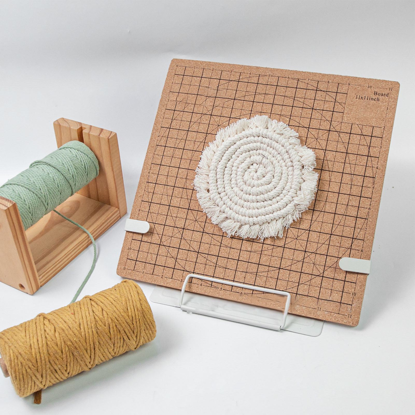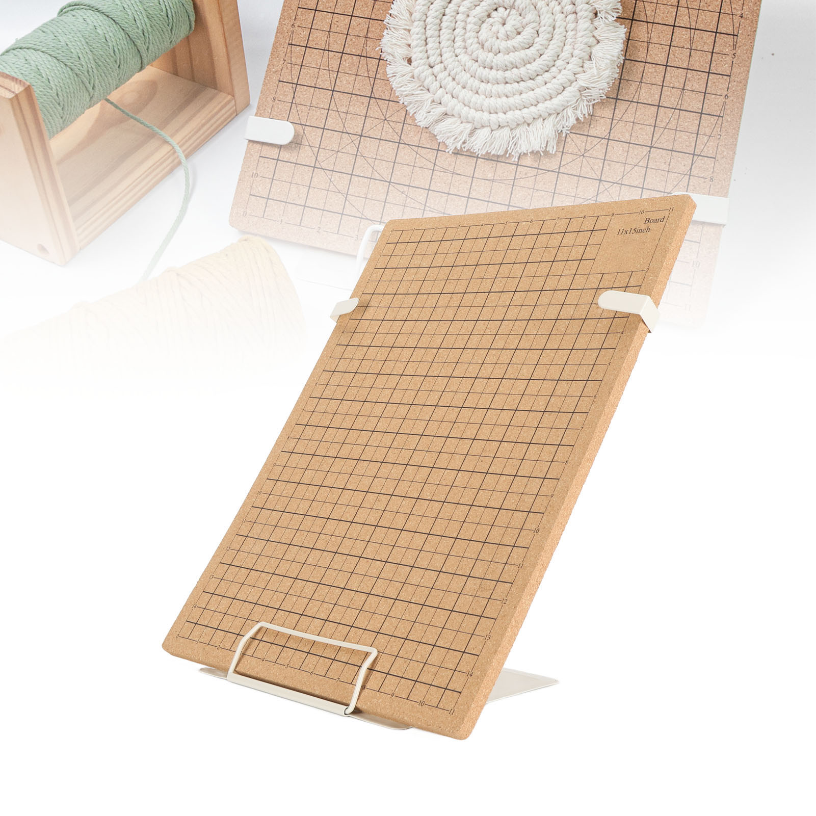 Macrame Board and Adjustable Holder Double Sided Cork Board and Metal Stand Set for Braiding Bracelet Creating