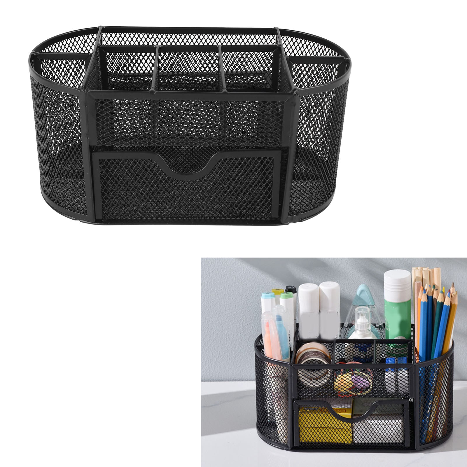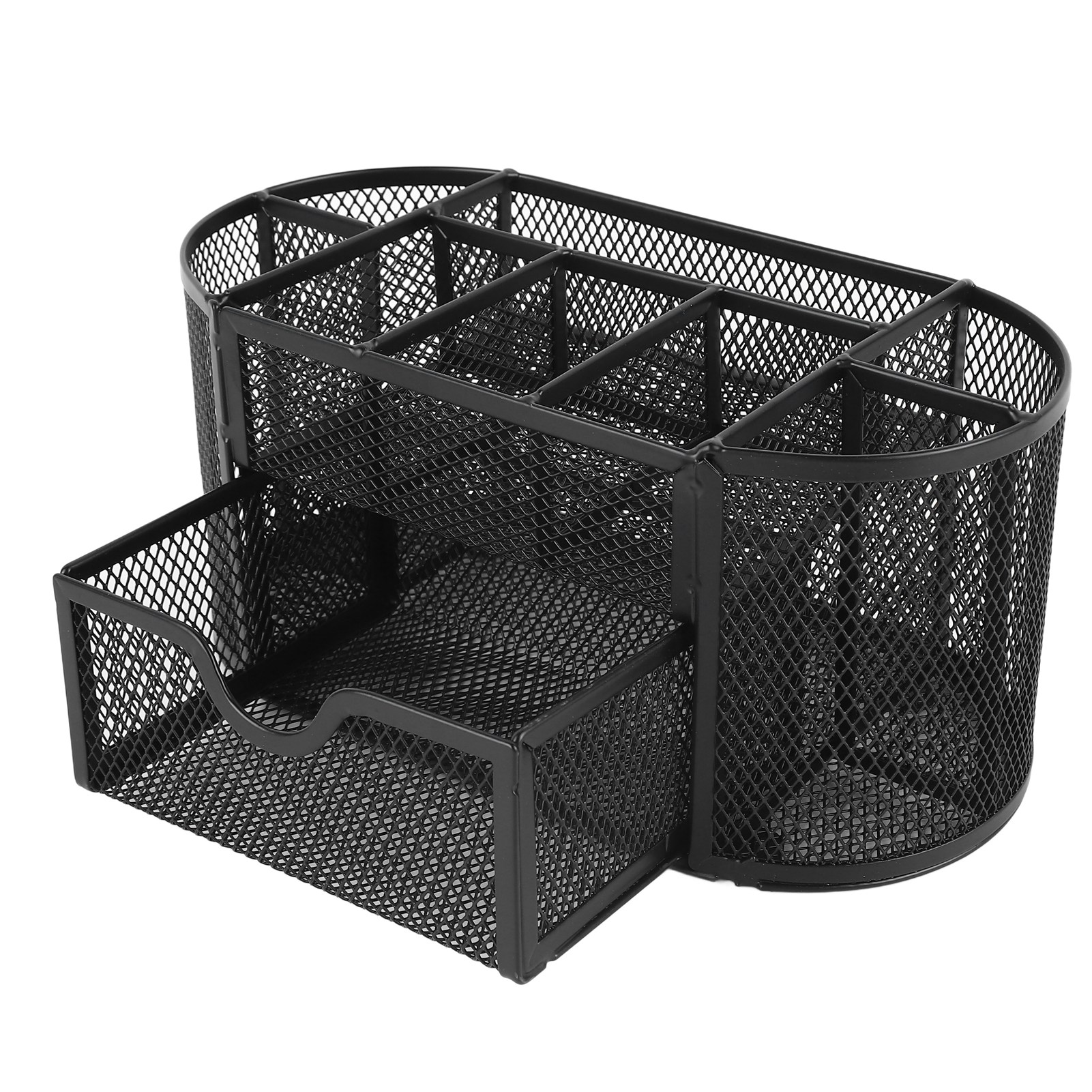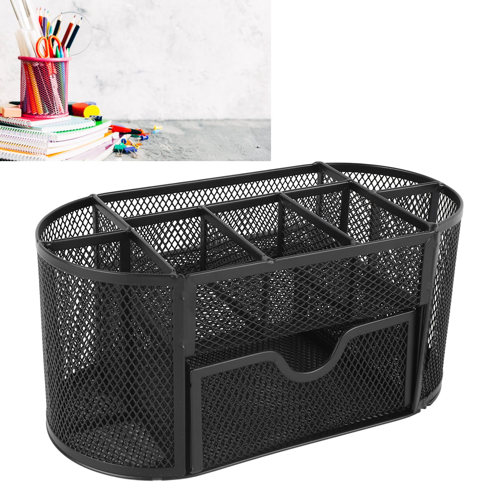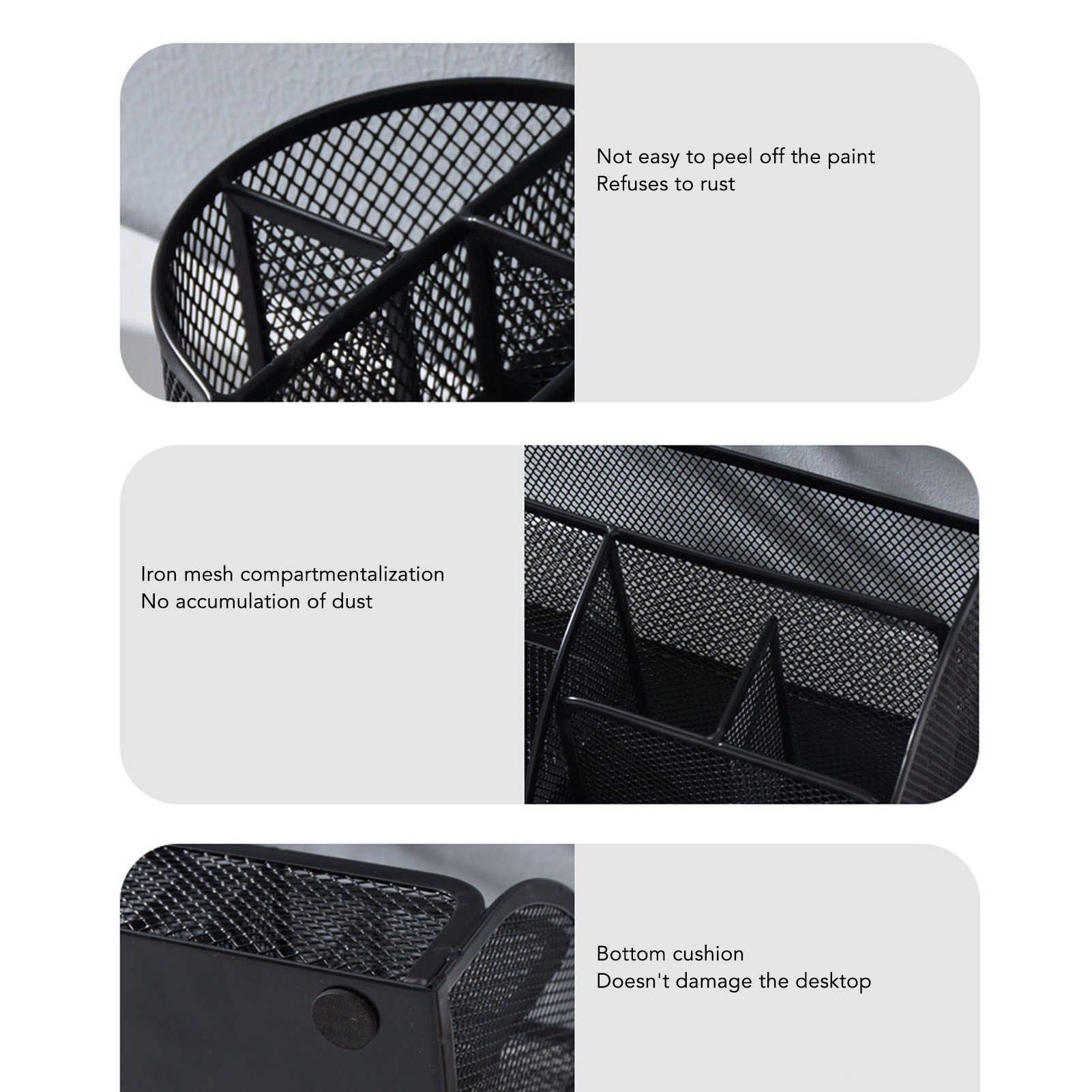 1、LARGE CAPACITY STORAGE: Pen holder can hold a variety of office supplies, such as pens, blades, scissors, etc., easy to organize desk items. 2、BOTTOM PAD: Mesh desktop pen holder comes with a pad at the bottom, not easy to leave scratches, protect your desktop. 3、APPLICATION: Pen holder is suitable for office, workplace, school, classroom, workshop, studio, suitable for desktop, classroom desk, coffee table, bookshelf, college dormitory, living room. 4、MULTI FUNCTIONAL: Pen holder desk organizer can be used as a pen holder, but also as a shelf to meet different needs. 5、METAL MATERIAL: Mesh desktop storage rack is made of metal material, not easy to peel off paint, not easy to rust, durable and can be used for a long time.
