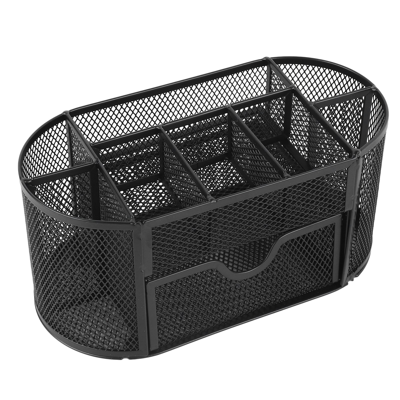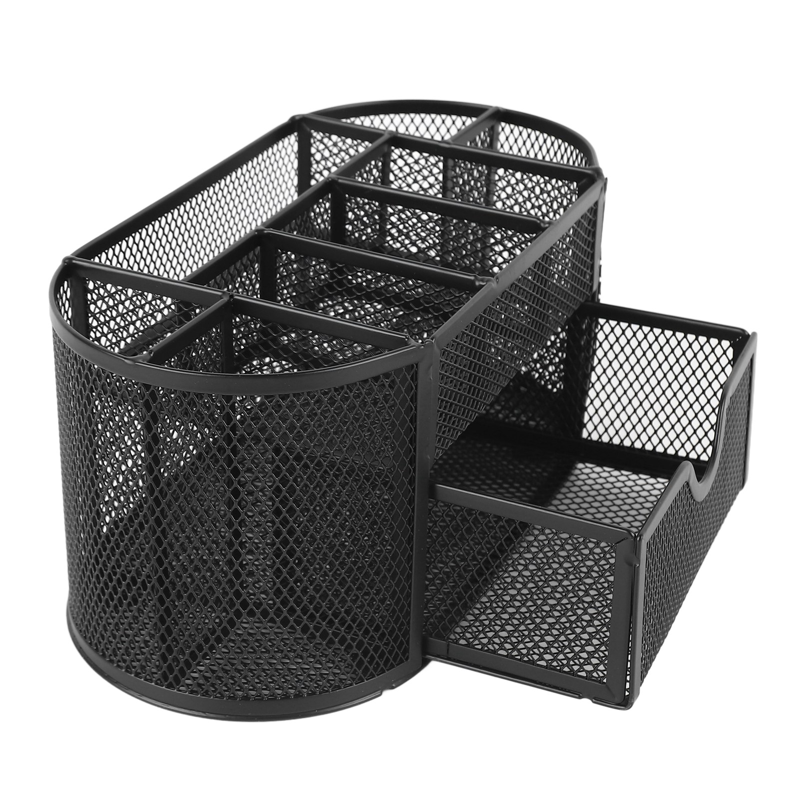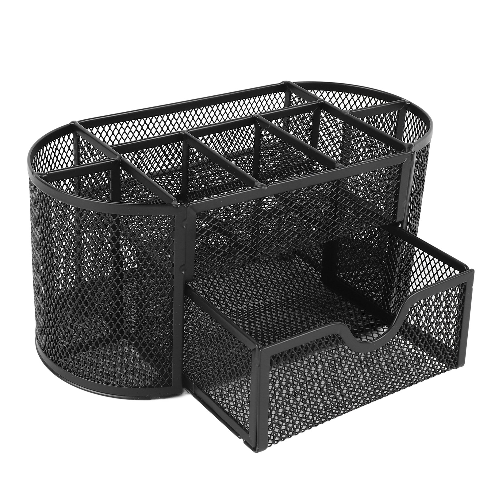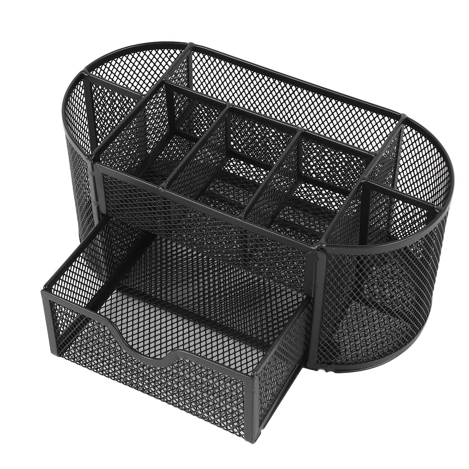 1、LARGE CAPACITY STORAGE: Pen holder can hold a variety of office supplies, such as pens, blades, scissors, etc., easy to organize desk items. 2、BOTTOM PAD: Mesh desktop pen holder comes with a pad at the bottom, not easy to leave scratches, protect your desktop. 3、APPLICATION: Pen holder is suitable for office, workplace, school, classroom, workshop, studio, suitable for desktop, classroom desk, coffee table, bookshelf, college dormitory, living room. 4、MULTI FUNCTIONAL: Pen holder desk organizer can be used as a pen holder, but also as a shelf to meet different needs. 5、METAL MATERIAL: Mesh desktop storage rack is made of metal material, not easy to peel off paint, not easy to rust, durable and can be used for a long time.