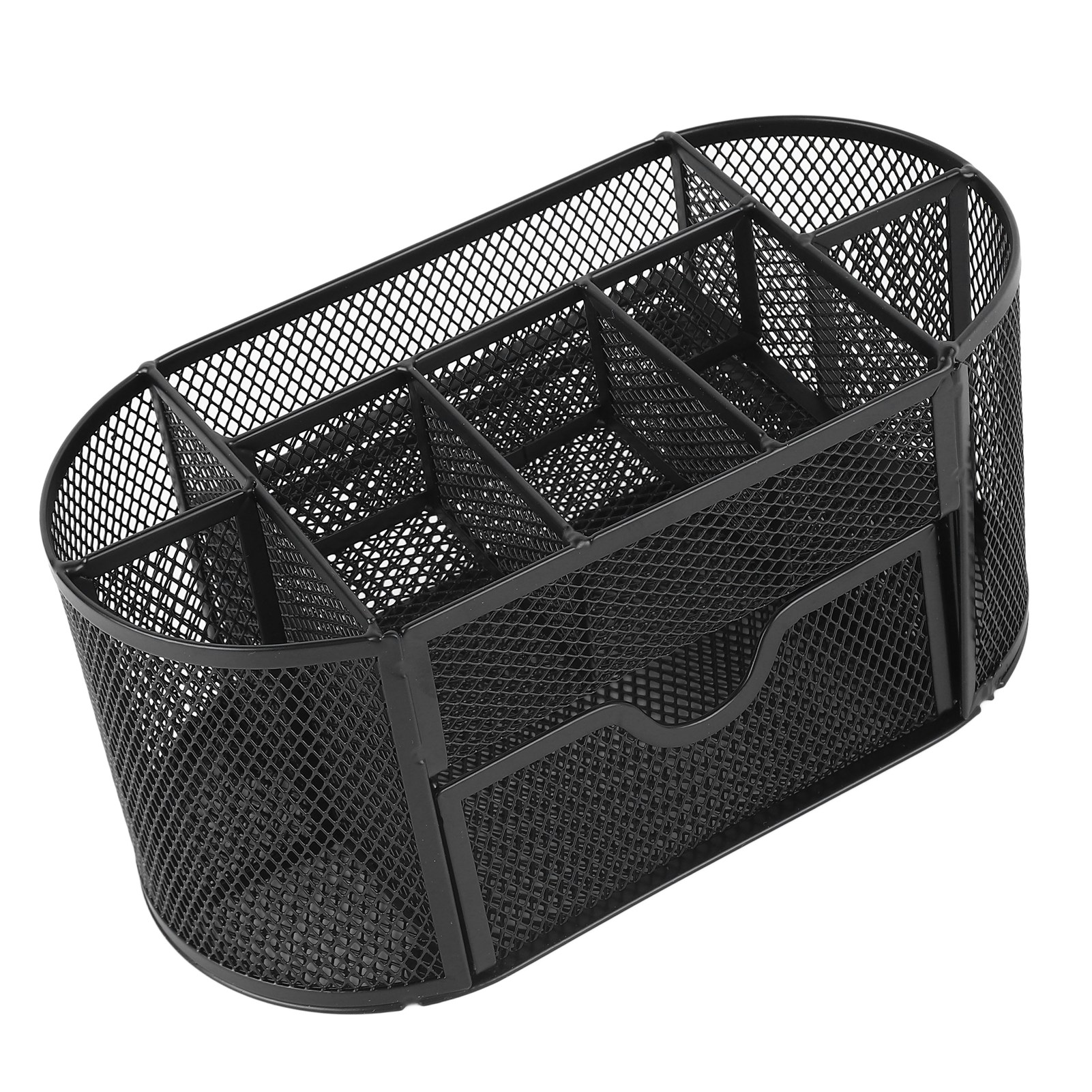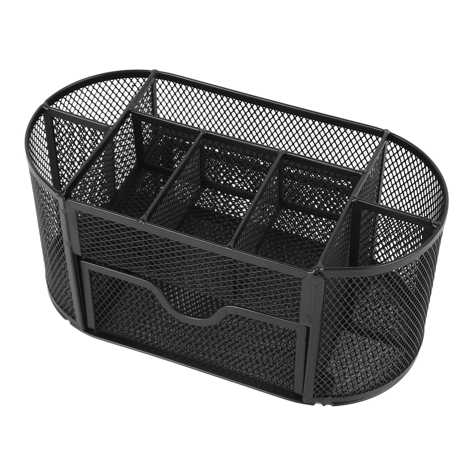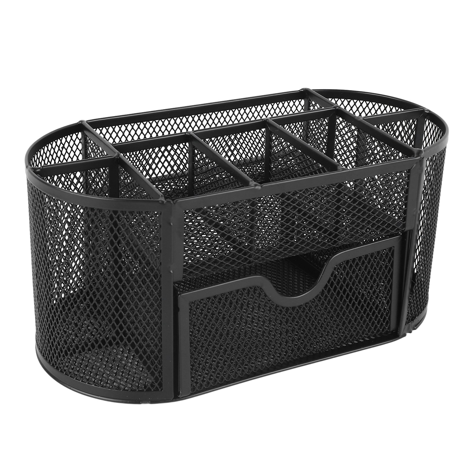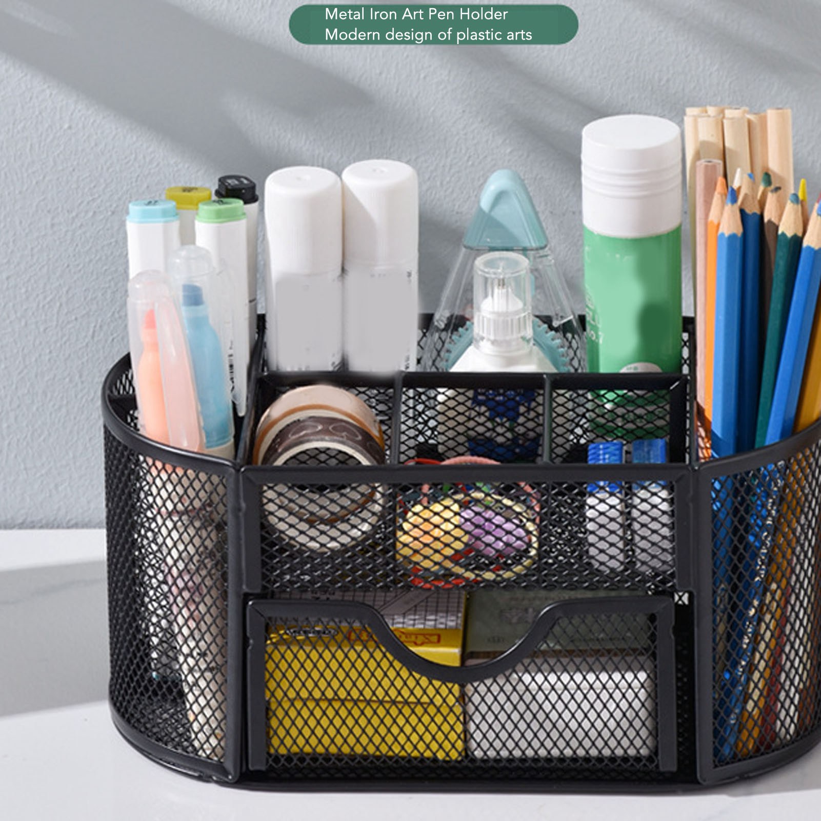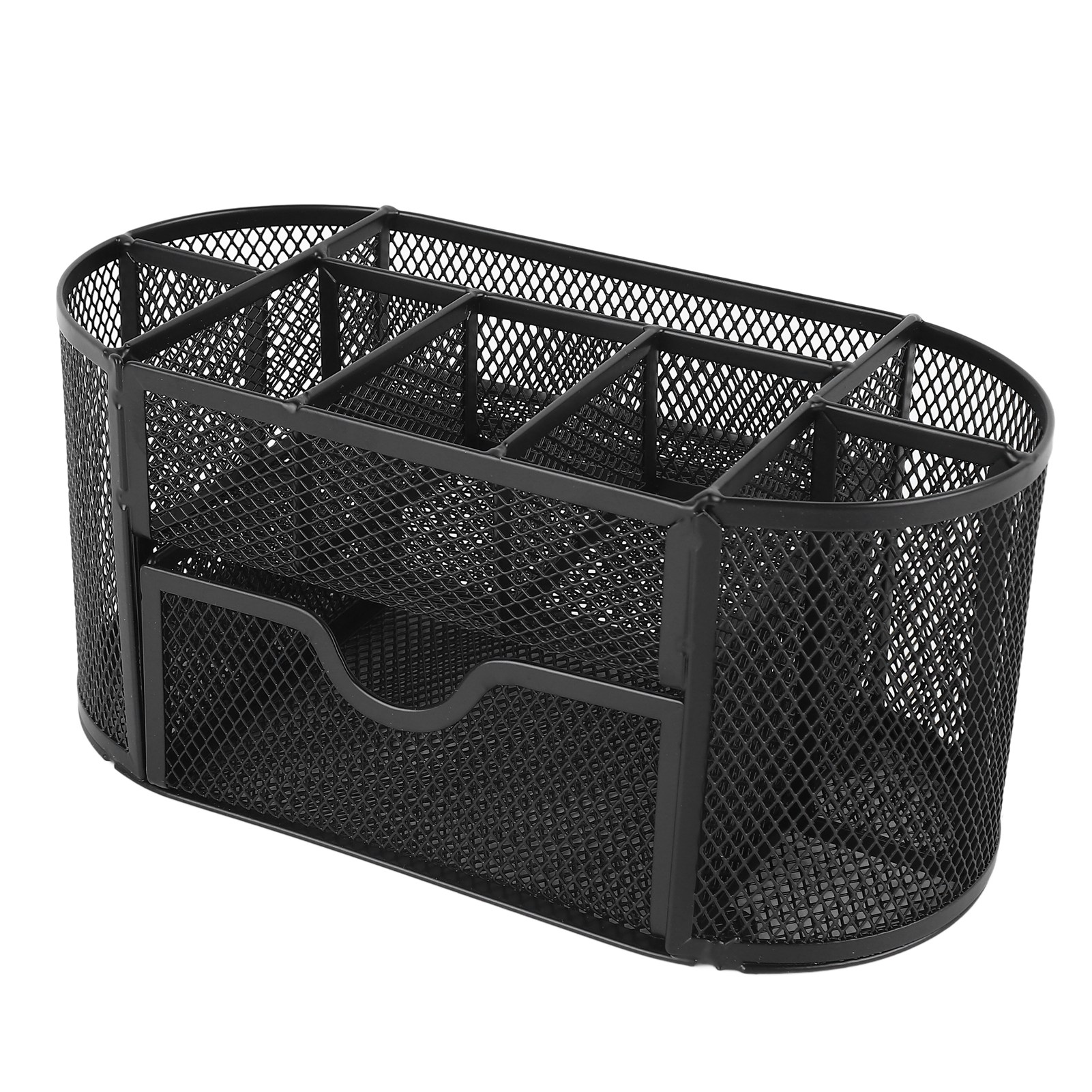 1、LARGE CAPACITY STORAGE: Pen holder can hold a variety of office supplies, such as pens, blades, scissors, etc., easy to organize desk items. 2、BOTTOM PAD: Mesh desktop pen holder comes with a pad at the bottom, not easy to leave scratches, protect your desktop. 3、APPLICATION: Pen holder is suitable for office, workplace, school, classroom, workshop, studio, suitable for desktop, classroom desk, coffee table, bookshelf, college dormitory, living room. 4、MULTI FUNCTIONAL: Pen holder desk organizer can be used as a pen holder, but also as a shelf to meet different needs. 5、METAL MATERIAL: Mesh desktop storage rack is made of metal material, not easy to peel off paint, not easy to rust, durable and can be used for a long time.