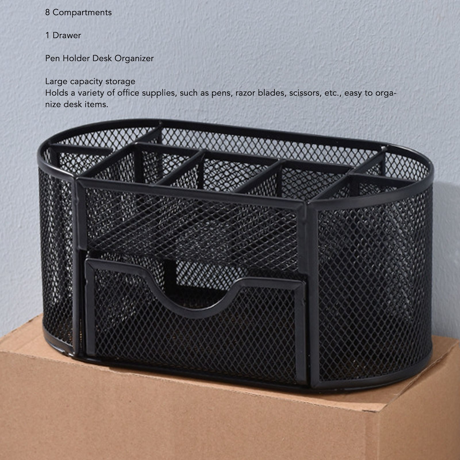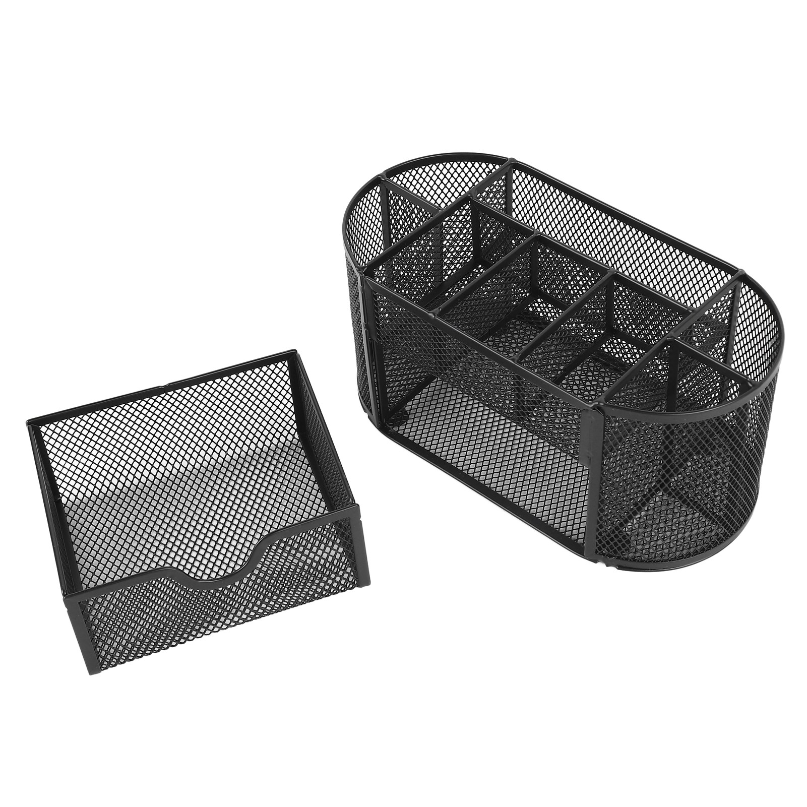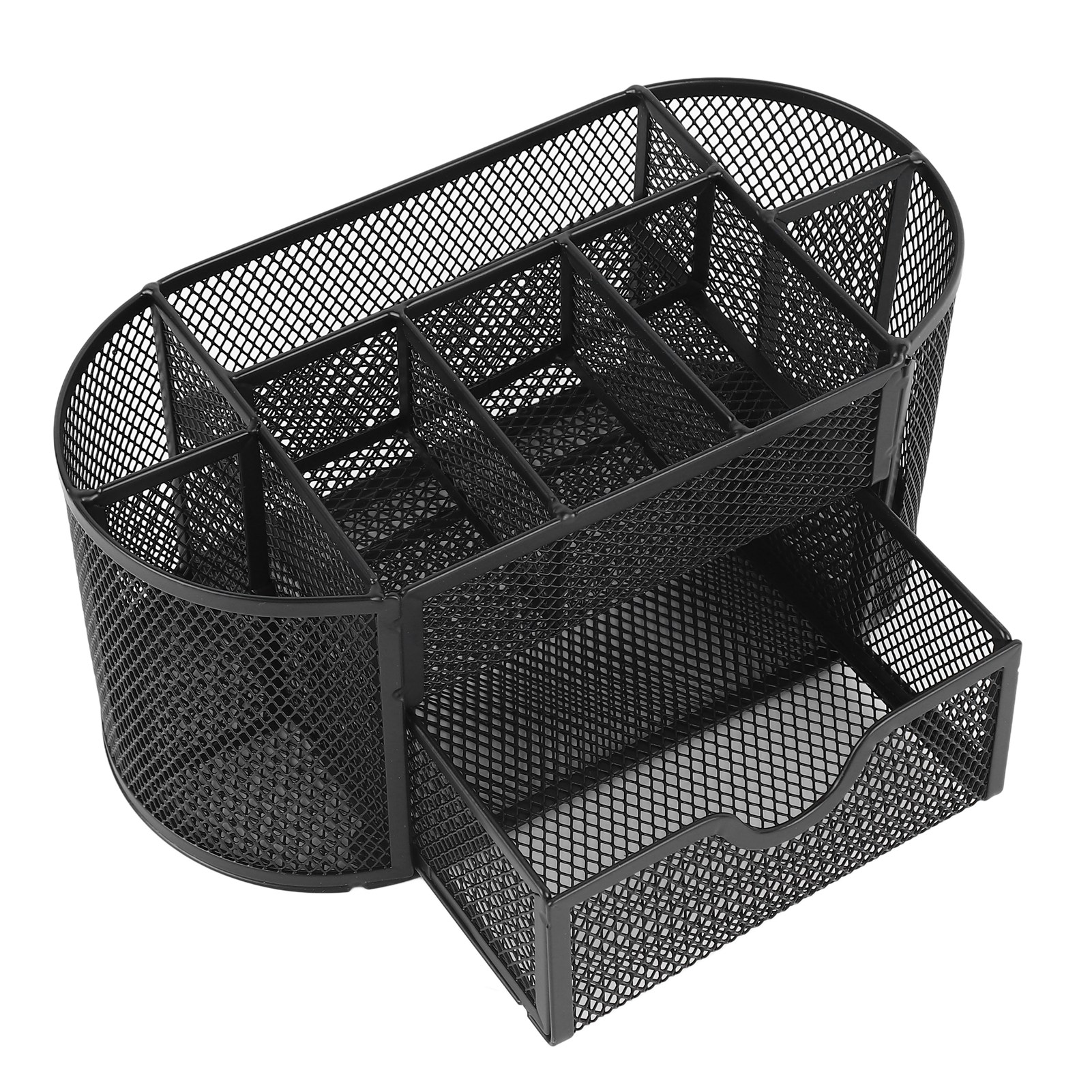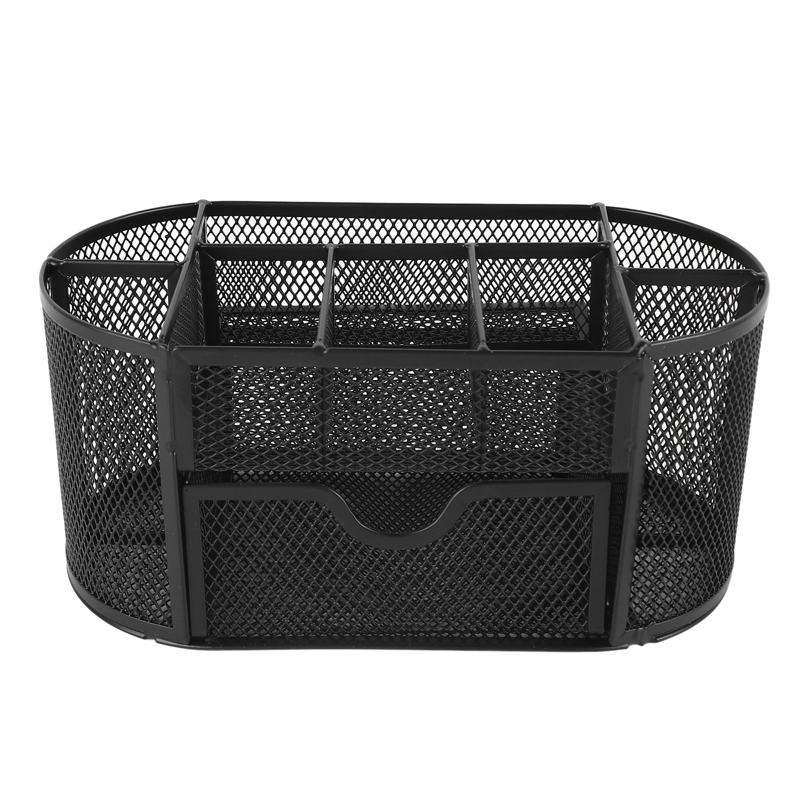 1、LARGE CAPACITY STORAGE: Pen holder can hold a variety of office supplies, such as pens, blades, scissors, etc., easy to organize desk items. 2、BOTTOM PAD: Mesh desktop pen holder comes with a pad at the bottom, not easy to leave scratches, protect your desktop. 3、APPLICATION: Pen holder is suitable for office, workplace, school, classroom, workshop, studio, suitable for desktop, classroom desk, coffee table, bookshelf, college dormitory, living room. 4、MULTI FUNCTIONAL: Pen holder desk organizer can be used as a pen holder, but also as a shelf to meet different needs. 5、METAL MATERIAL: Mesh desktop storage rack is made of metal material, not easy to peel off paint, not easy to rust, durable and can be used for a long time.