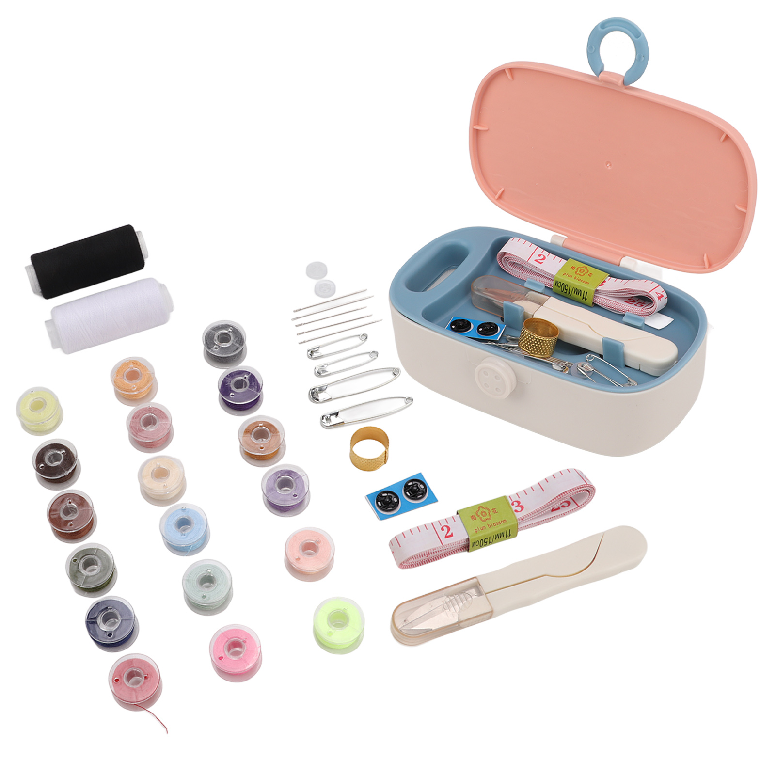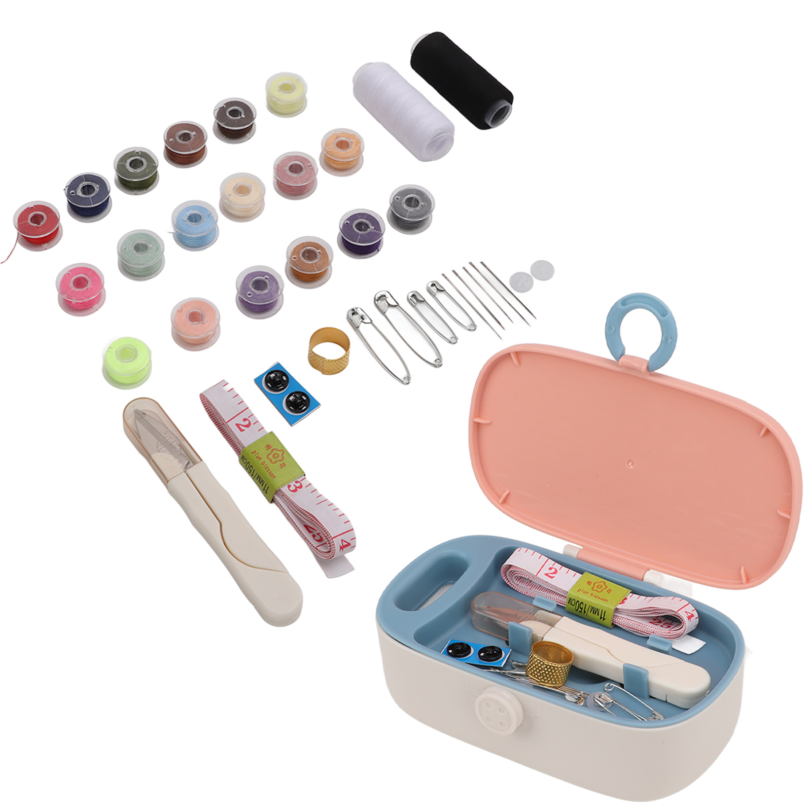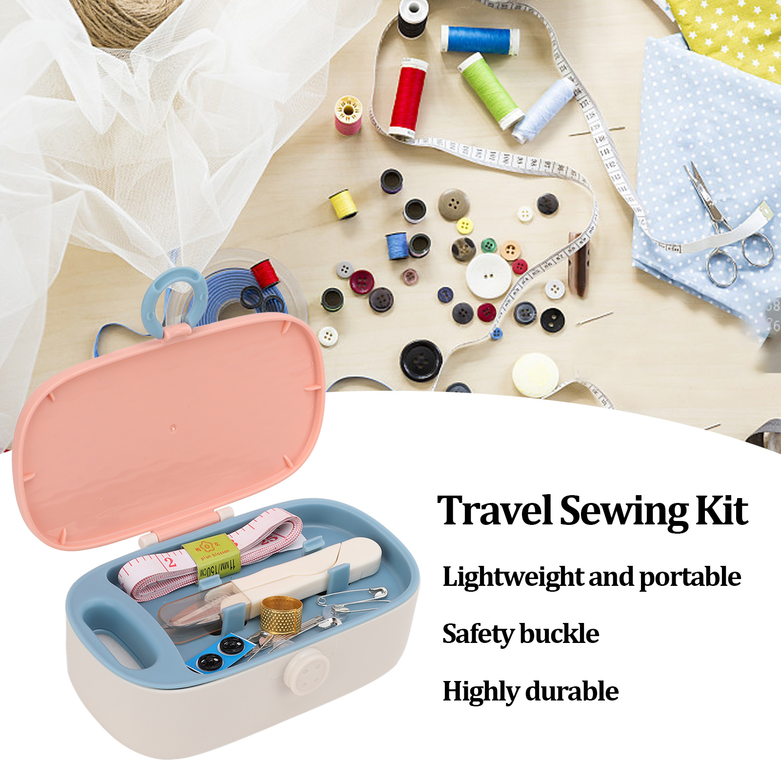 1、Practical Kit: This mini sewing kit provides all the basic and necessary tools that are required for performing basic repairs, meet your needs! 2、Easy Identification: This mini sewing box is equipped with multiple compartments for easy identification and storage. 3、Portable Size: This mini sewing box is light in weight and small in size, which is convenient and space saving to carry. 4、Safety Buckle: This mini sewing kit adopts safety buckle design for safe and reliable storage, to prevent the pinch. 5、Exquisite Gift: This mini sewing kit with fine workmanship is an ideal and exquisite gift for your friends and family who love DIY.