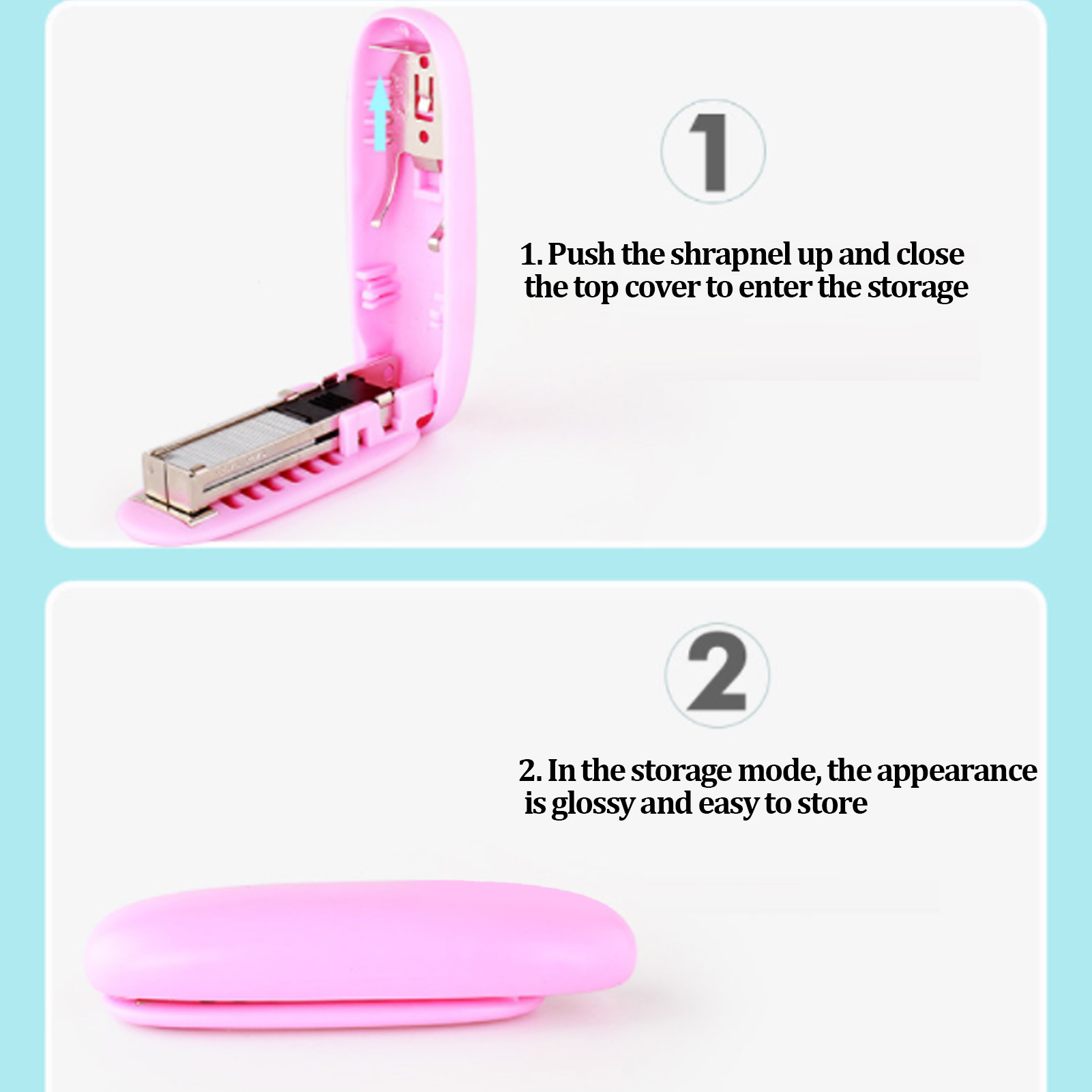 1、Leverage and Labor Saving: Small stapler adopts the lever and labor saving binding structure, and the labor saving lever structure allows you to experience easy binding without wasting your time. 2、Foldable Design: Mini stapler adopts a foldable design, which can be folded into pen holders, drawers, briefcases and pockets, which is convenient and quick to use. 3、Small Body Shape: Mini pocket portable stapler, compact body shape can be stored, convenient to carry out and daily storage. 4、Applicable Scene: Mini stapler adopts foldable, round and compact shape, suitable for various application environments, suitable for schools, offices and classrooms. 5、ABS Material: Small stapler adopts high quality and strong ABS material, which is wear resistant and durable, and can be used for a long time.