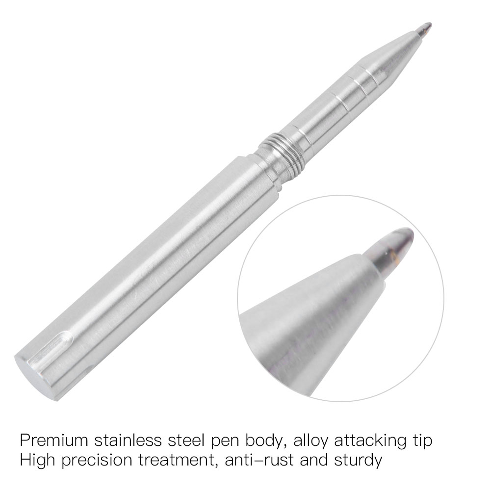 1、The pen body is made of high-grade stainless steel, and the attack head is made of alloy with high hardness. 2、It is manufactured by polishing with high-accurate CNC wire cutting, and the effect is good. 3、Multi-function, can be used for writing, defense, glass breaker. 4、Portable design, compact size and easy to carry. 5、Unique shape and retro colors, high grade and beautiful.