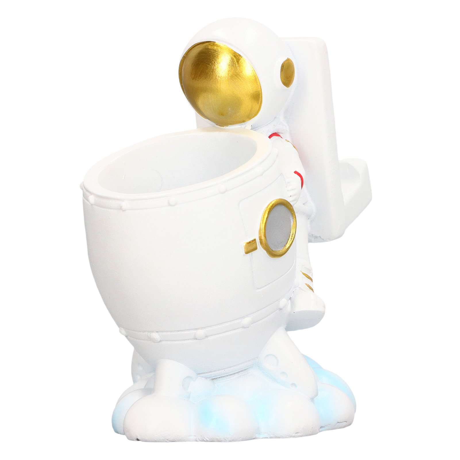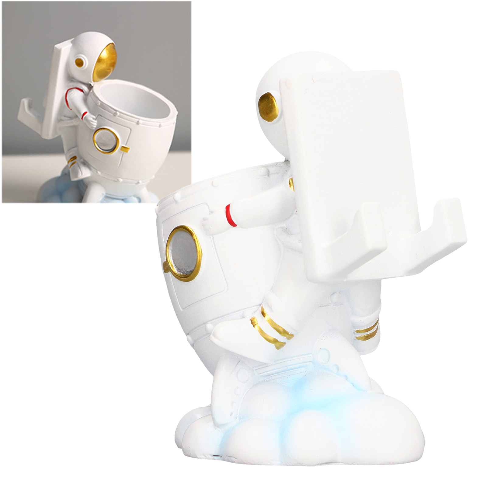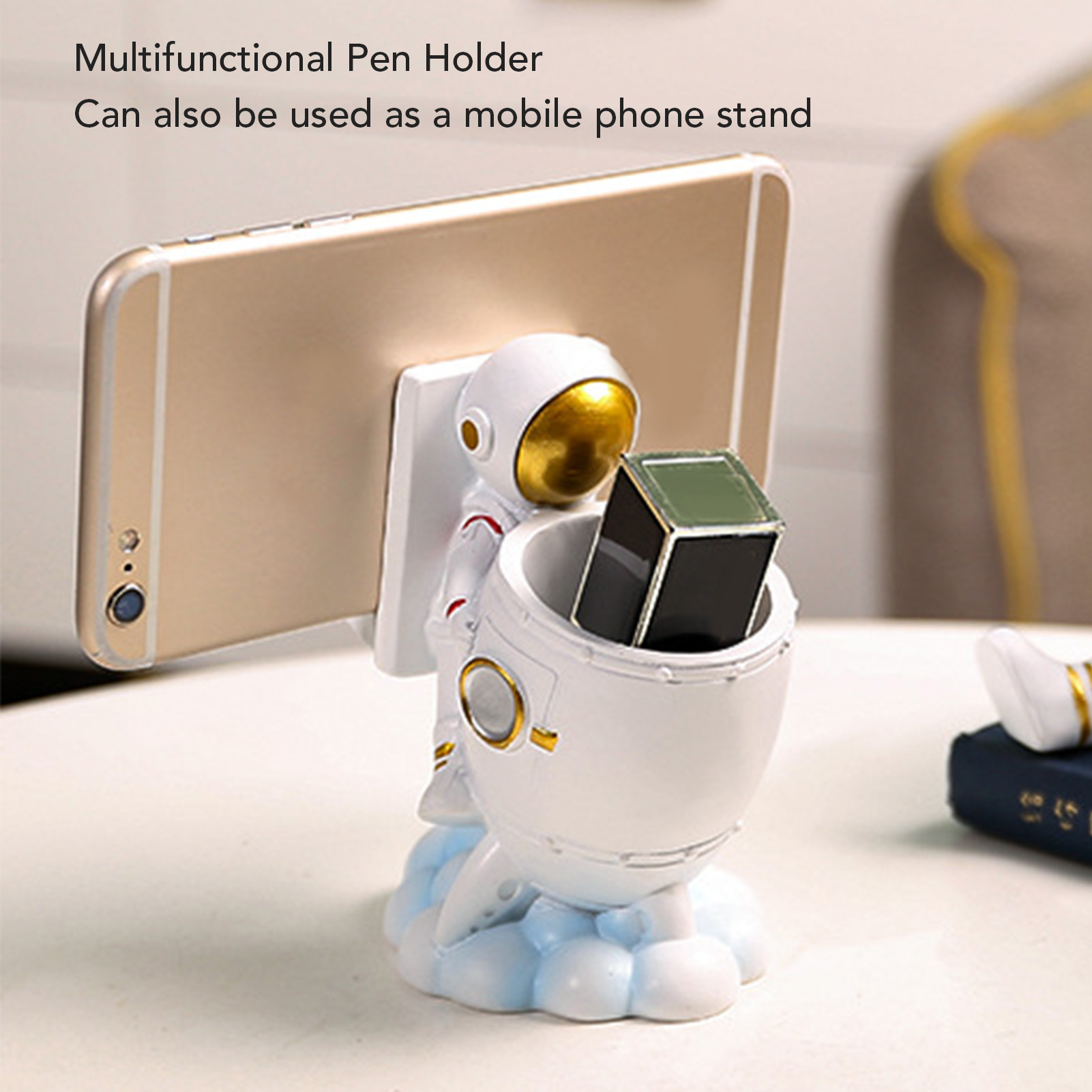 1、Astronaut Shape: The pen holder ornament has the shape of an astronaut, which is vivid, fashionable and beautiful. 2、Premium Materials: Made of resin, this pen holder is sturdy, durable, solidly constructed and has a long service life. 3、Fine Workmanship: Using fine workmanship, hand painted and colored, the texture is clear, highlighting the texture. 4、Multifunctional: Can be used as decoration, can also be used as a pen holder, can also be used as a mobile phone holder. 5、Great Choice: Suitable for living room, bedroom, porch, study, office, etc., it can be a perfect and unique gift.